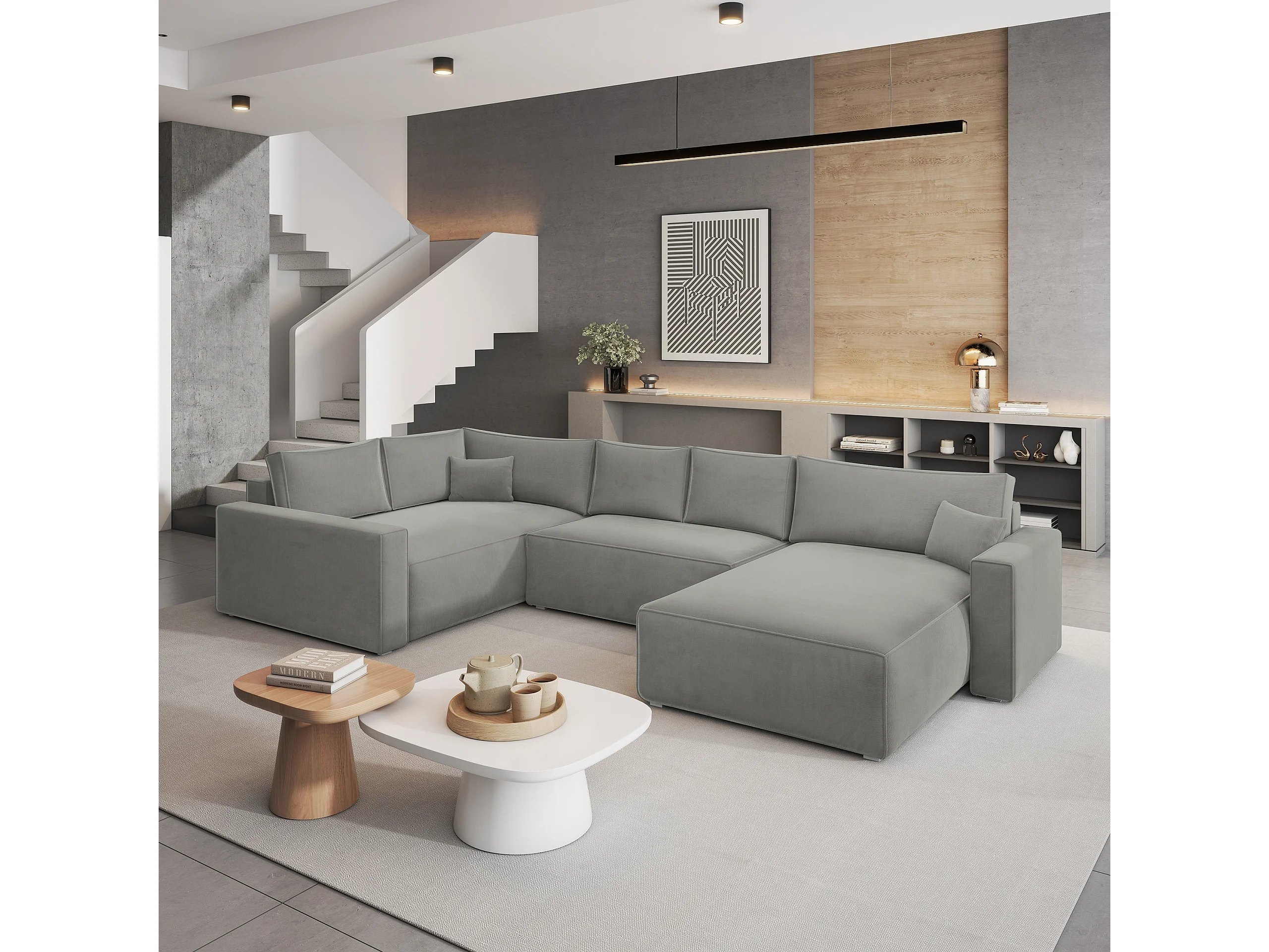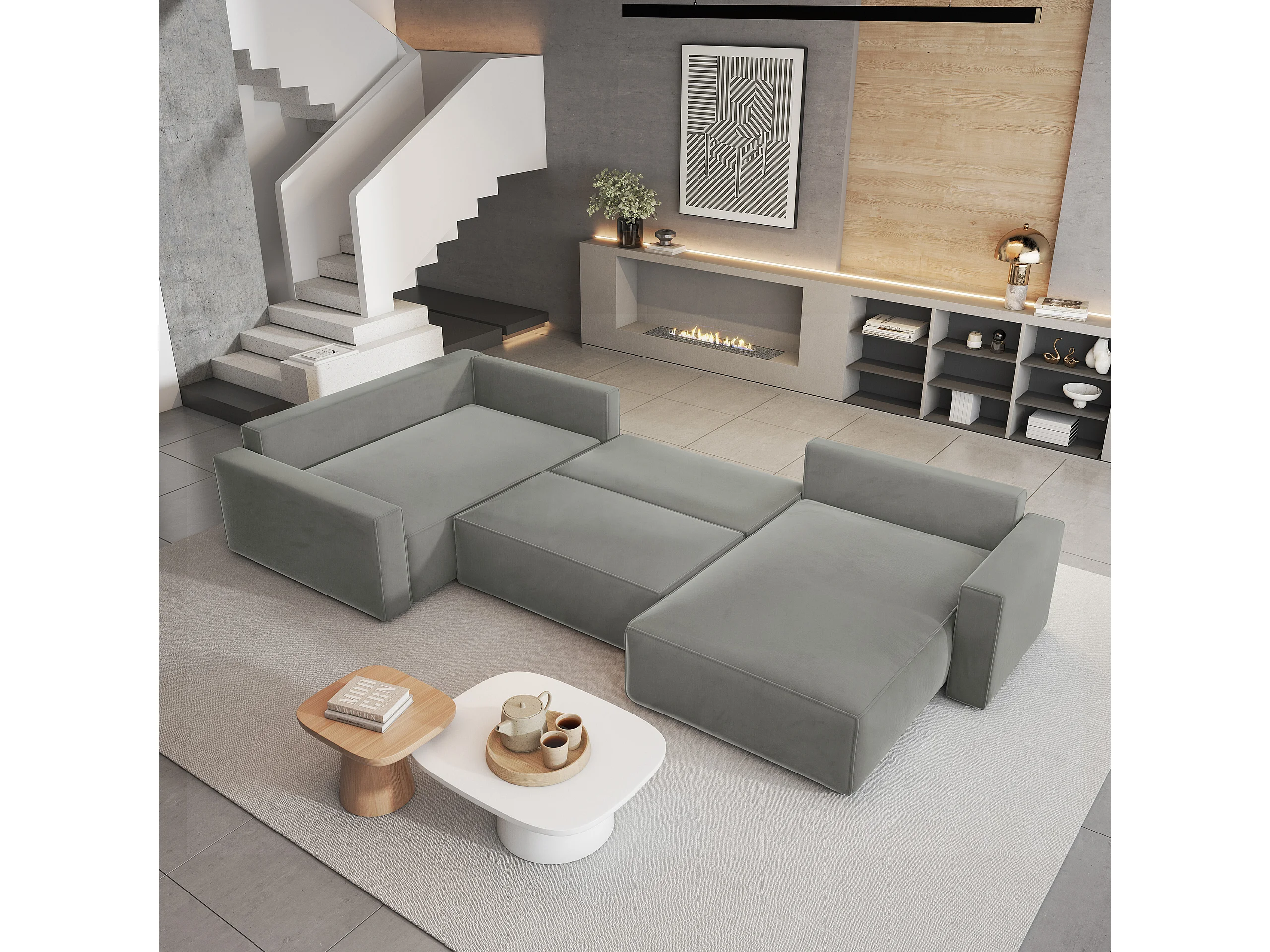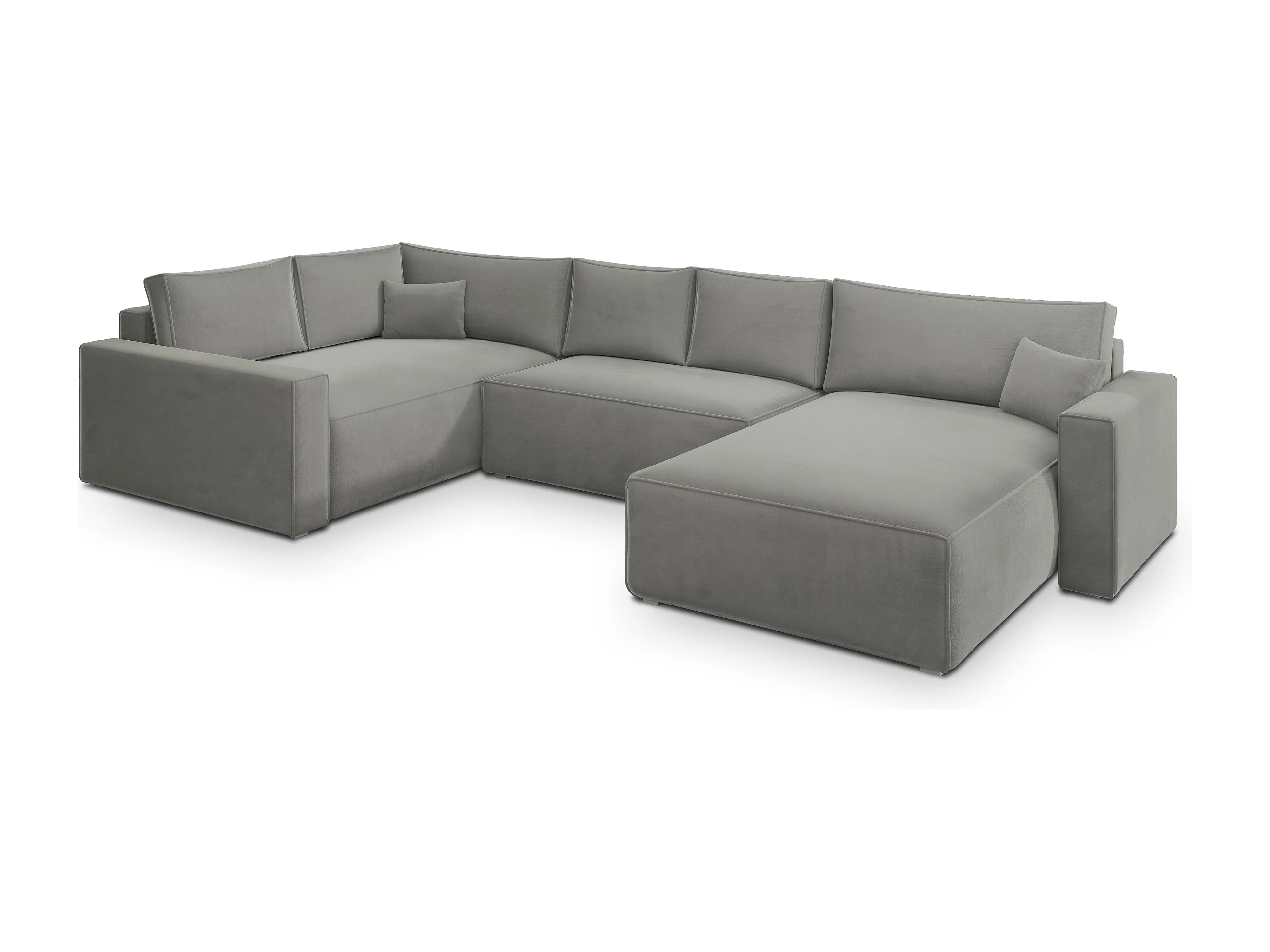 Canapé D'angle Velami Gris Clair En Velours Avec Fonction De Couchage
