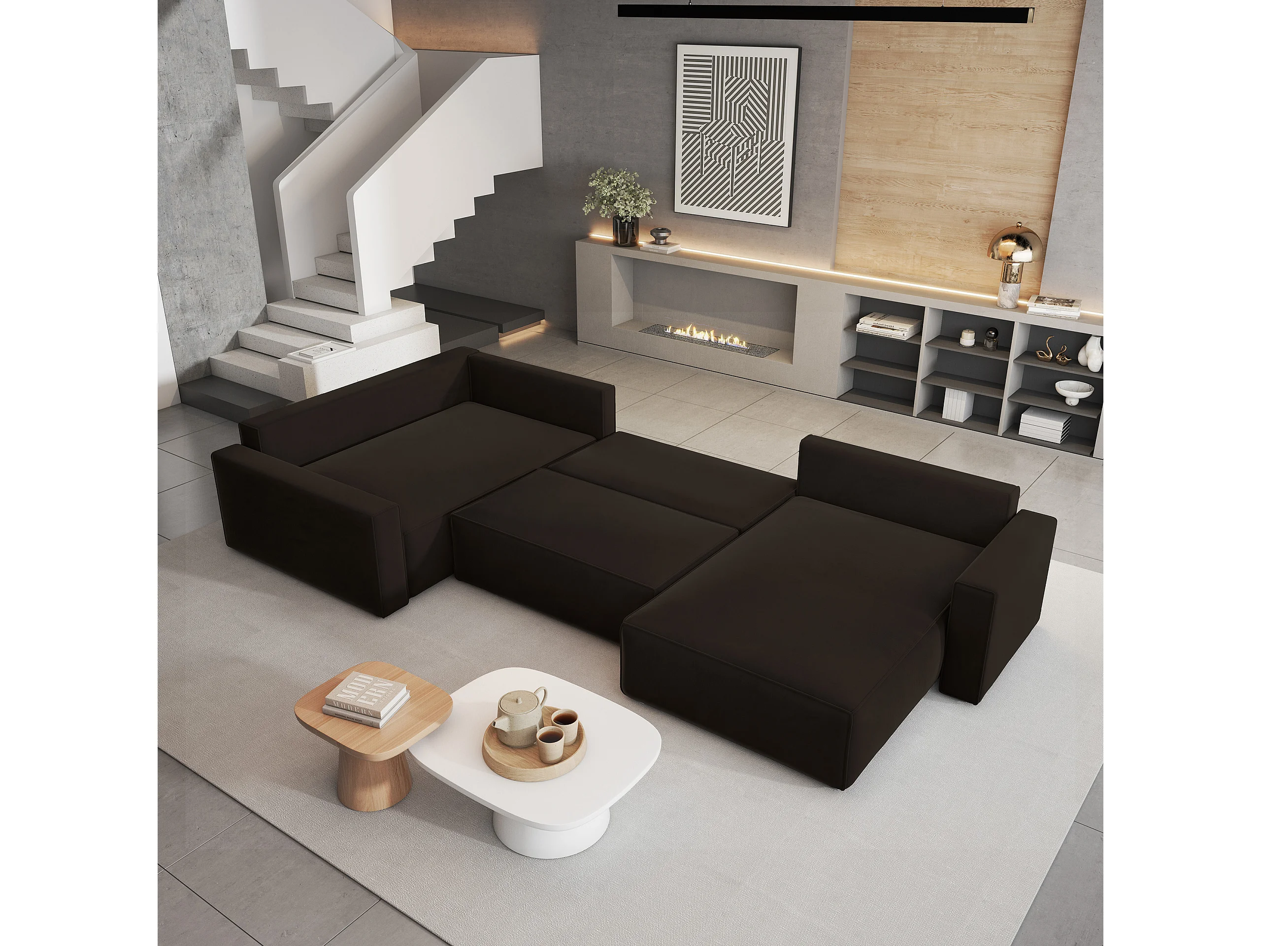Canapé D'angle Velami Marron En Velours Avec Fonction De Couchage