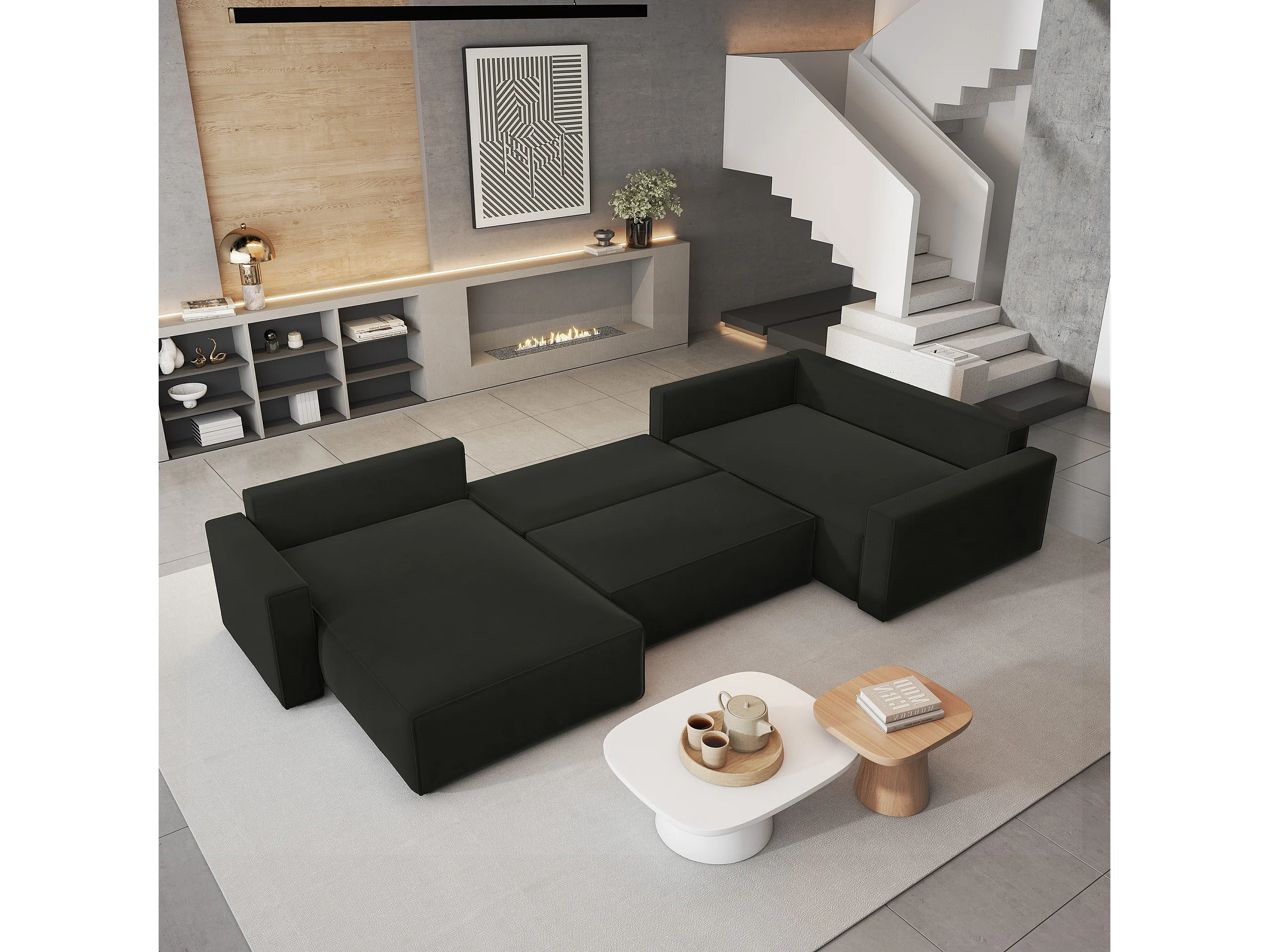 Canapé D'angle Velami Noir En Velours Avec Fonction De Couchage
