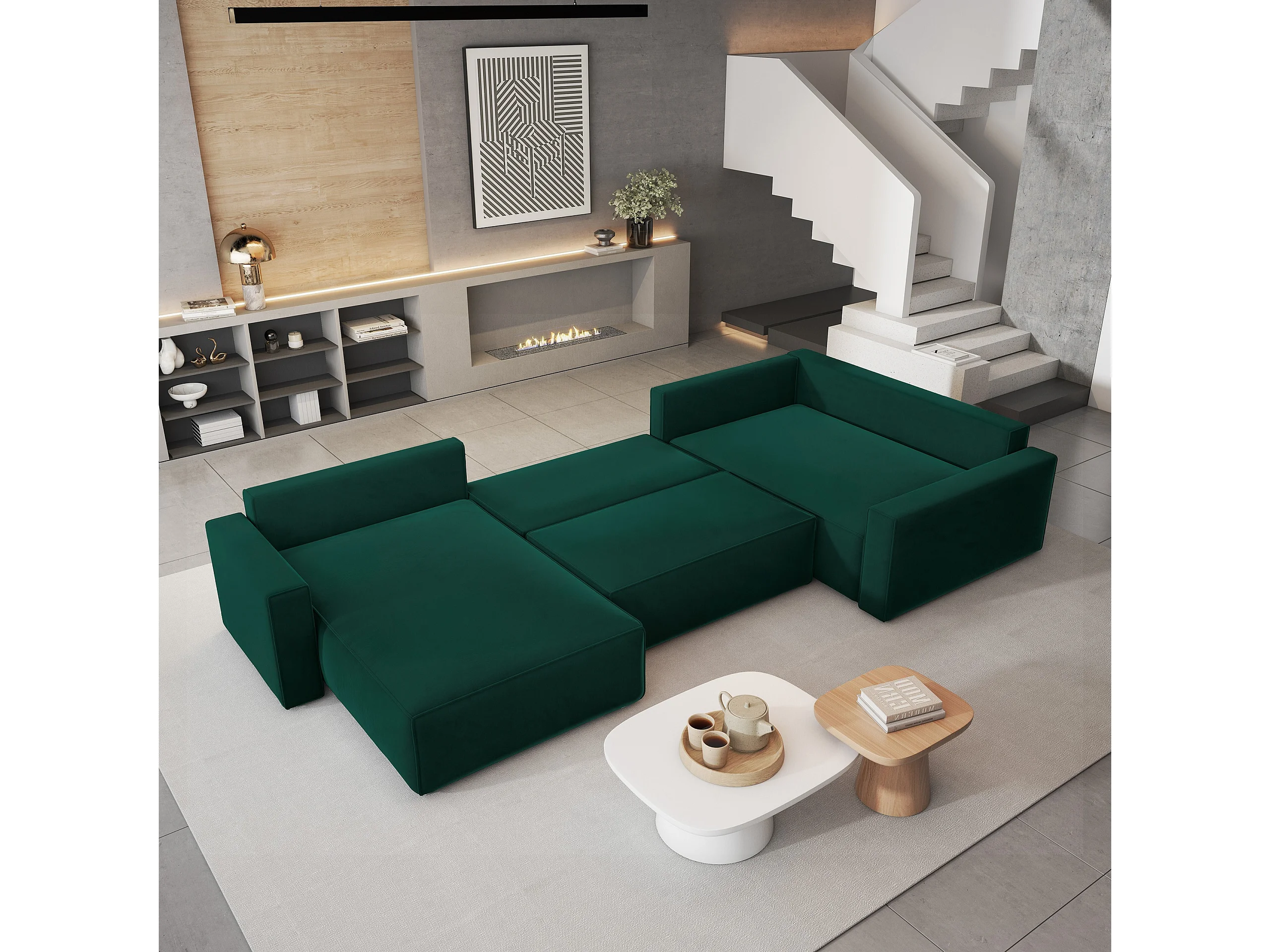 Canapé D'angle Velami Vert Sapin En Velours Avec Fonction De Couchage