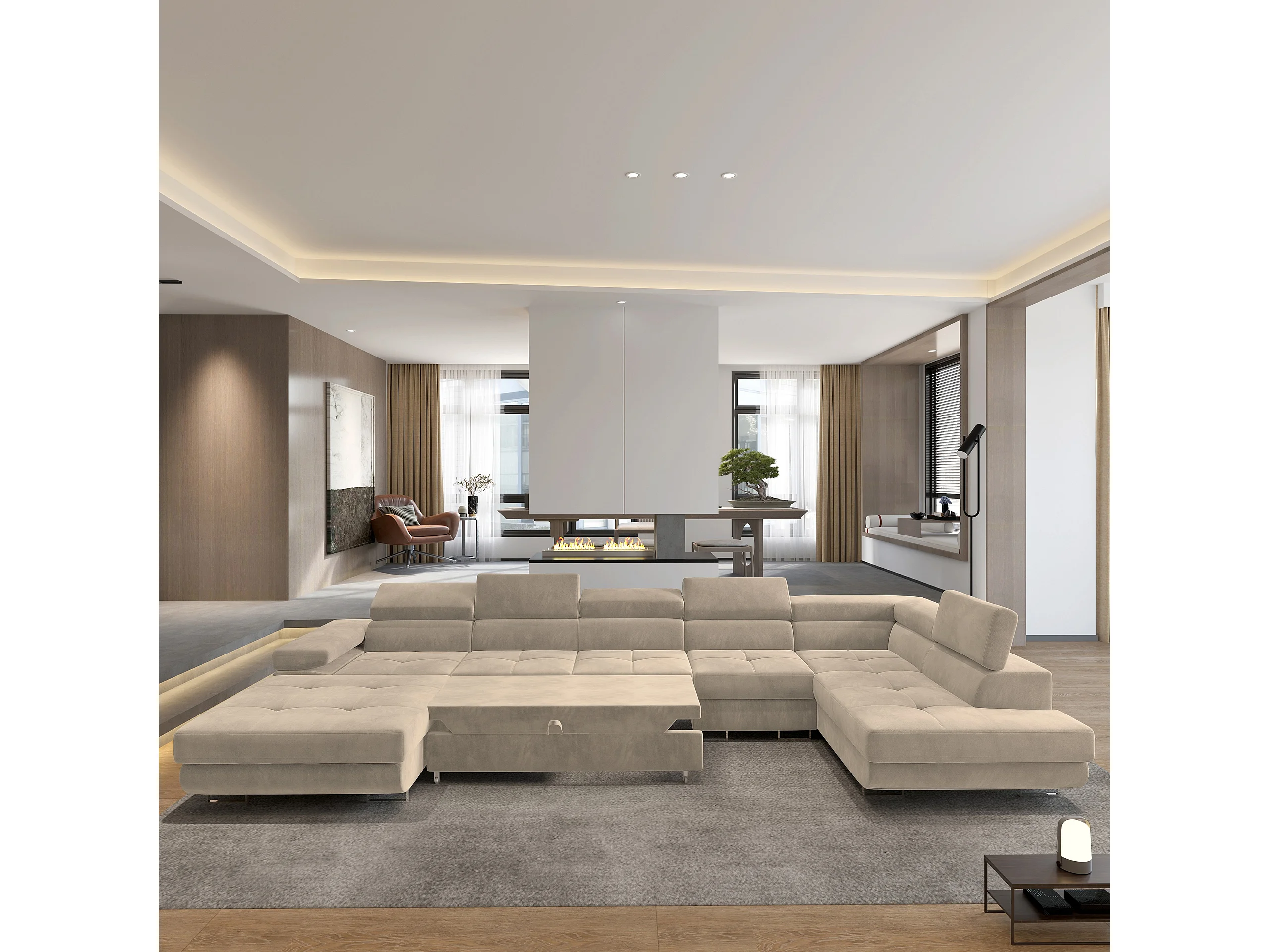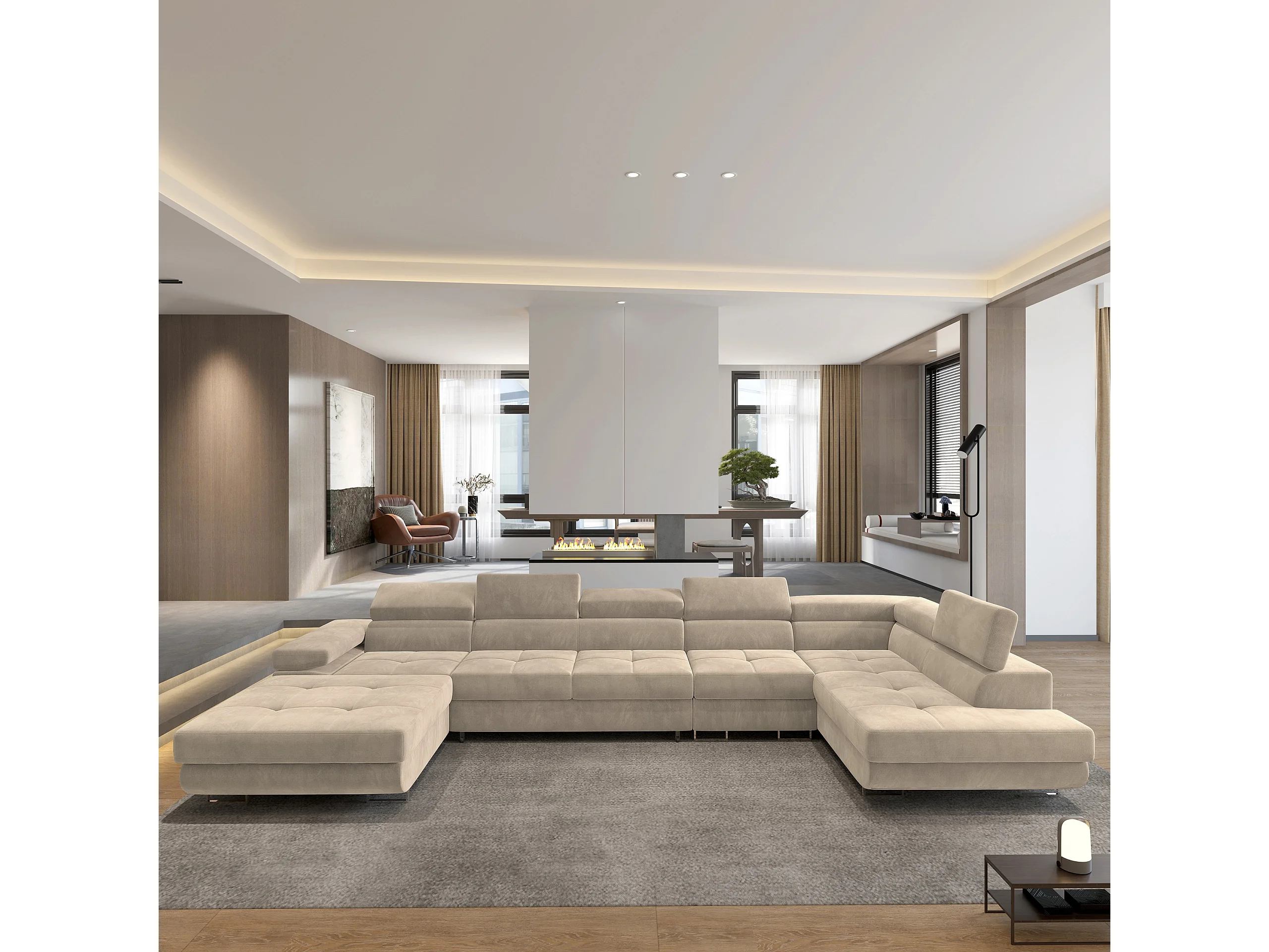 Canapé D'angle Velora Crème En Velours Avec Fonction De Couchage
