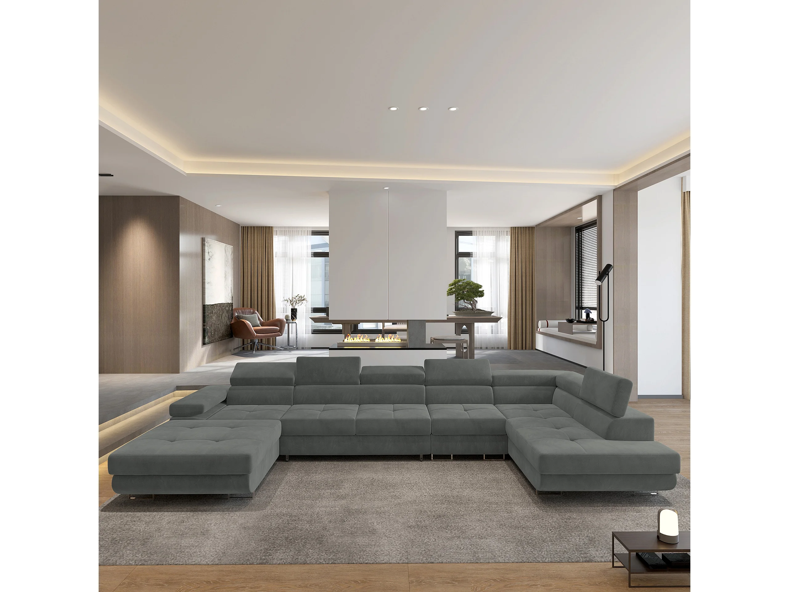 Canapé D'angle Velora Gris En Velours Avec Fonction De Couchage