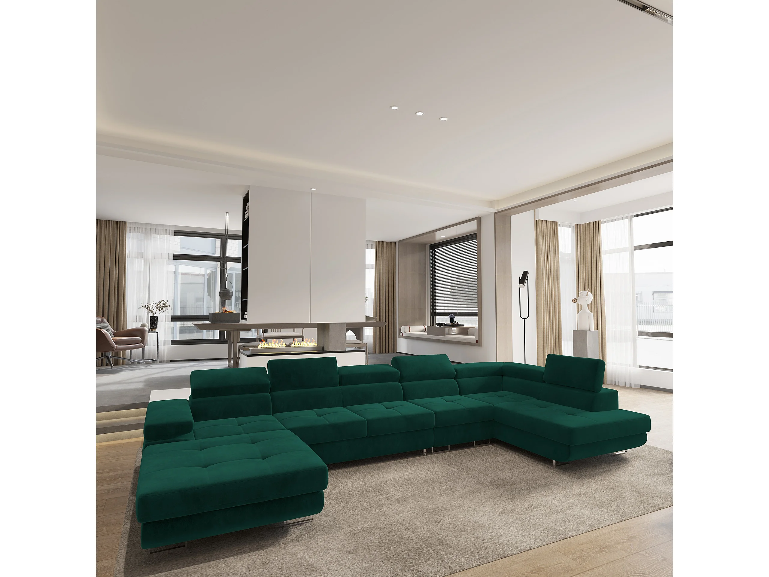 Canapé D'angle Velora Vert Sapin En Velours Avec Fonction De Couchage