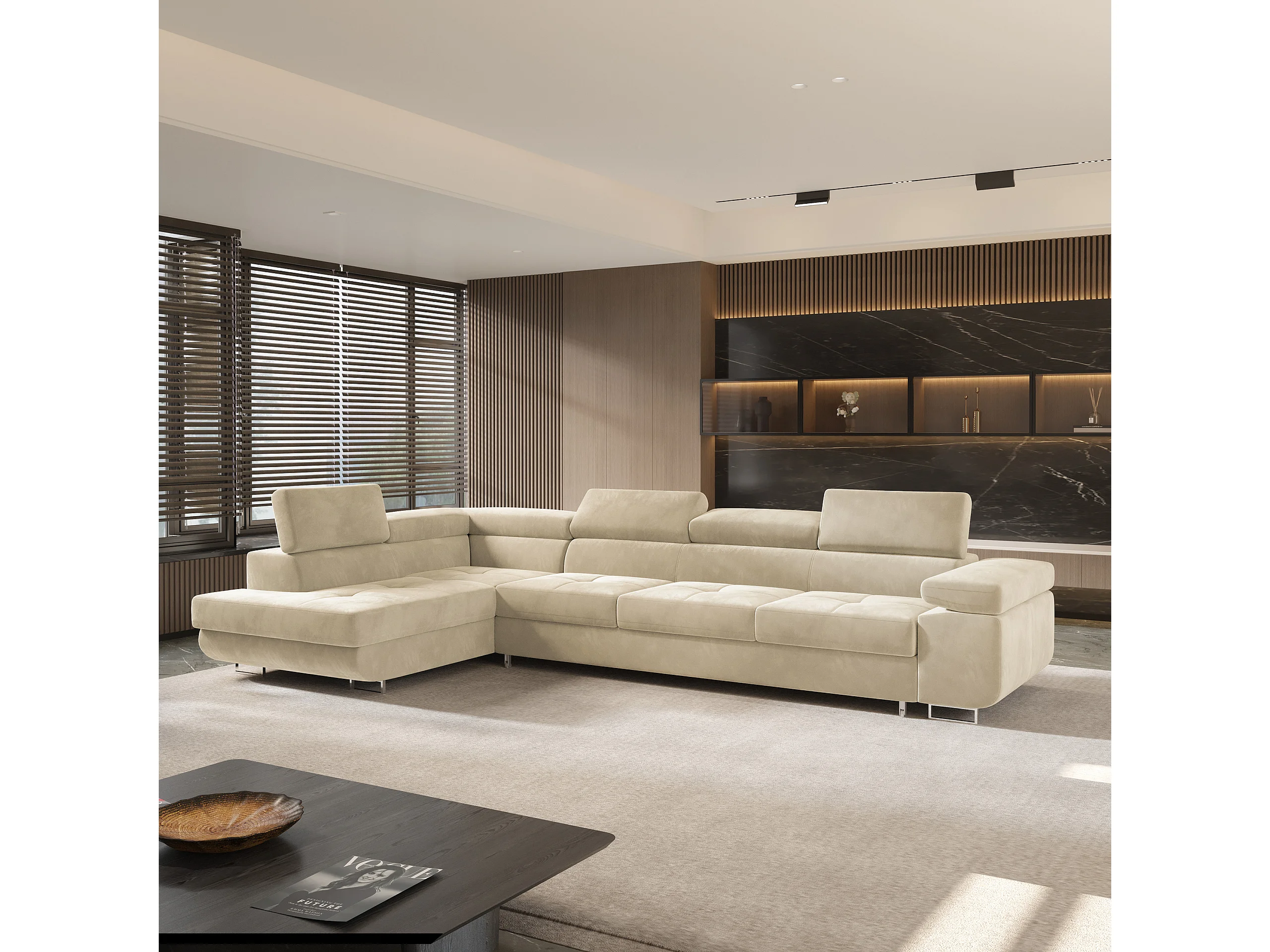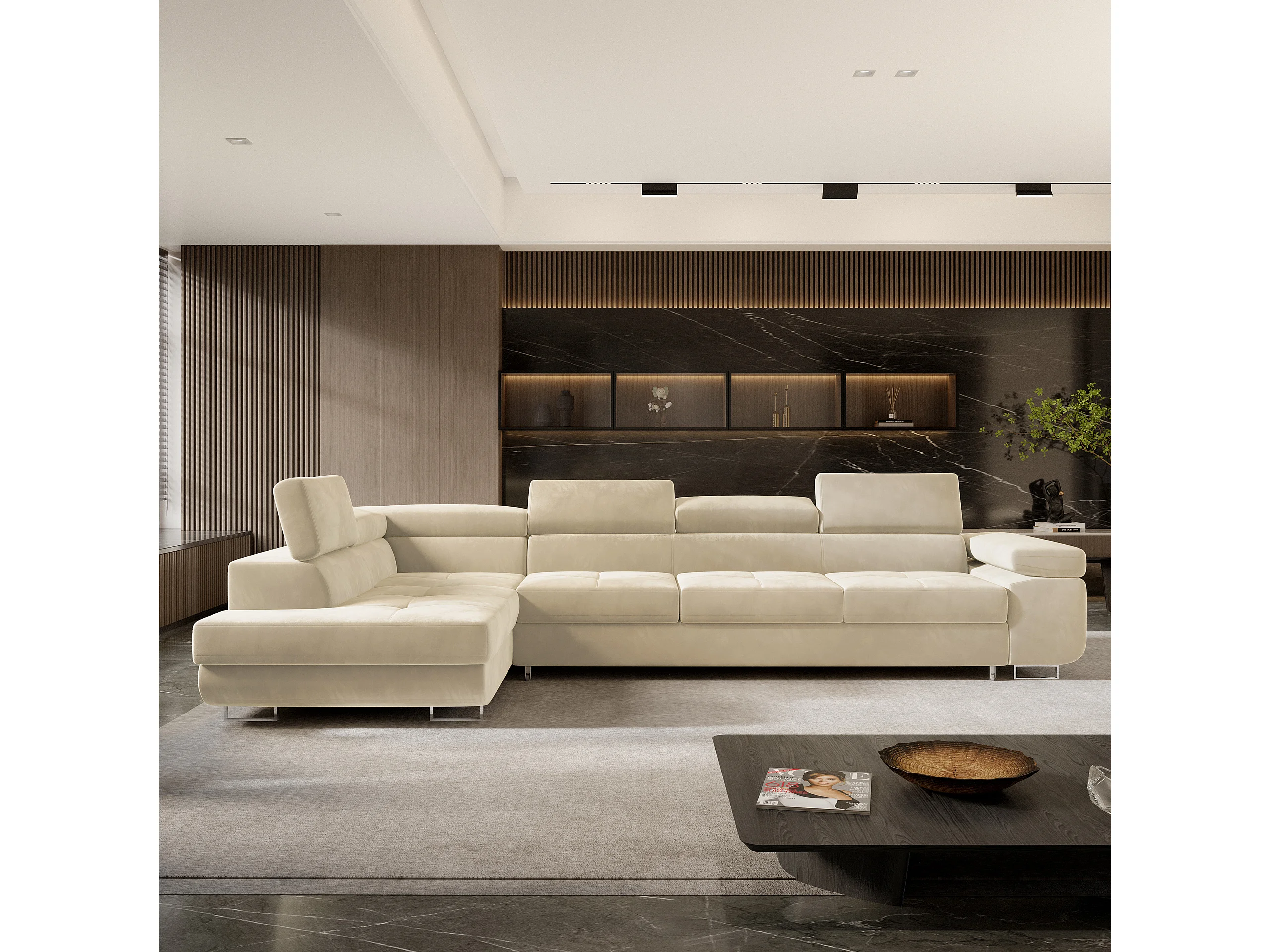 Canapé d'angle VICENTE Crème en velours avec fonction de couchage