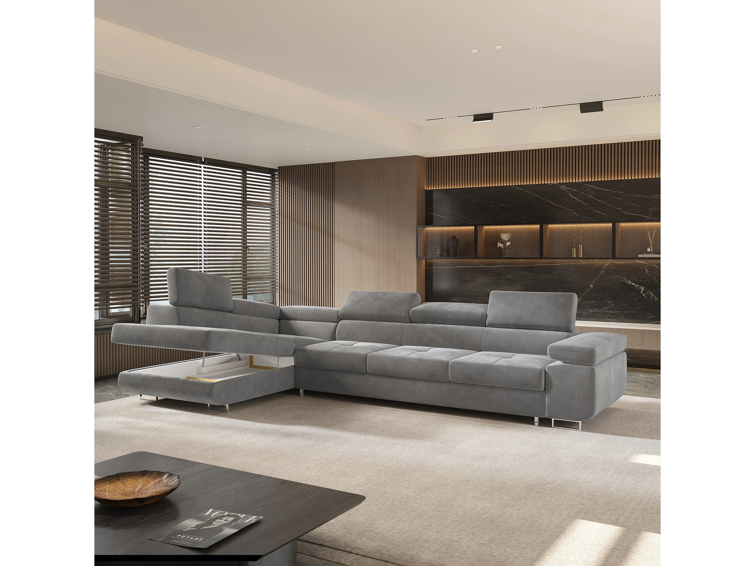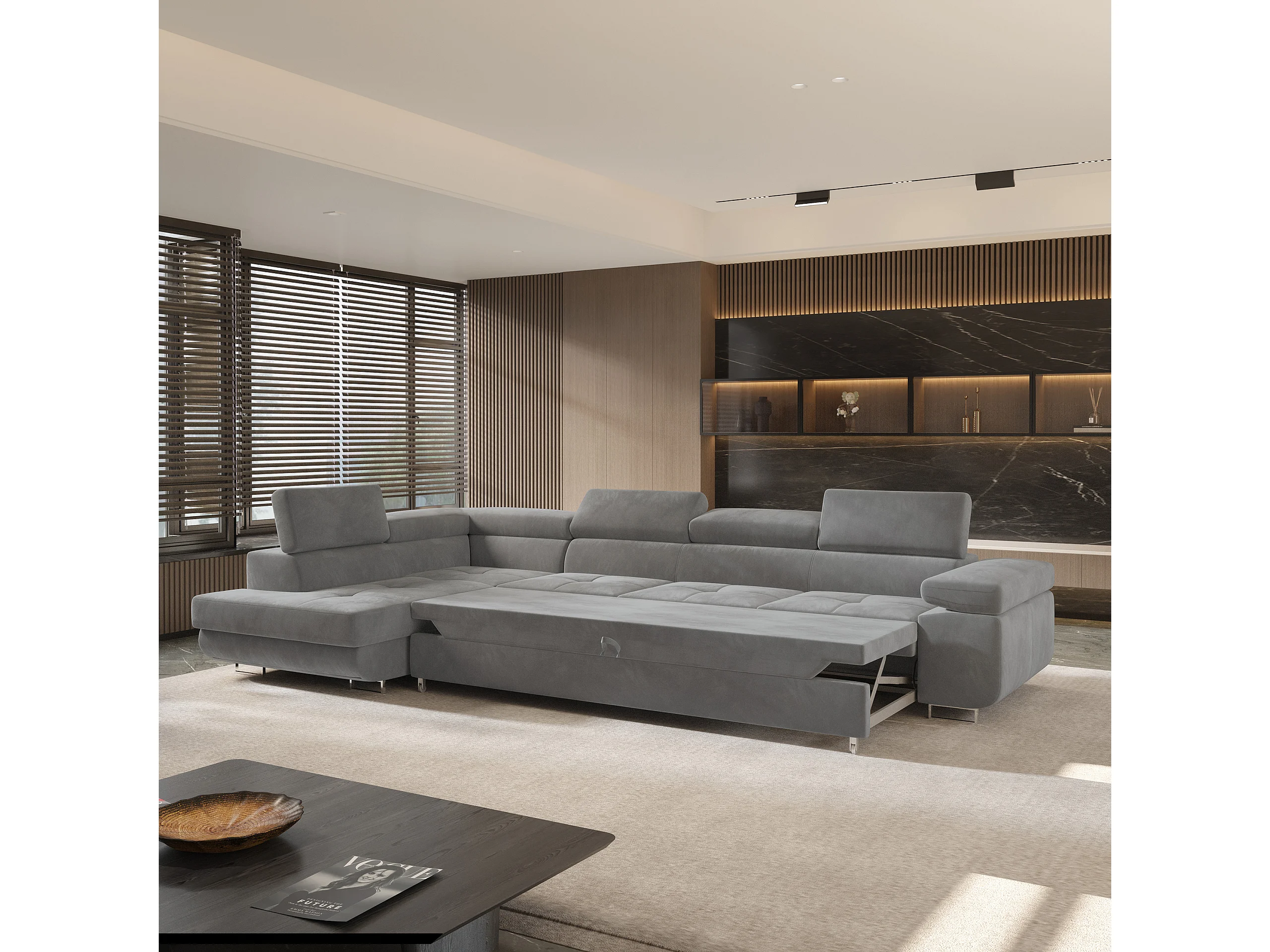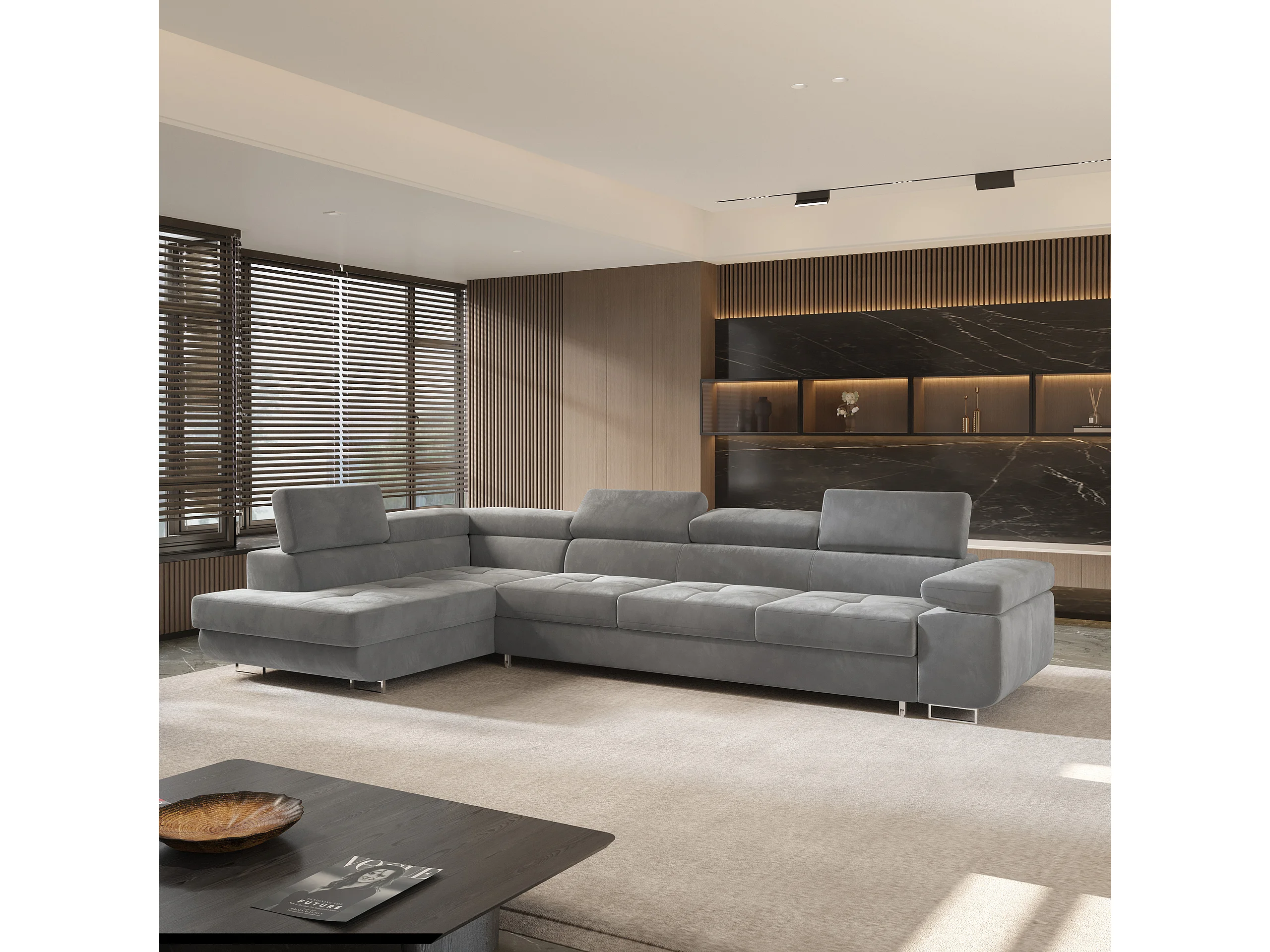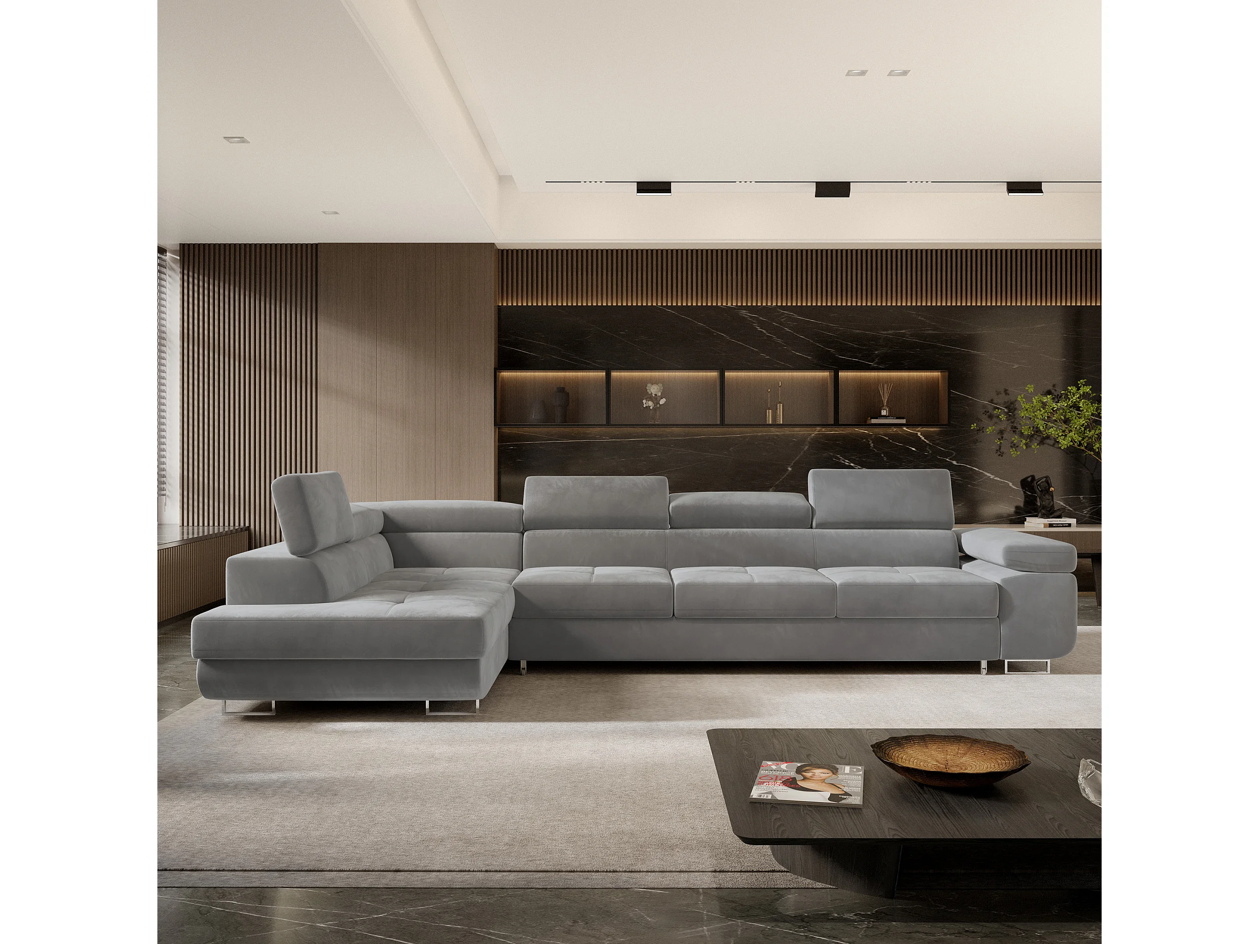 Canapé d'angle VICENTE Gris en velours avec fonction de couchage