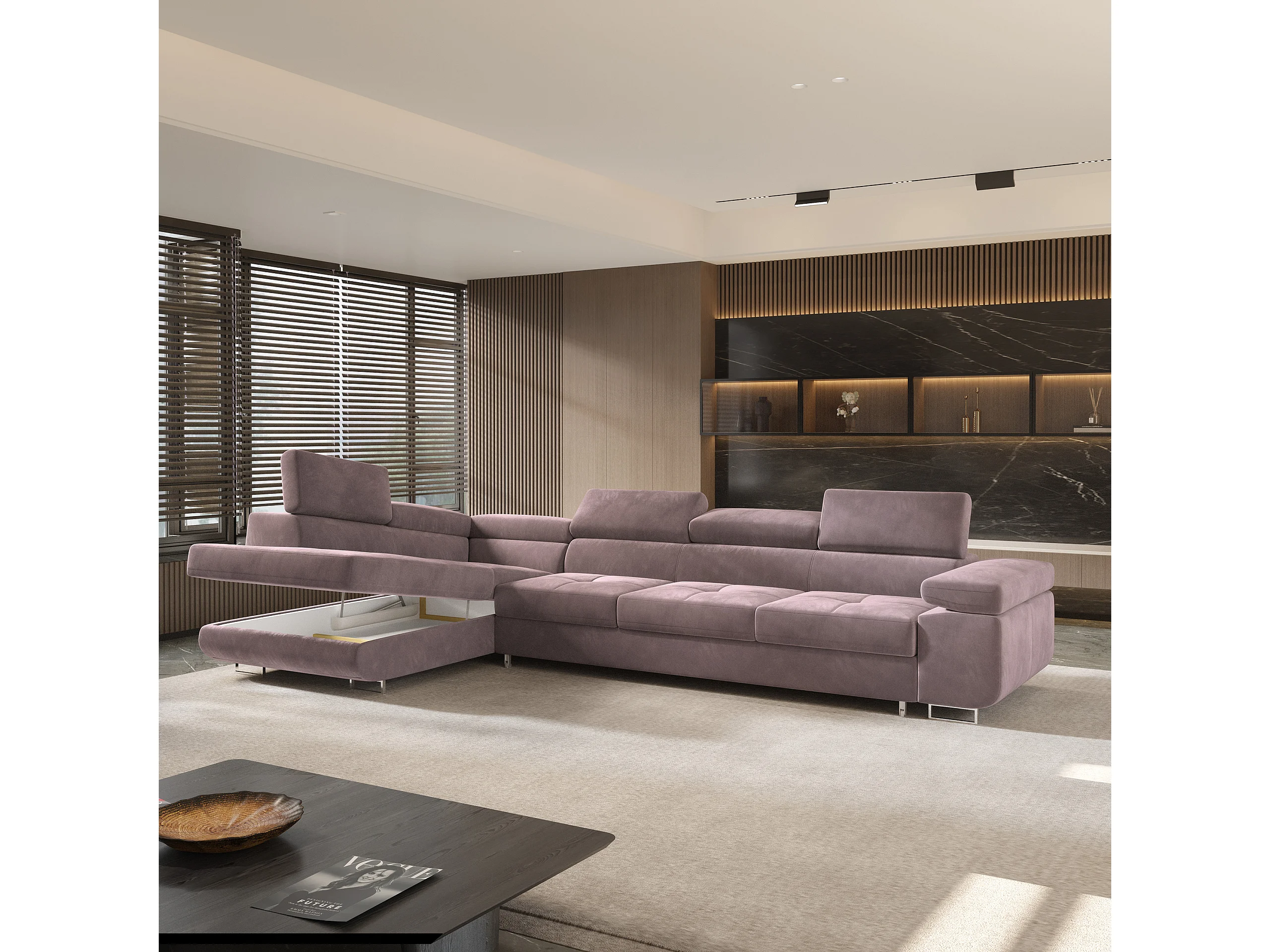 Canapé d'angle VICENTE Violet en velours avec fonction de couchage