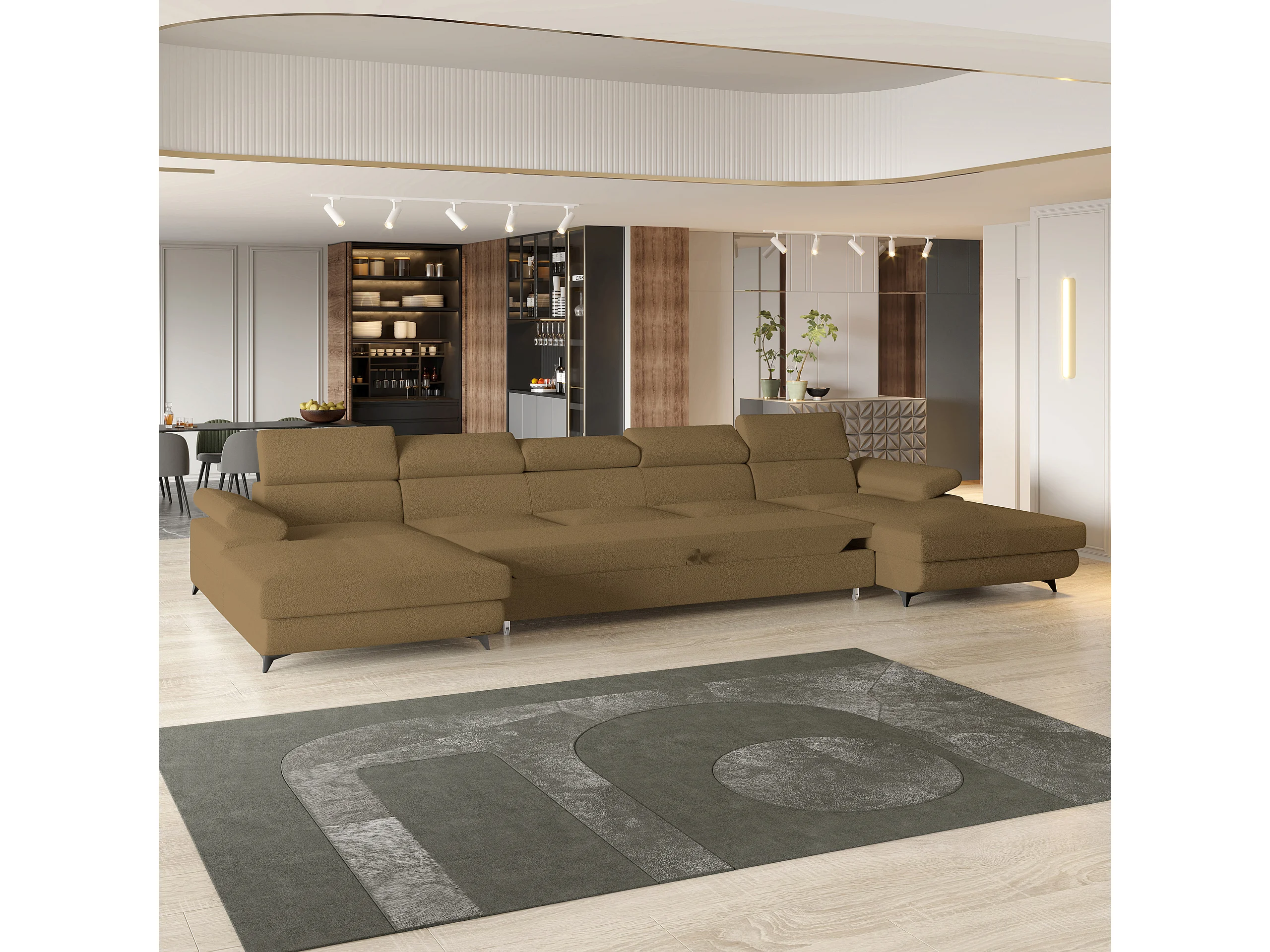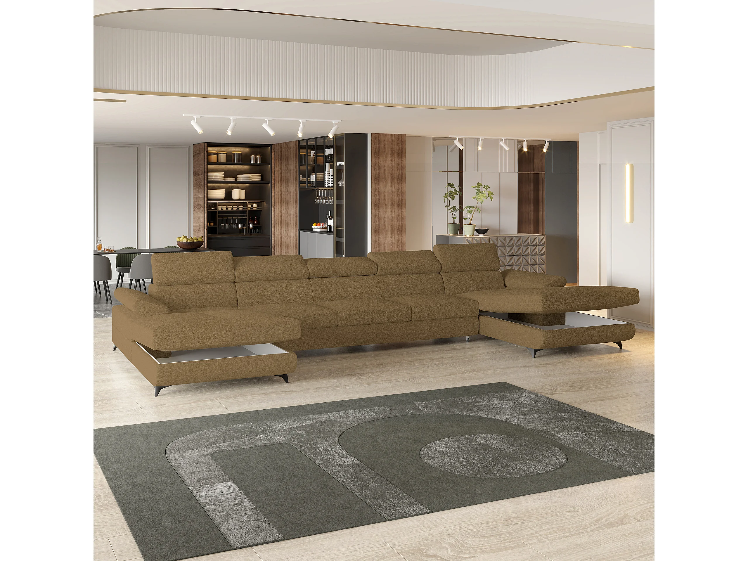 Canapé d'angle VIVENTE Orange en bouclé avec fonction de couchage