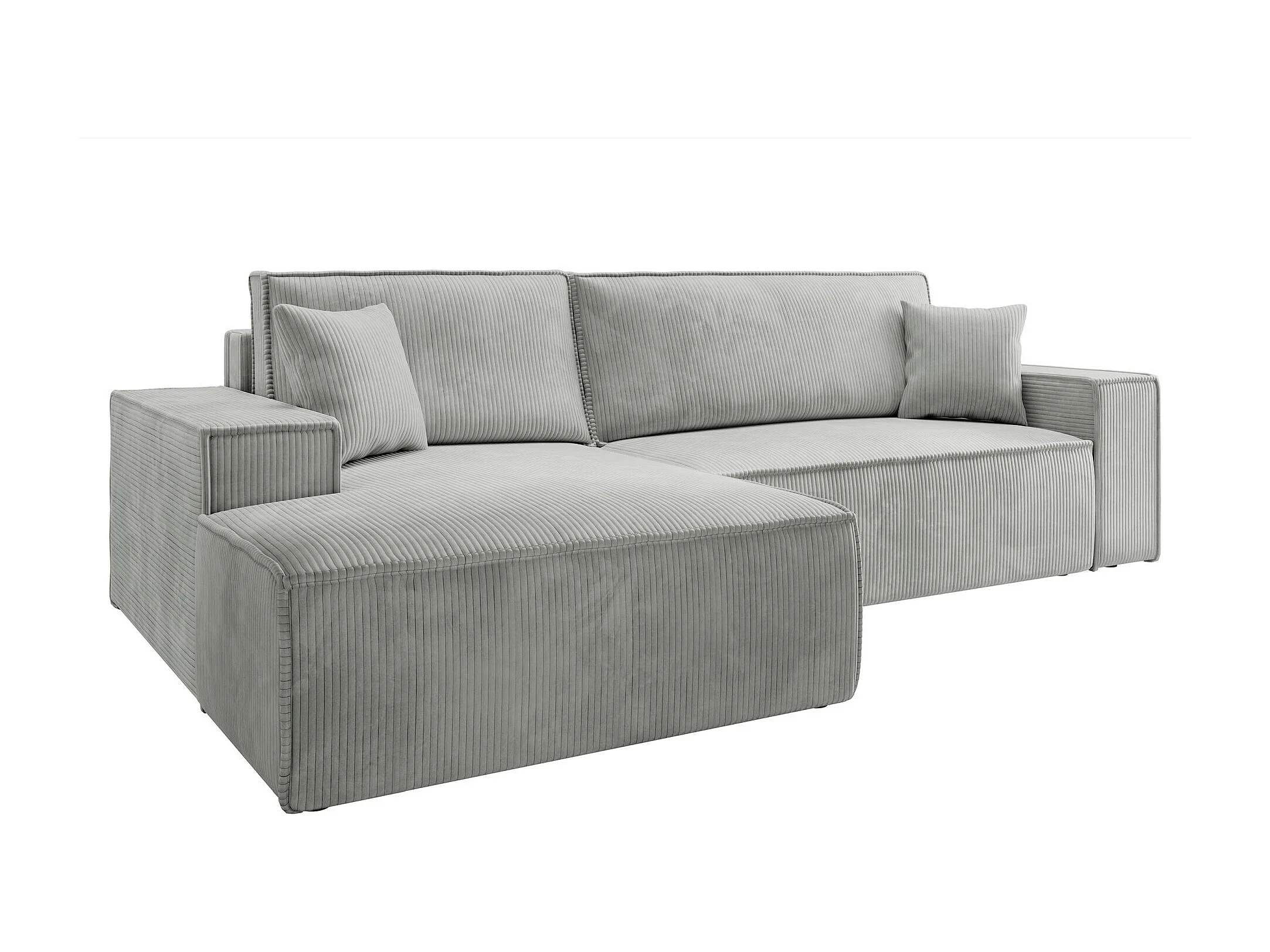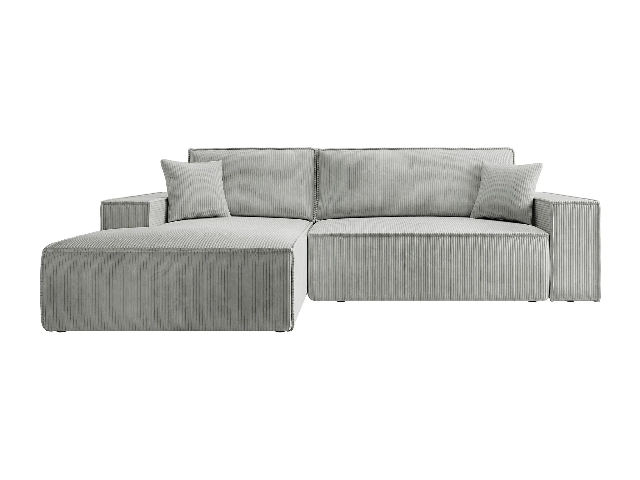 Canapé d’ convertible en velours côtelé avec coffre – gris clair – gauche – FARESE NEW