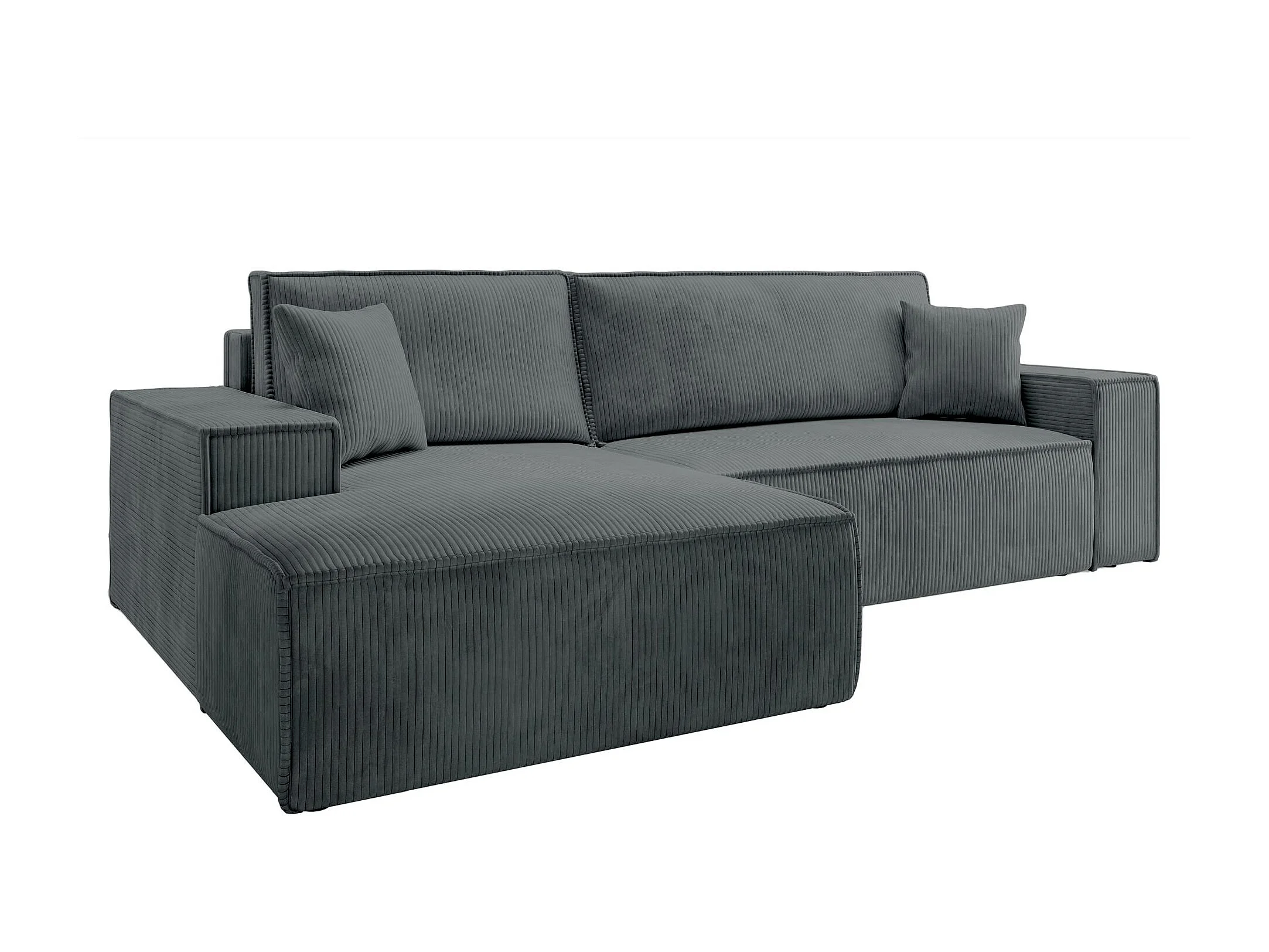 Canapé d’ convertible en velours côtelé avec coffre – gris – gauche – FARESE NEW