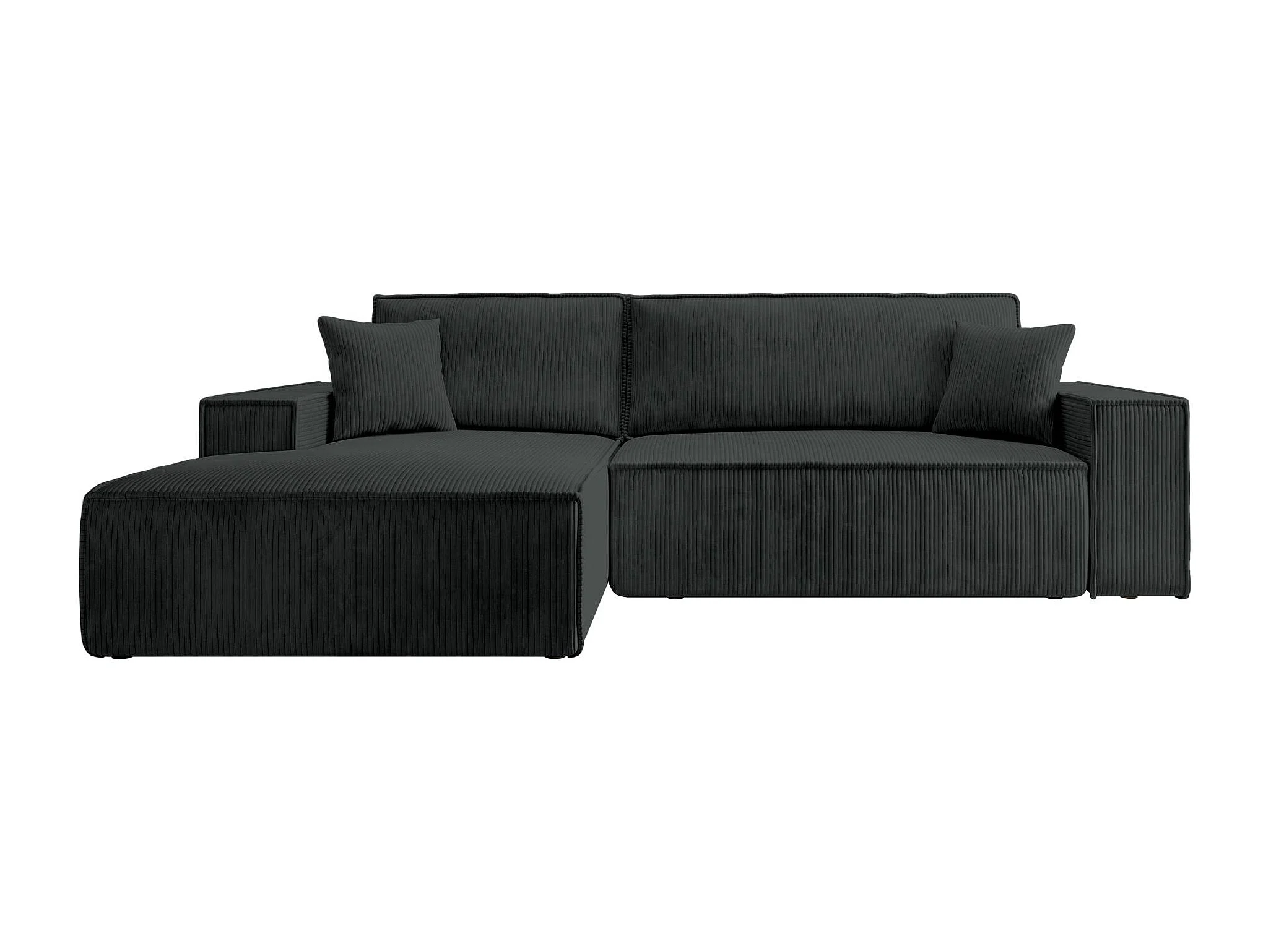 Canapé d’ convertible en velours côtelé avec coffre – noir – gauche – FARESE NEW