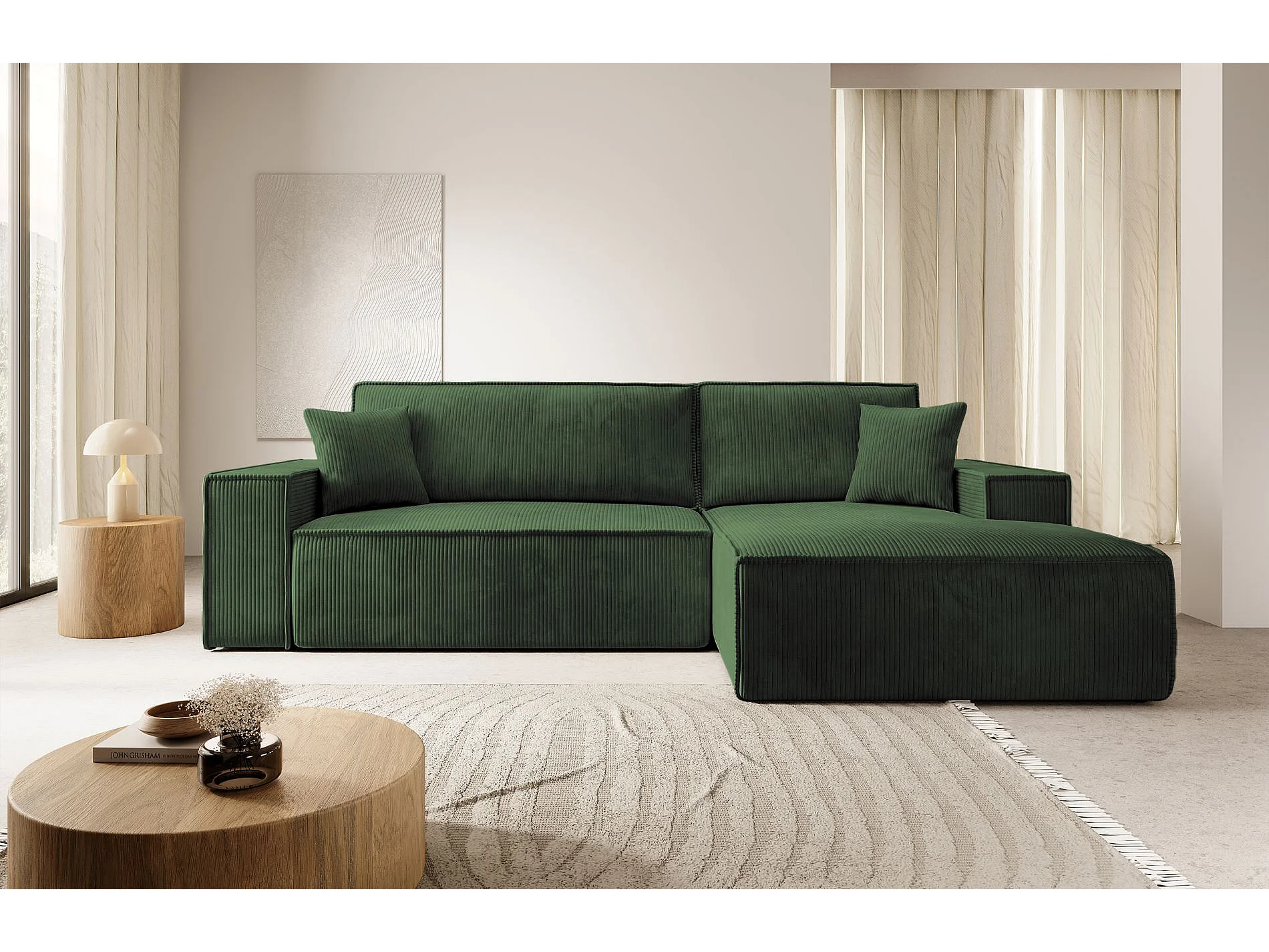 Canapé d’ convertible en velours côtelé avec coffre – vert – droit – FARESE NEW
