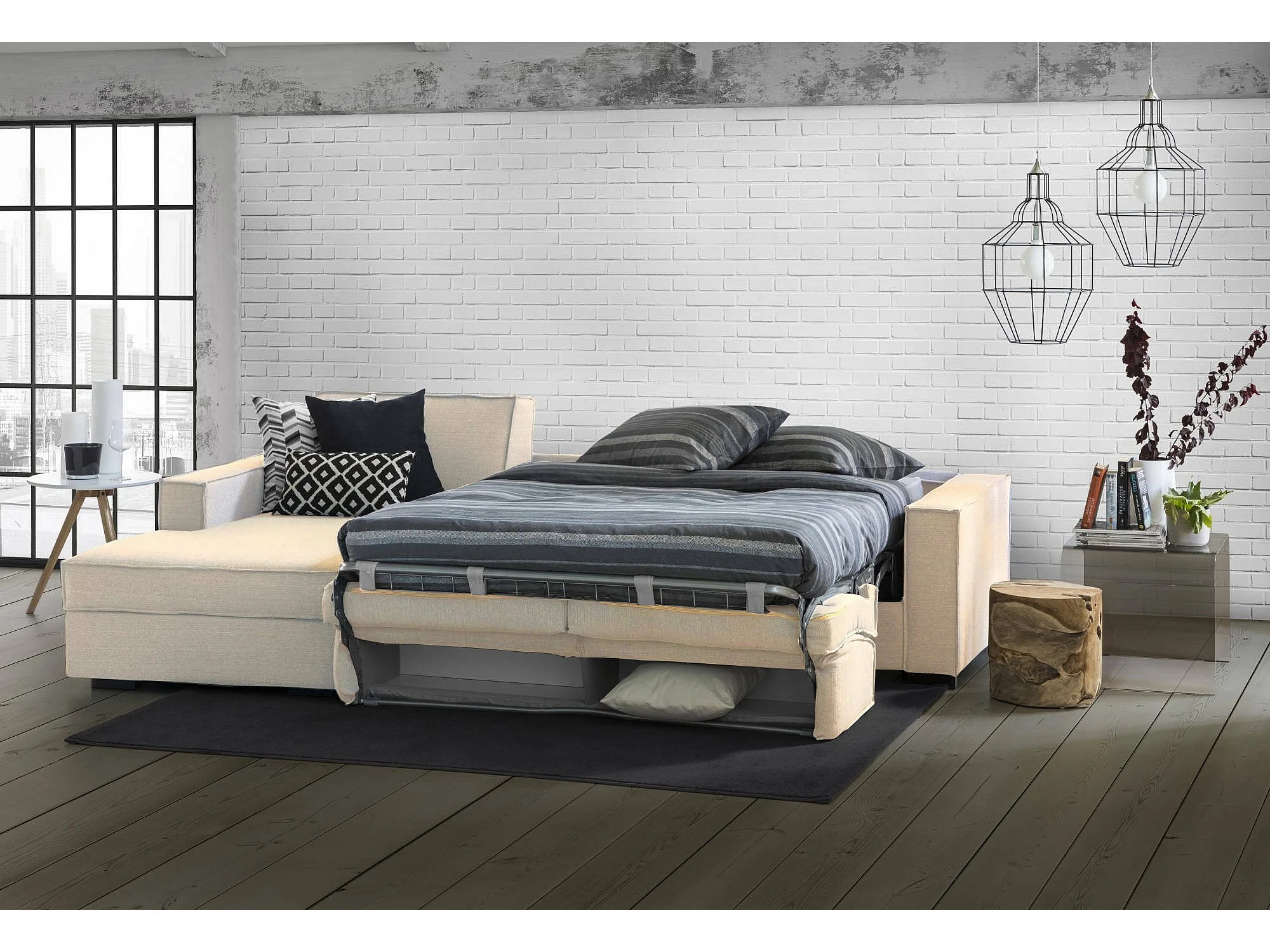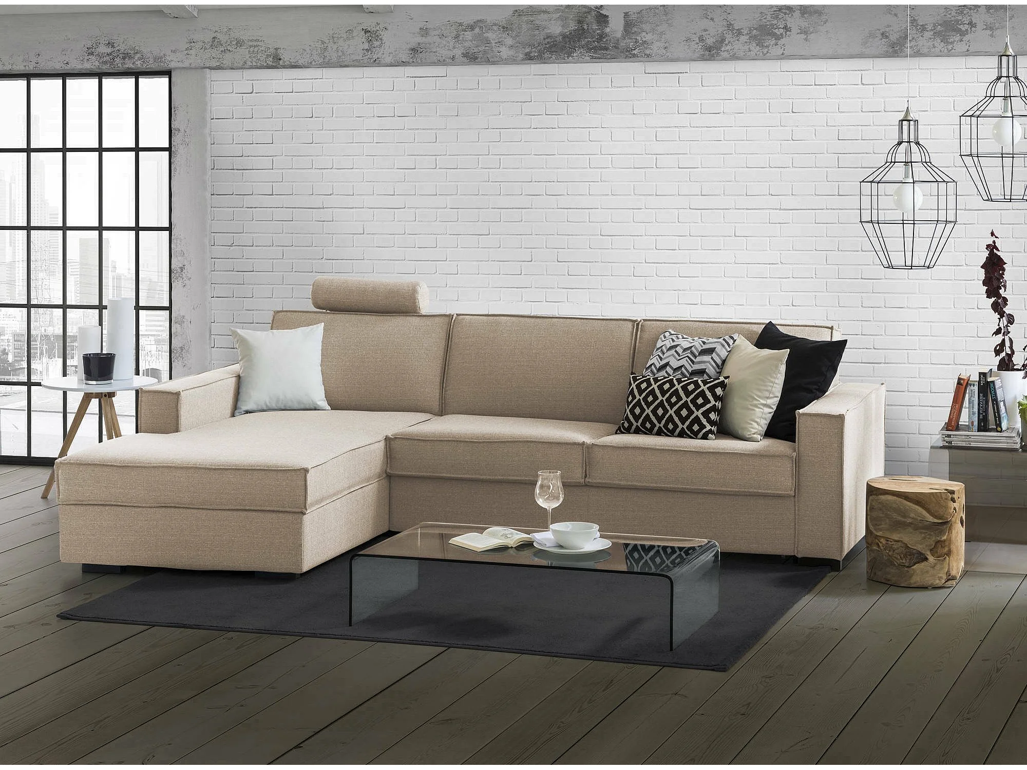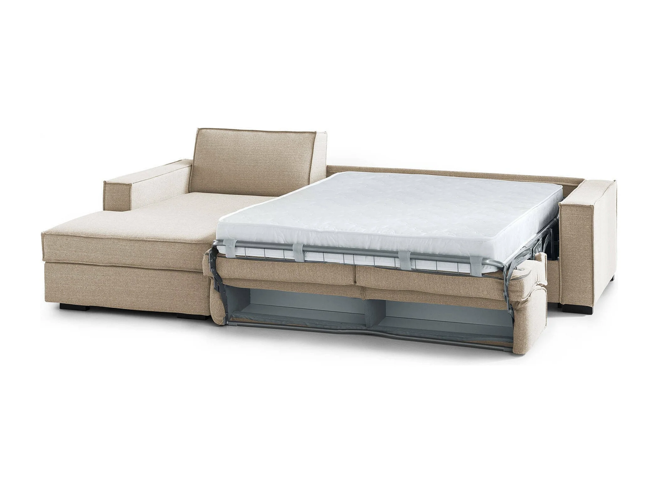 Daalb Canapé-lit, Canapé d'angle, 100% Made in Italy, Canapé avec ouverture pivotante, Péninsule de rangement gauche, avec accoudoirs fins, 260x95h90 cm, Beige