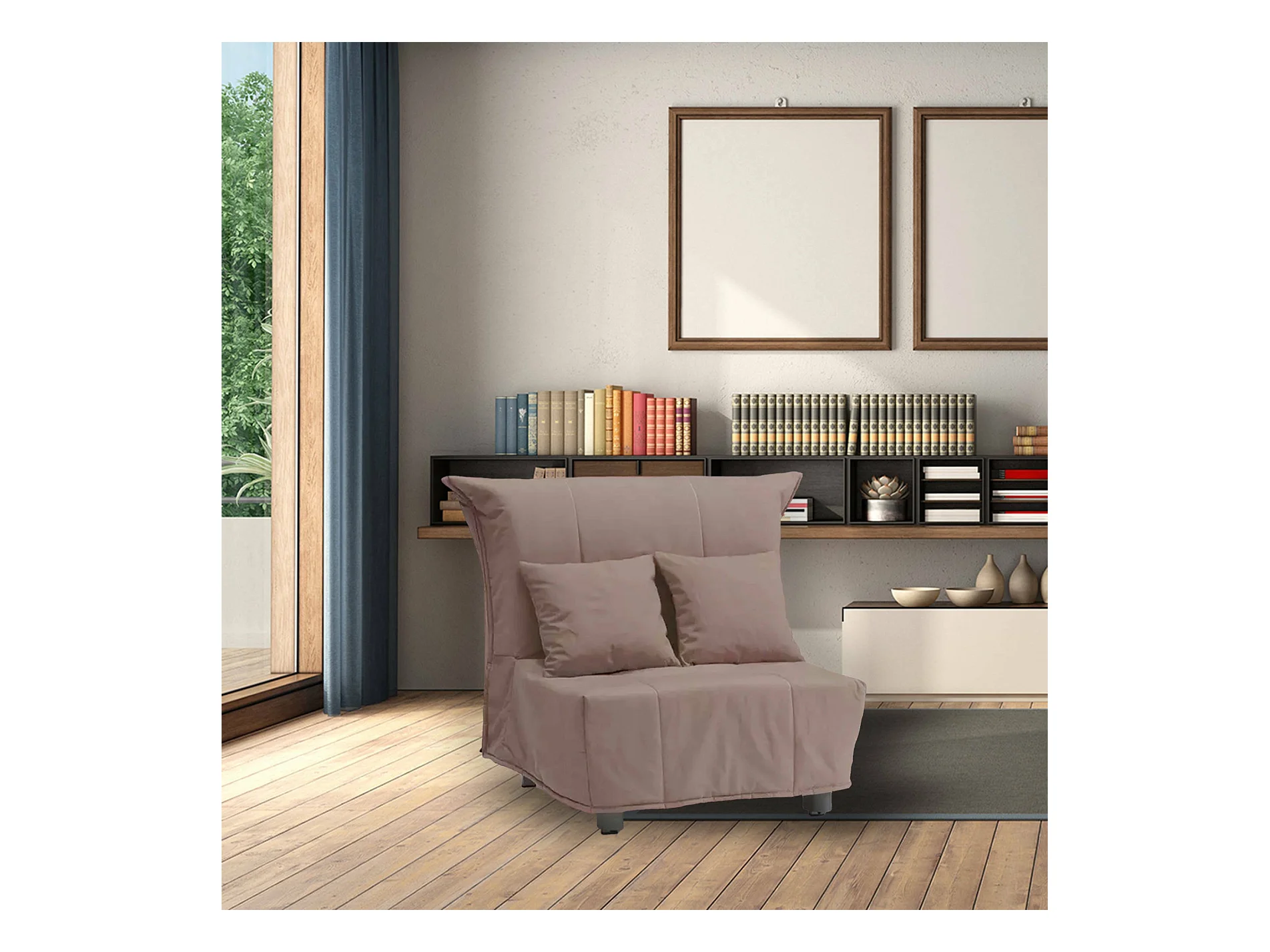 Canapé-lit Dabargi, Canapé simple, 100% Made in Italy, Fauteuil de salon avec ouverture trolley, en tissu rembourré, avec coussins inclus, 85x90h85 cm, Taupe