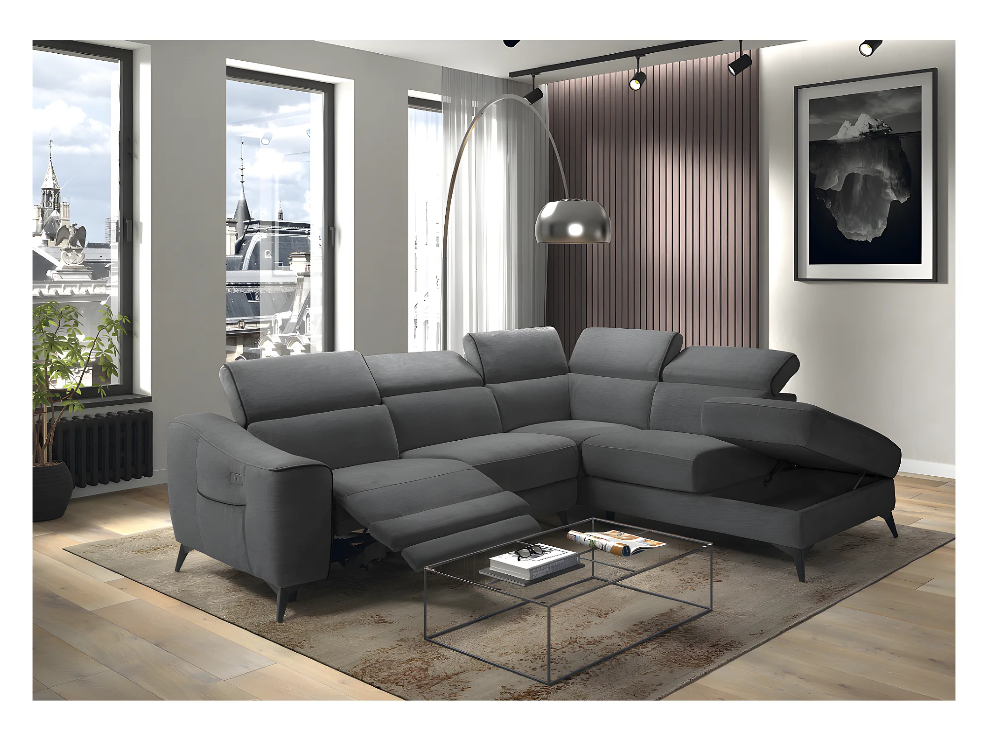 Canapé d'angle 1 relax électrique avec coffre couleur Gris foncé angle à droite