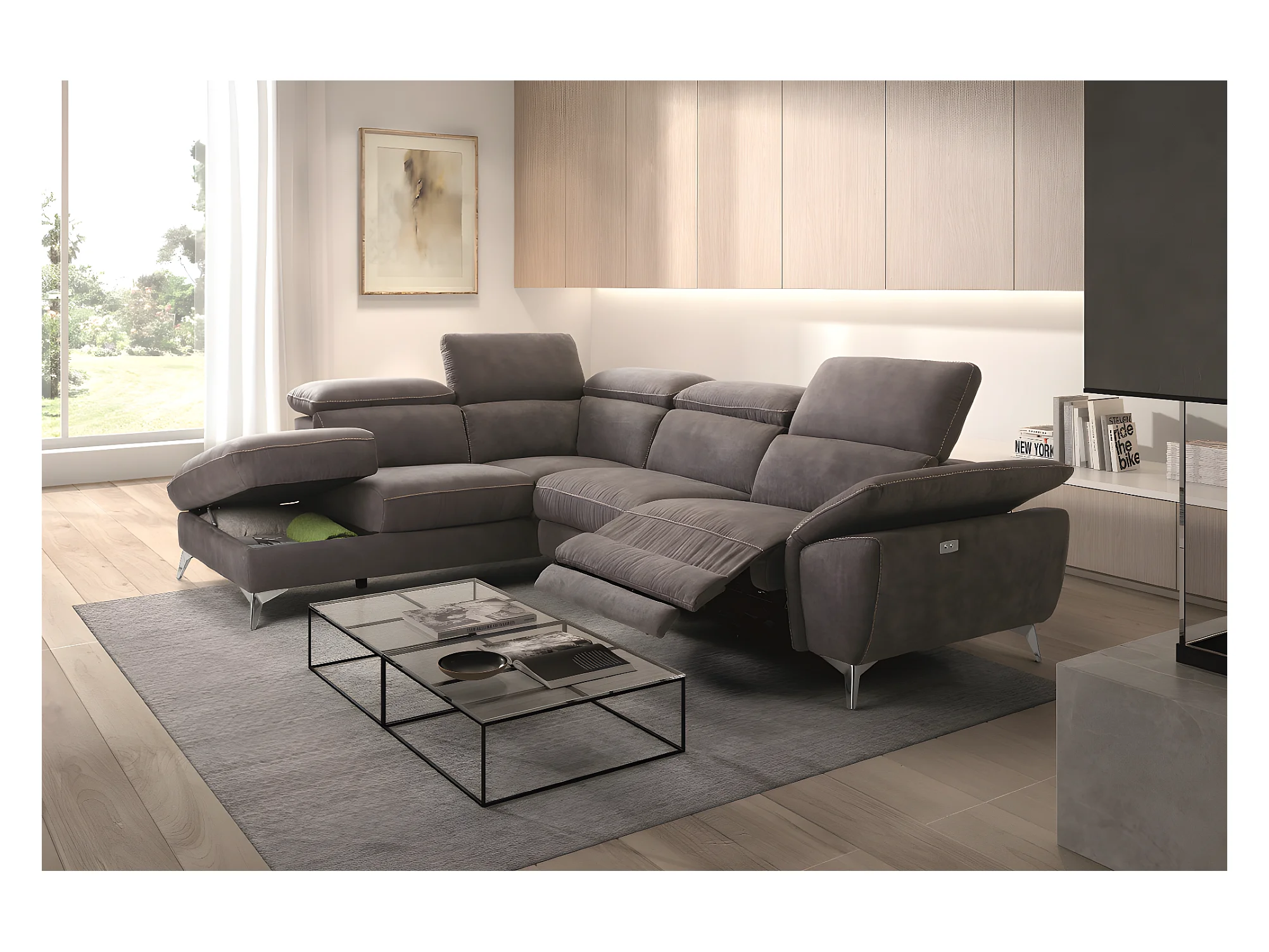 Canapé d'angle 1 relax électrique avec coffre couleur Gris foncé angle à gauche