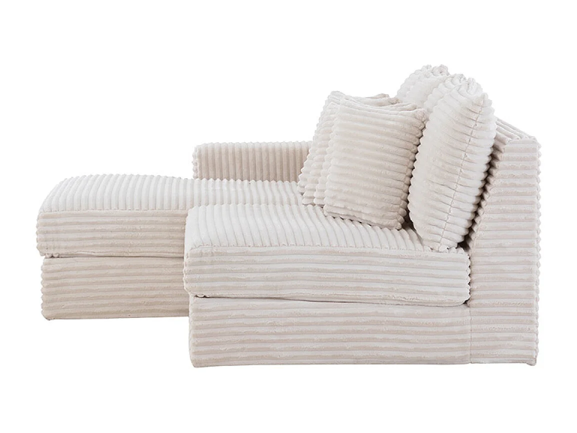 Canapé d'angle 2-3 places assise profonde en velours côtelé beige CARDIFF