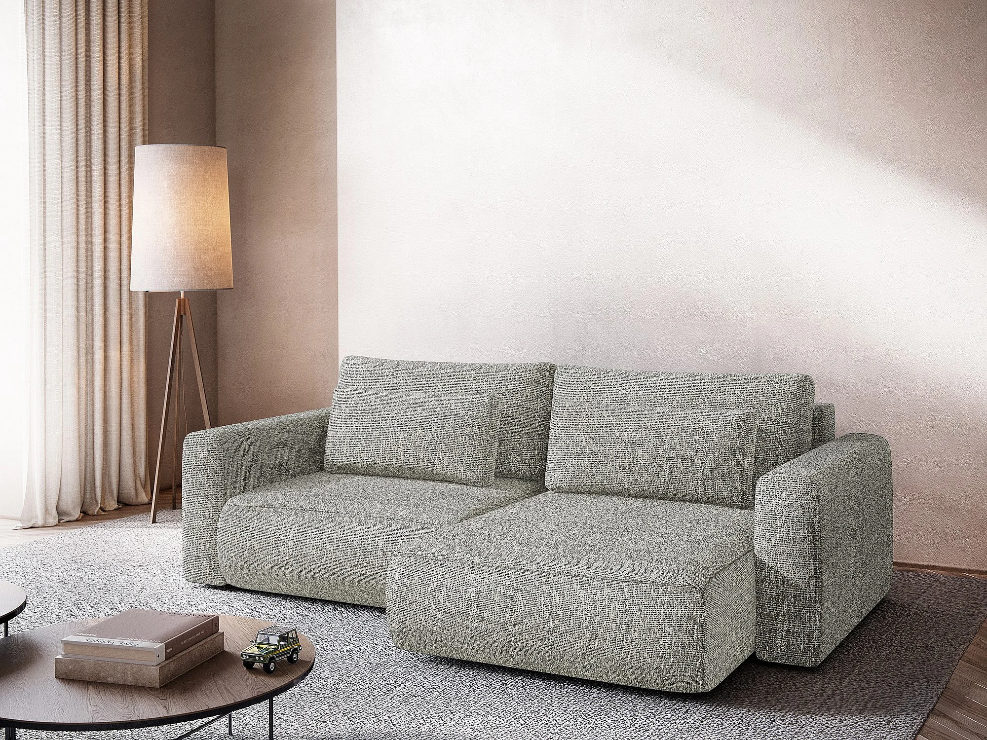 Canapé d’angle 2,5 places droit convertible en tissu texturé - gris beige - KAPUA