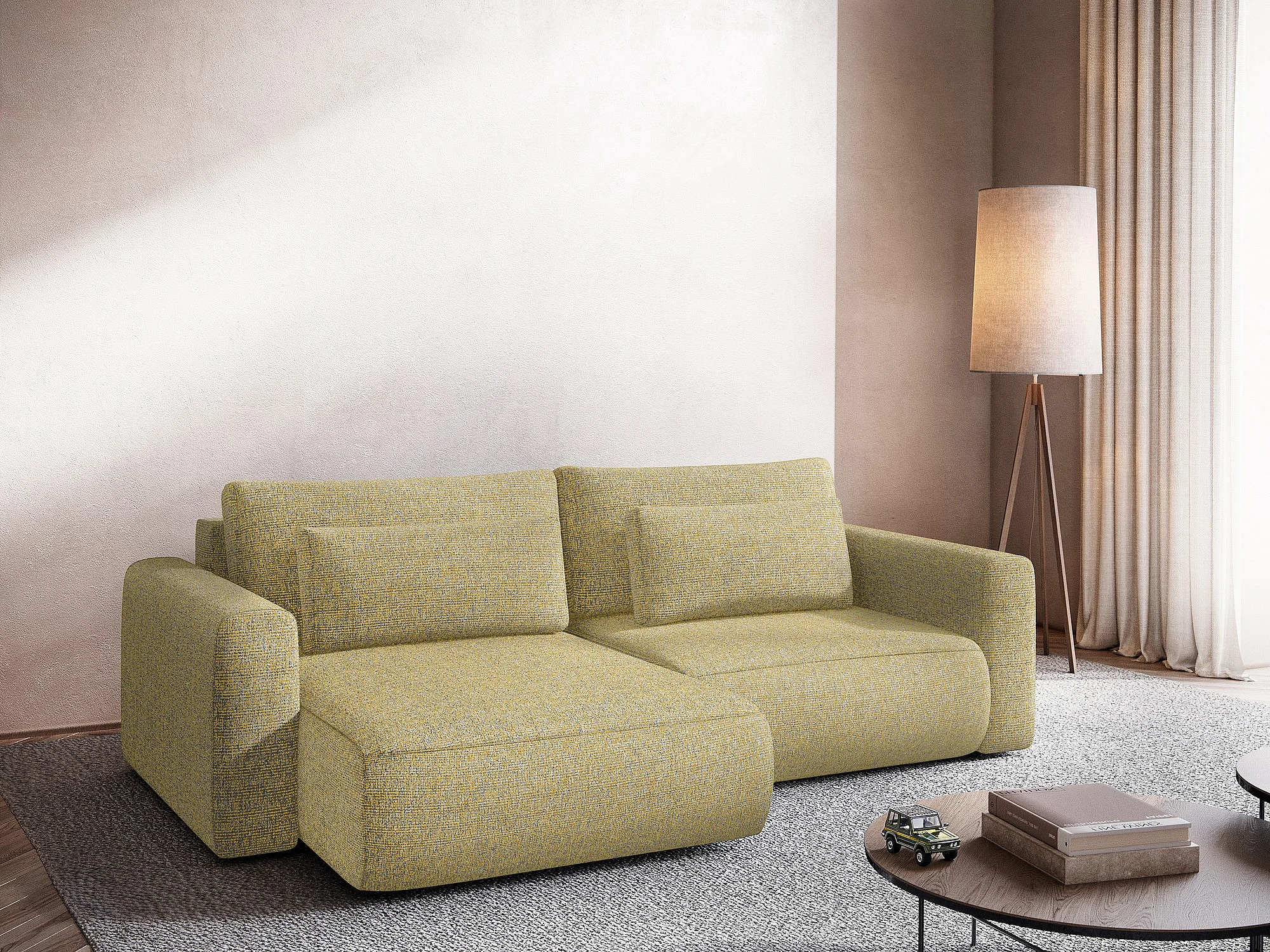 Canapé d’angle 2,5 places gauche convertible en tissu texturé - moutarde - KAPUA