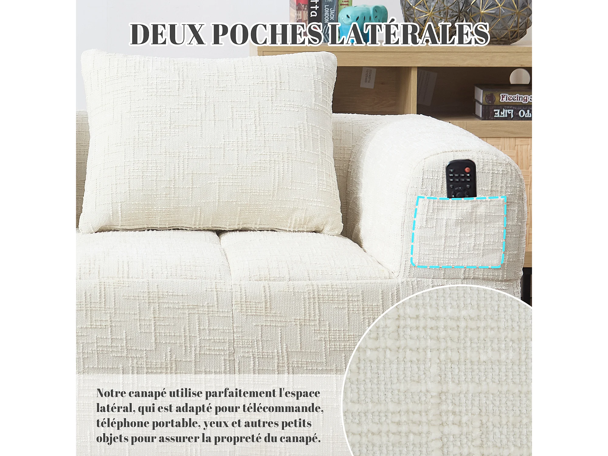 Canapé d'angle 2 places en chenille - module d'angle - avec poche de rangement latérale - Beige - Parfait pour Salon et Studio