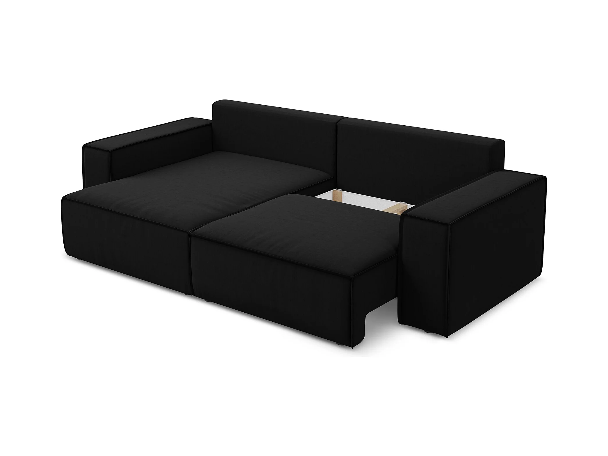 Canapé d’angle 2 places gauche convertible en velours - noir - KIMO