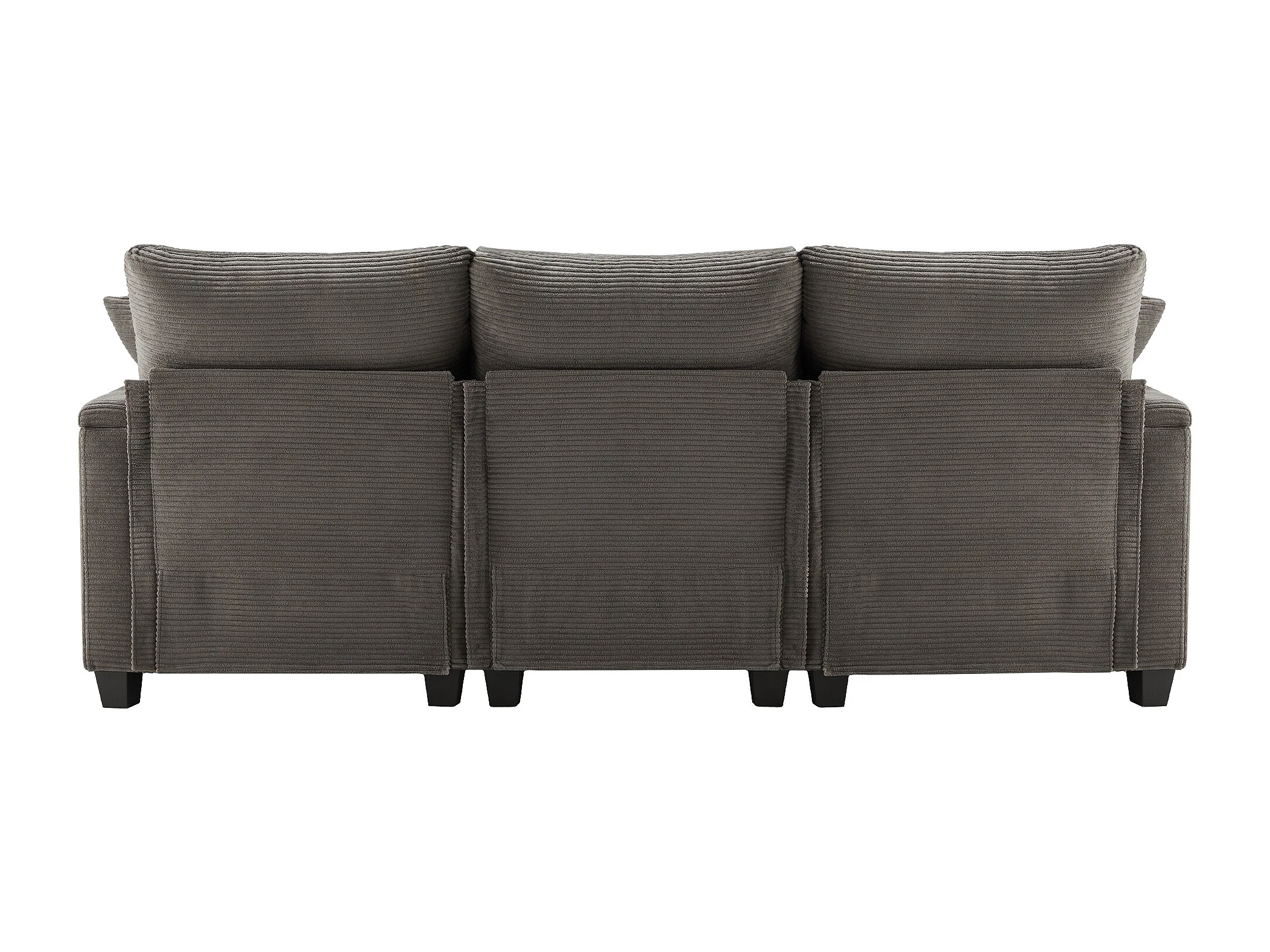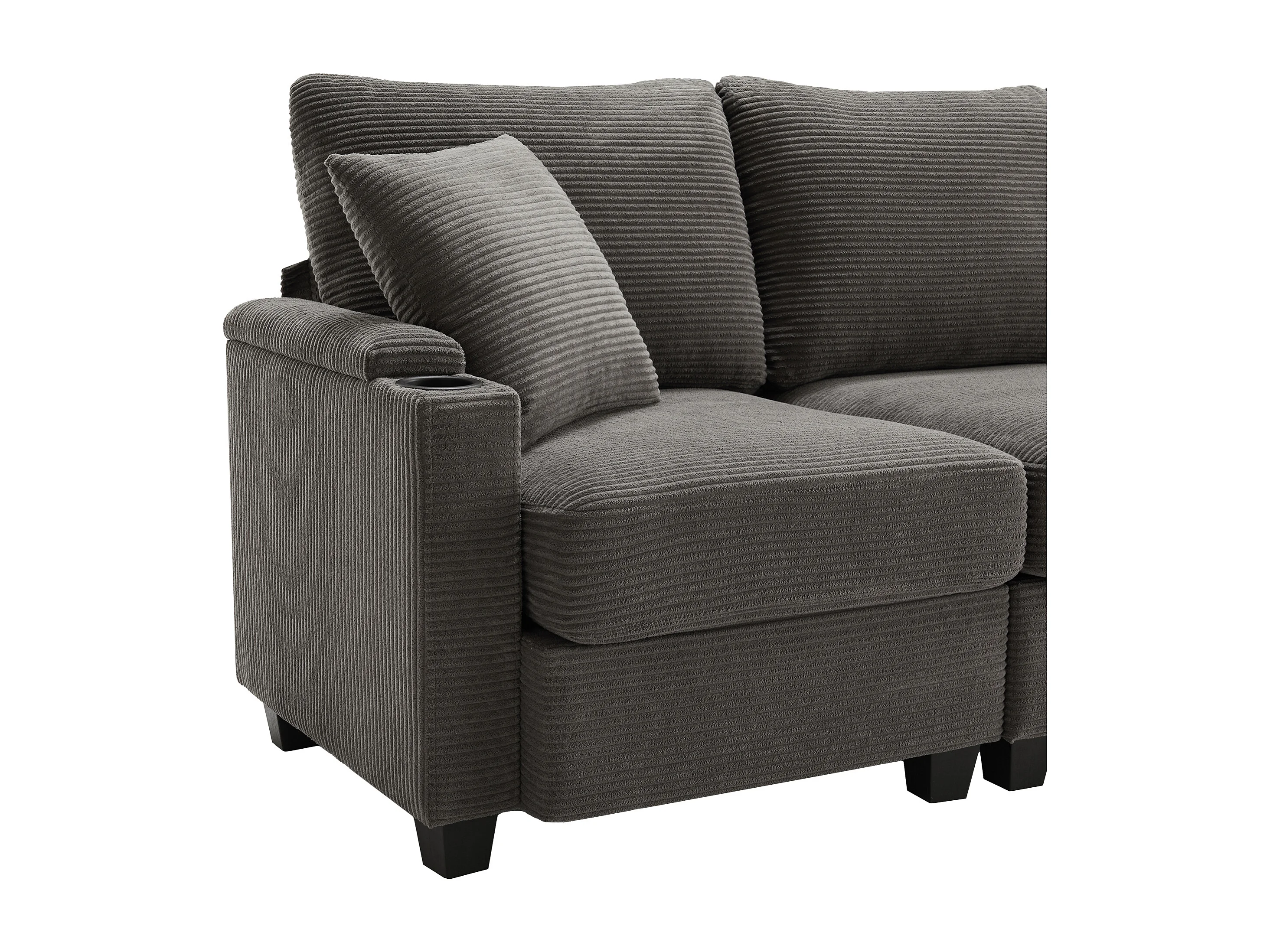 Canapé d'angle 213.5x139x87cm Avec pouf USB Porte gobelet Rangement Accoudoir Tissu velours côtelé Gris foncé