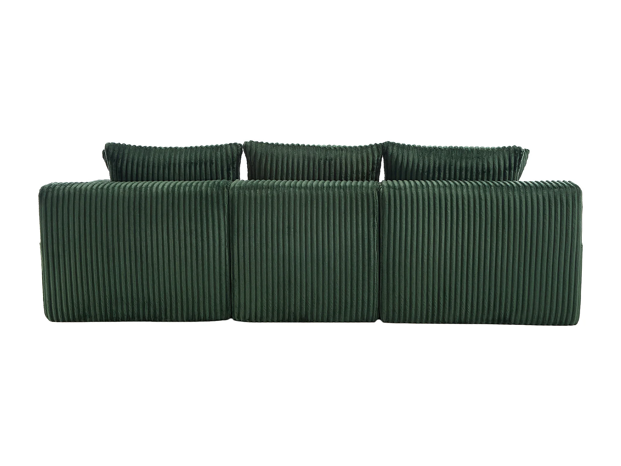 Canapé d'angle 3 places, 257 x 160 x 62, rangement, pour salon, appartement et studio, Corduroy Vert émeraude