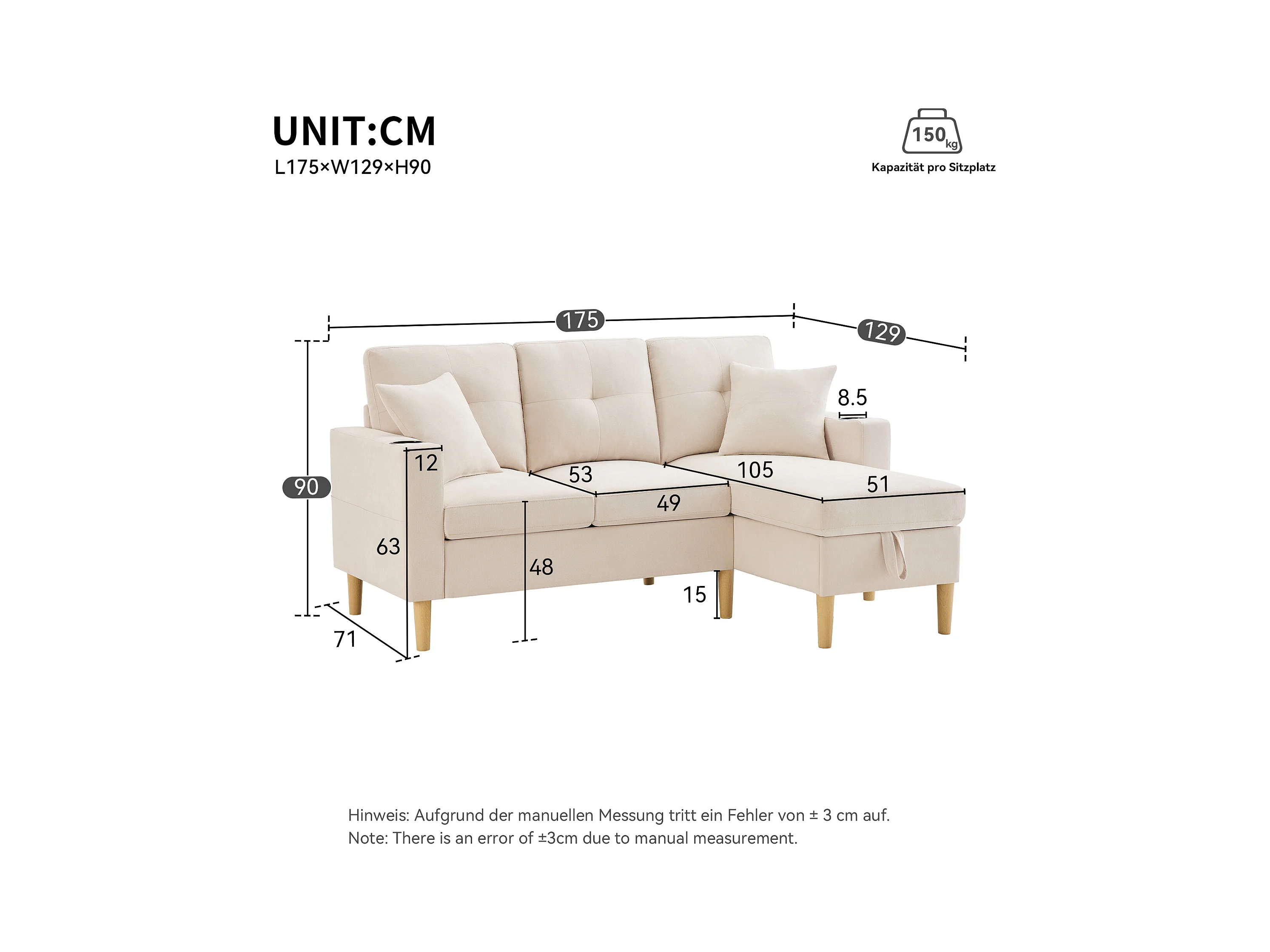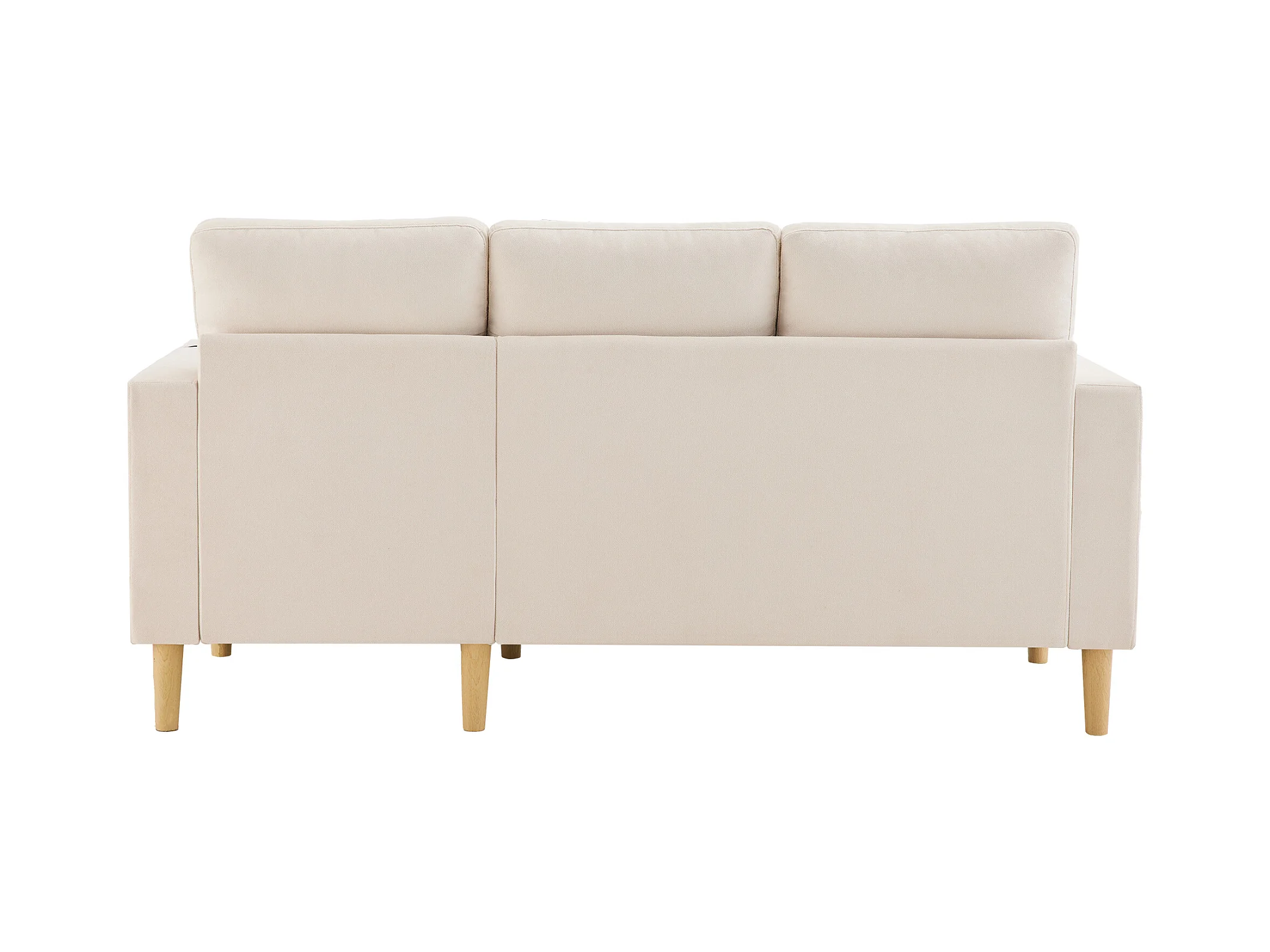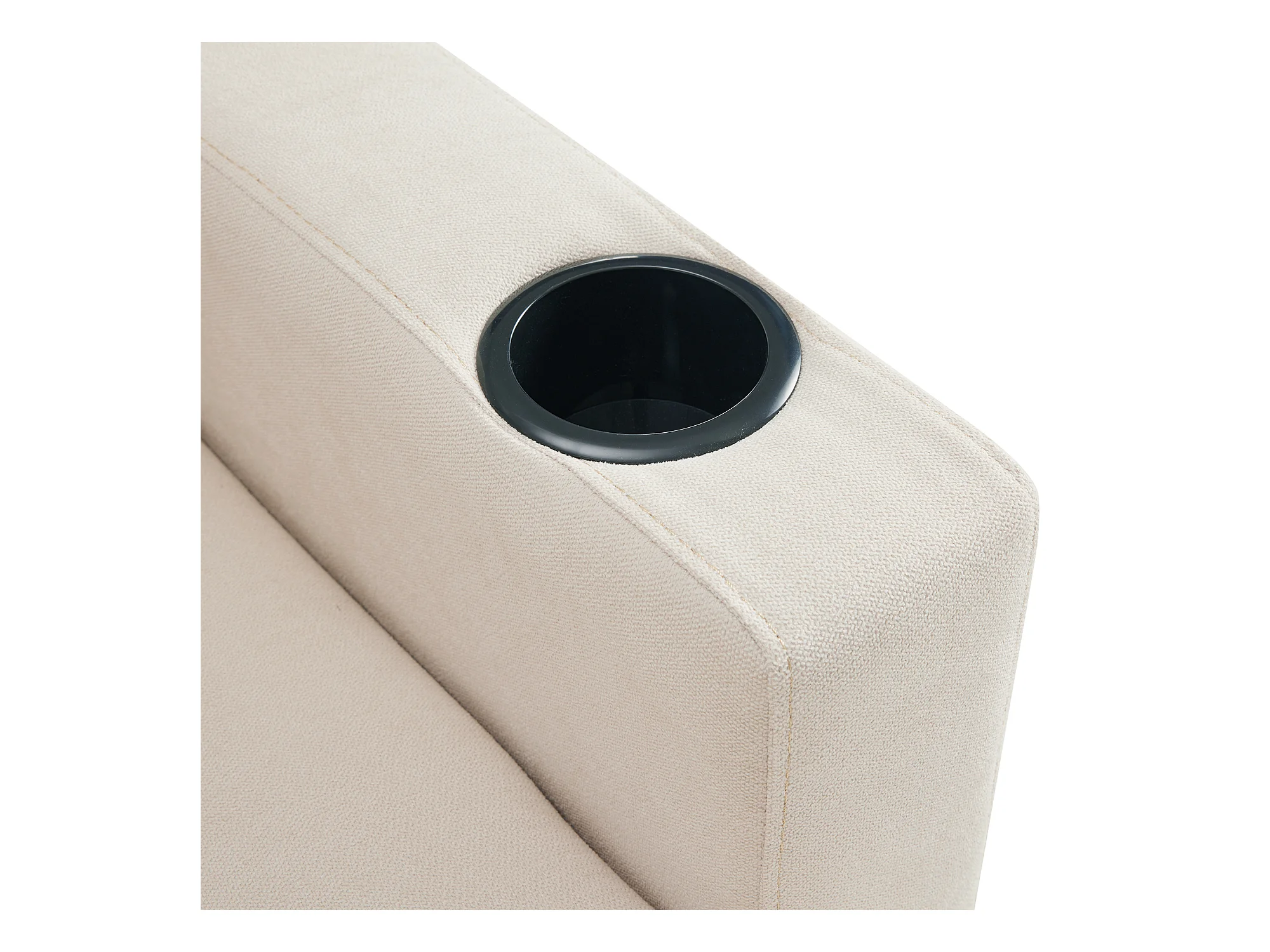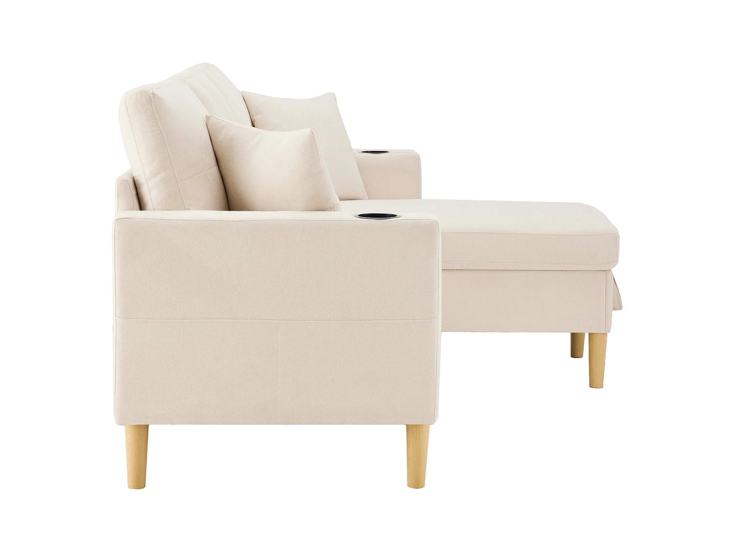 Canapé d'angle 3 places avec coffre de rangement, coussins et porte-gobelets - coton et lin beige