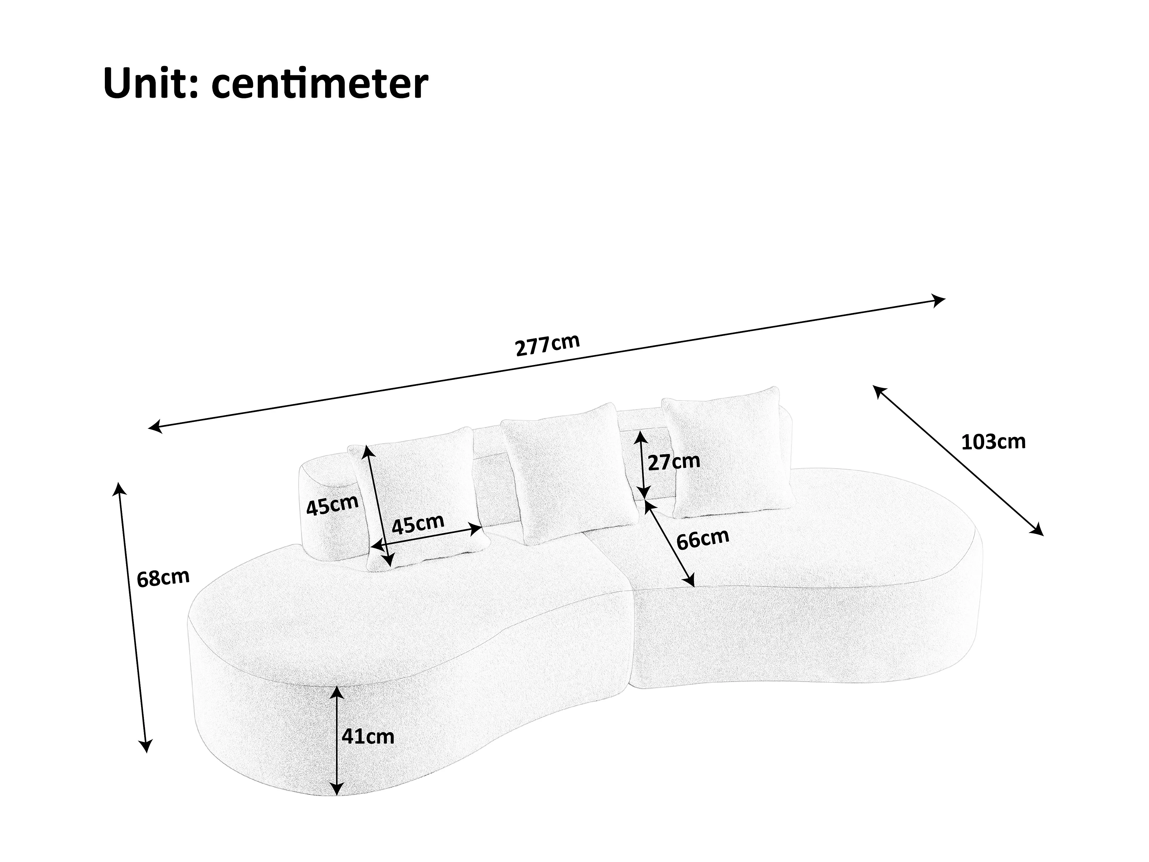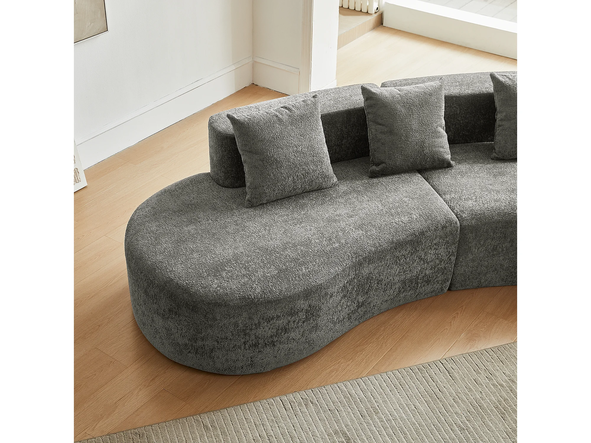 Canapé d'angle 3 places avec coussins - Design incurvé - Tissu velours gris