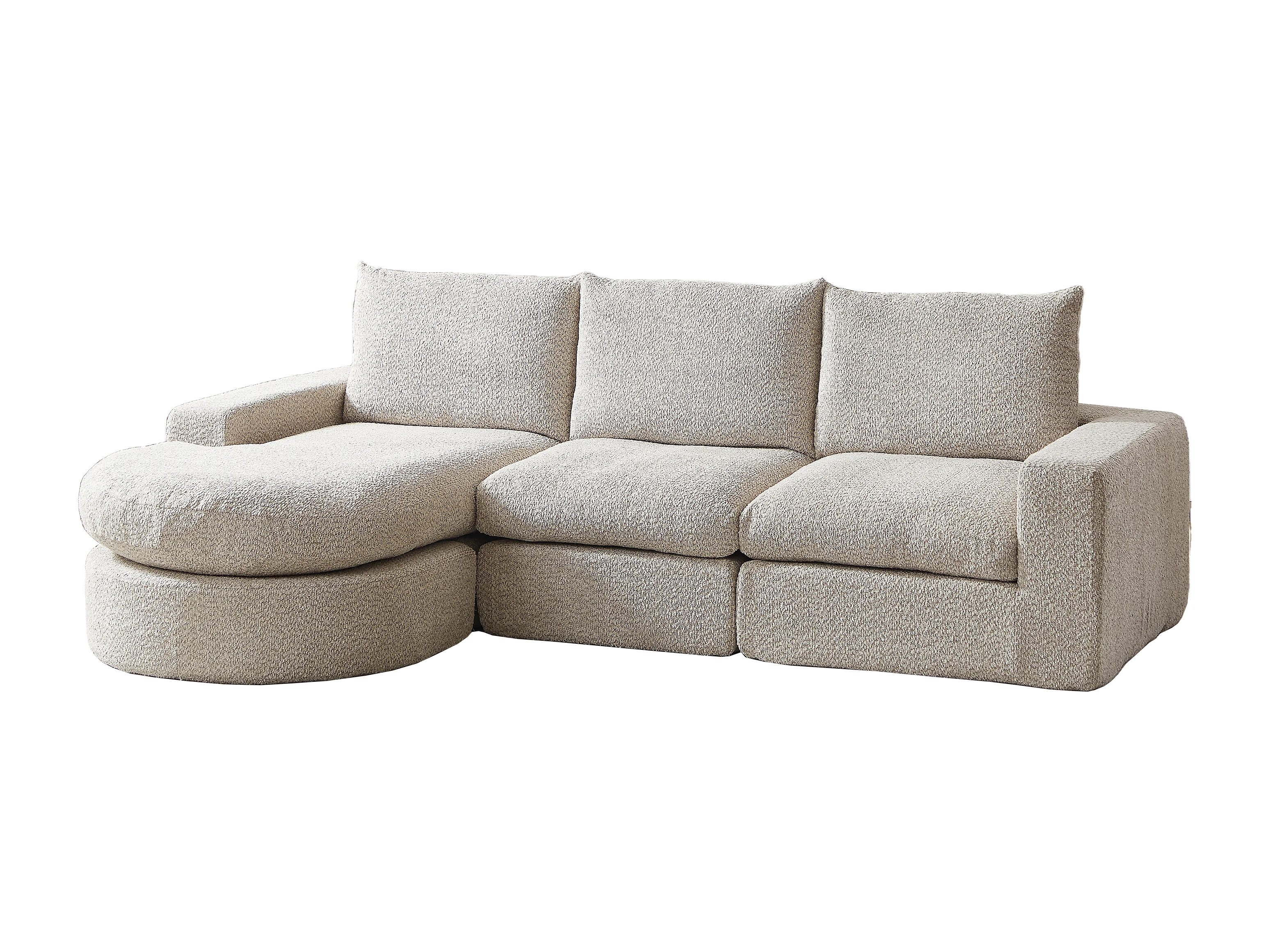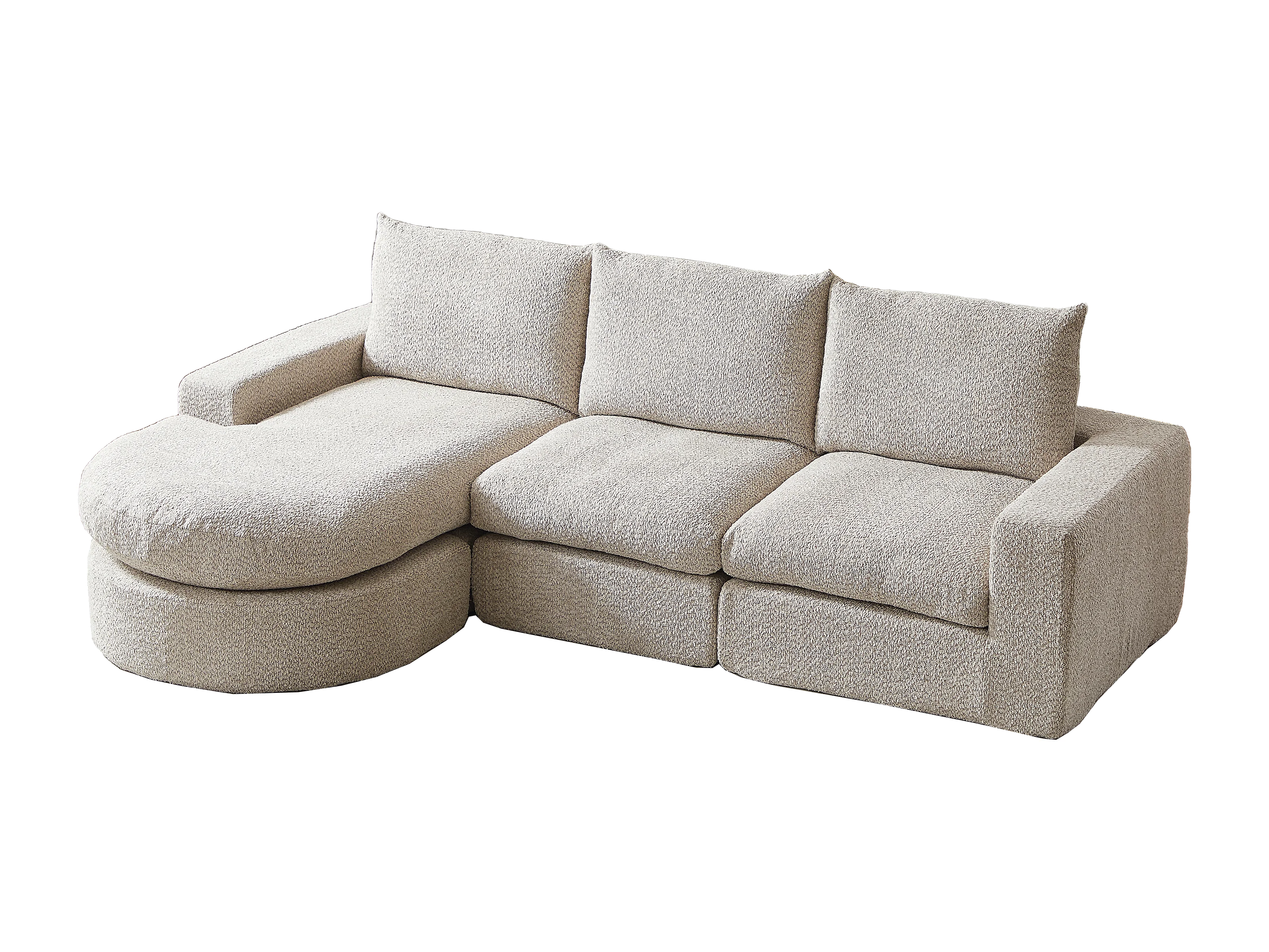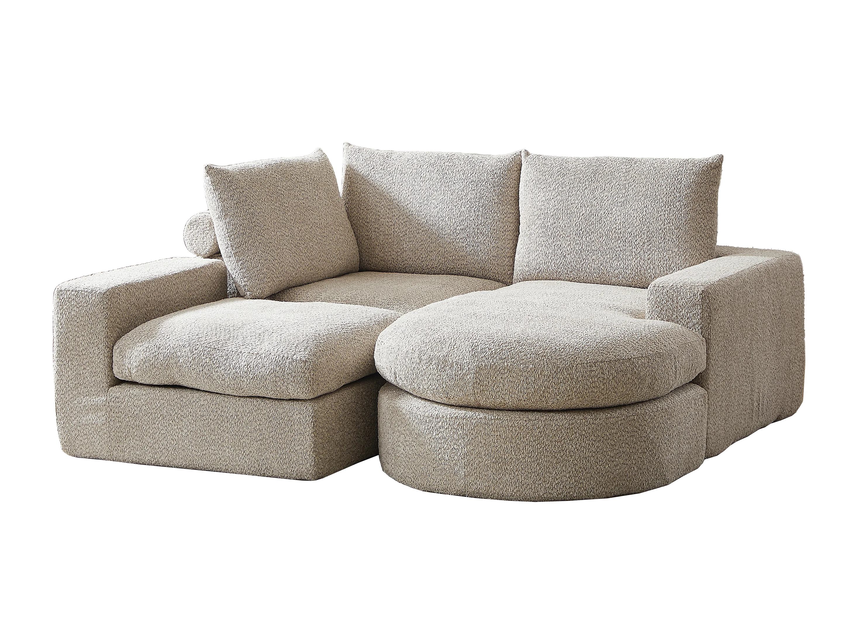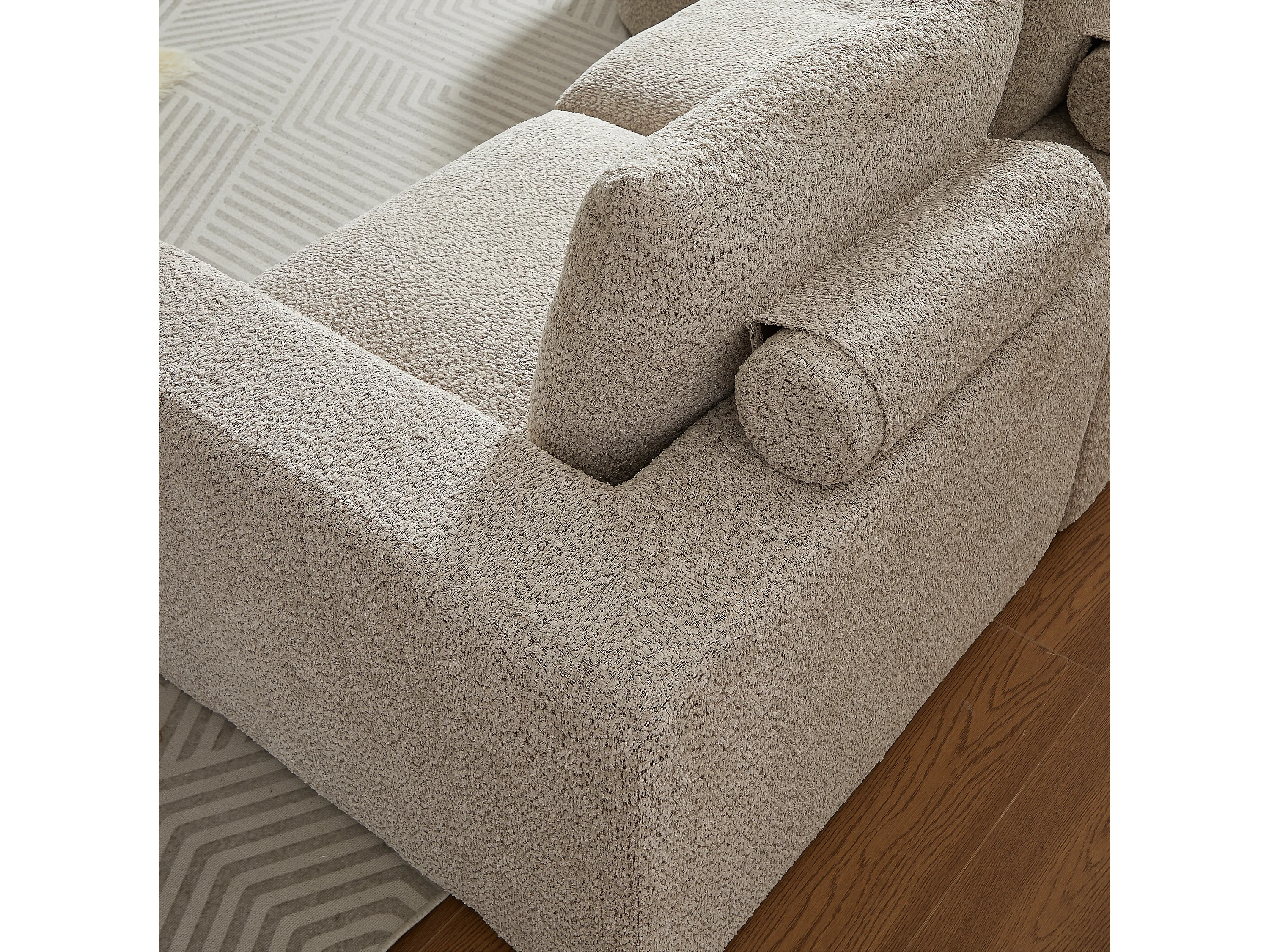 Canapé d'angle 3 places avec méridienne et 3 coussins - Tissu chenille beige