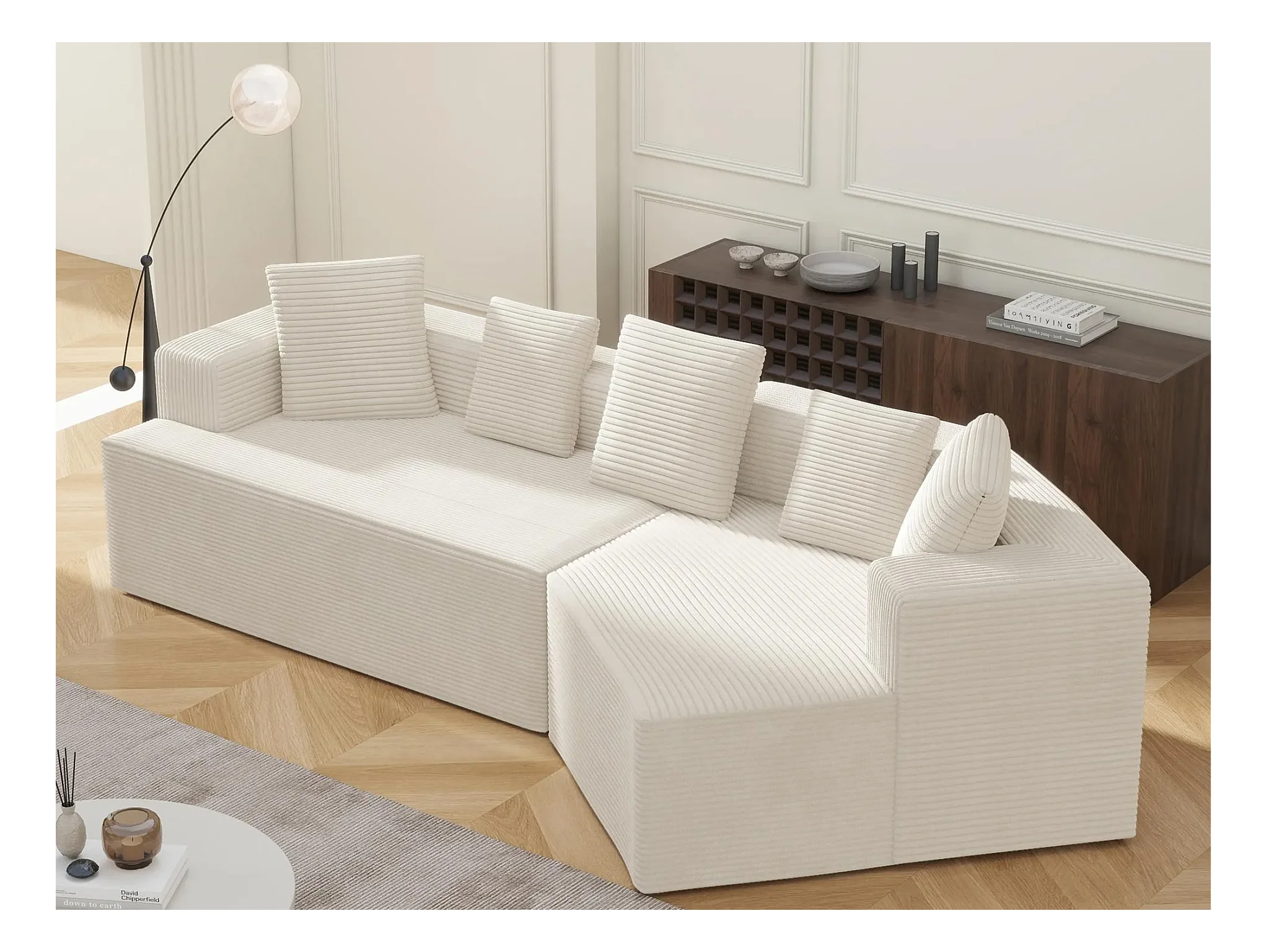 Canapé d'angle 3 places - Canapé modulable en velours côtelé blanc - idéal pour salon ou salle de lecture
