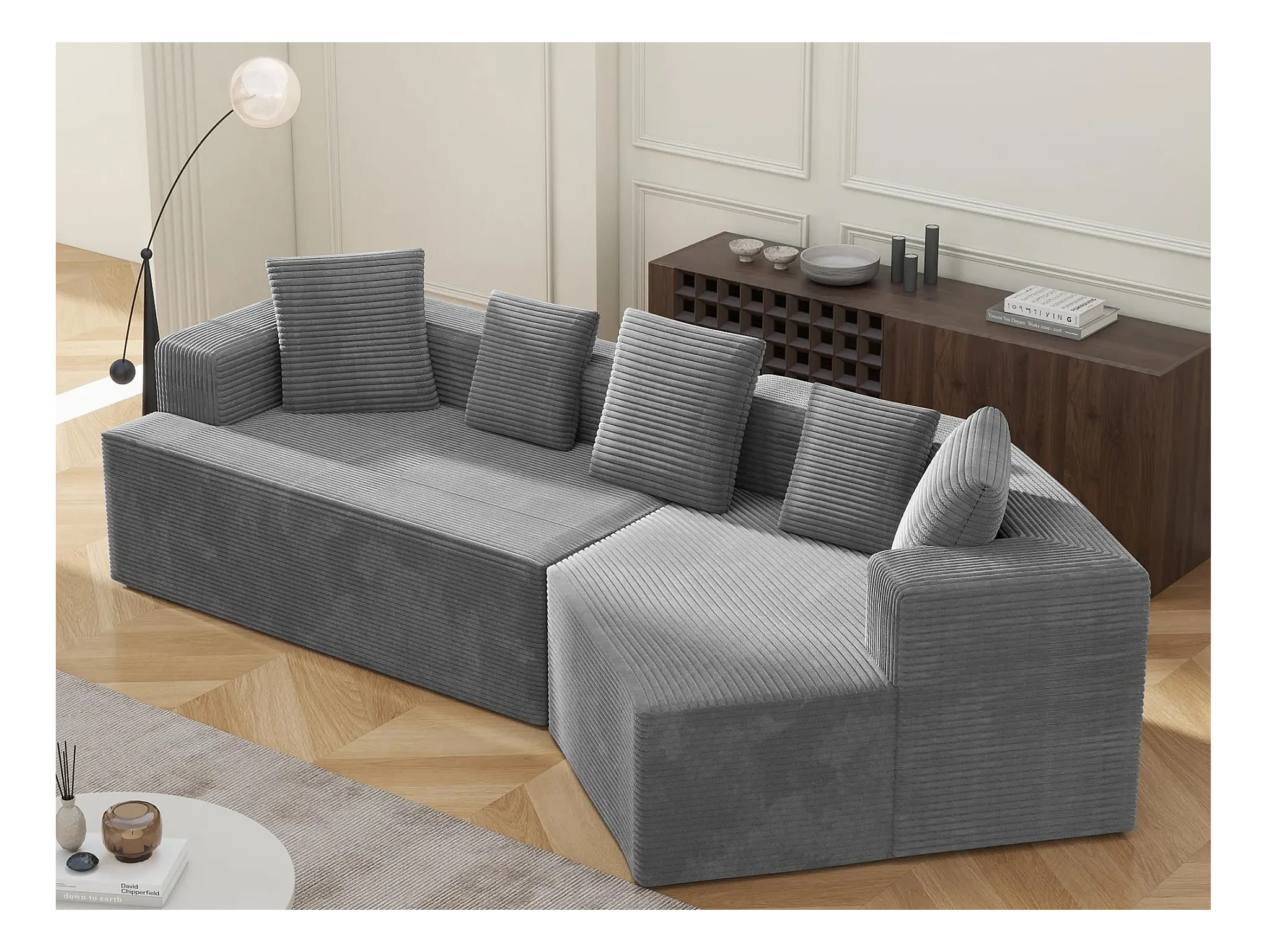 Canapé d'angle 3 places - Canapé modulable en velours côtelé gris - idéal pour salon ou salle de lecture