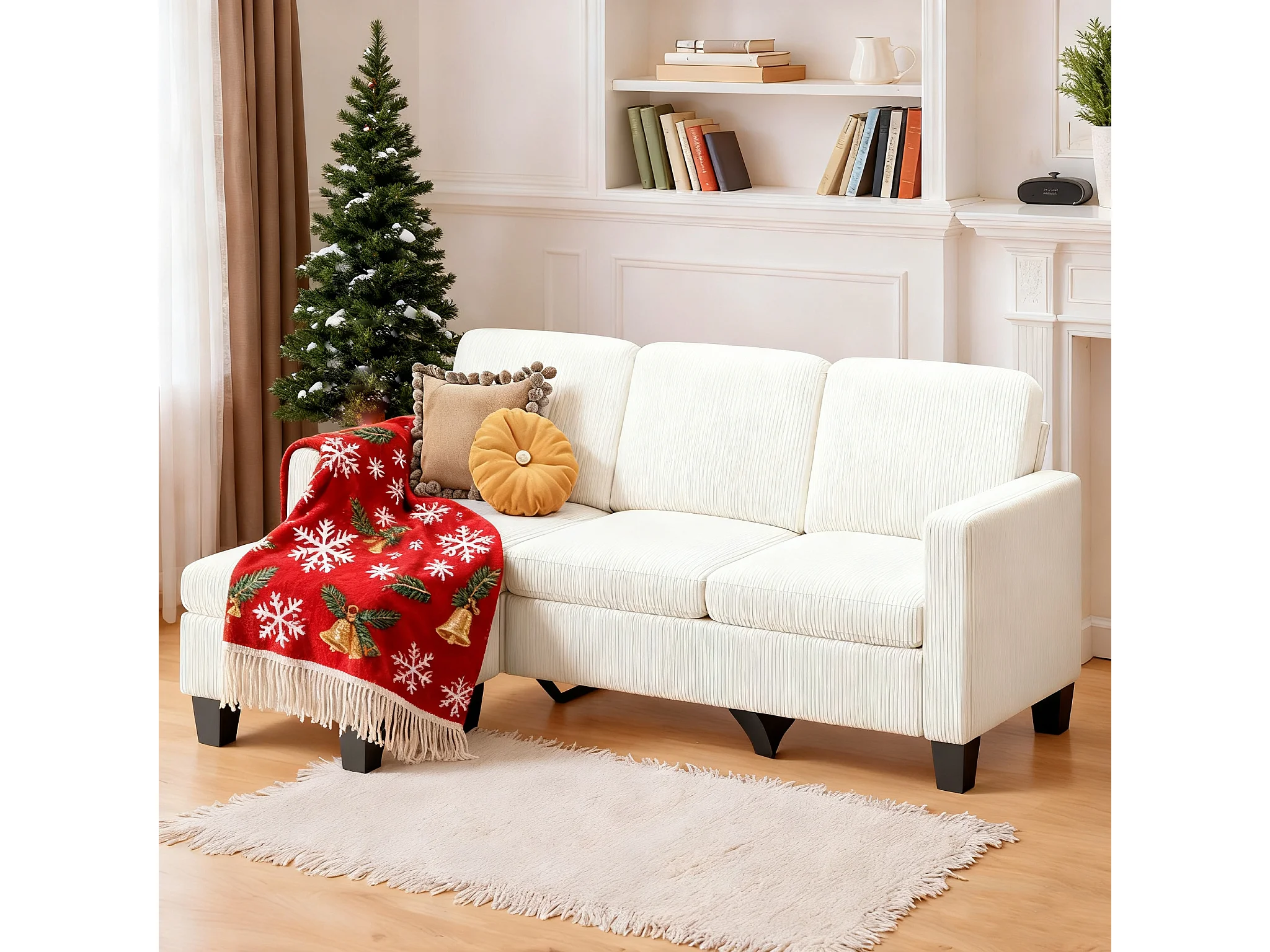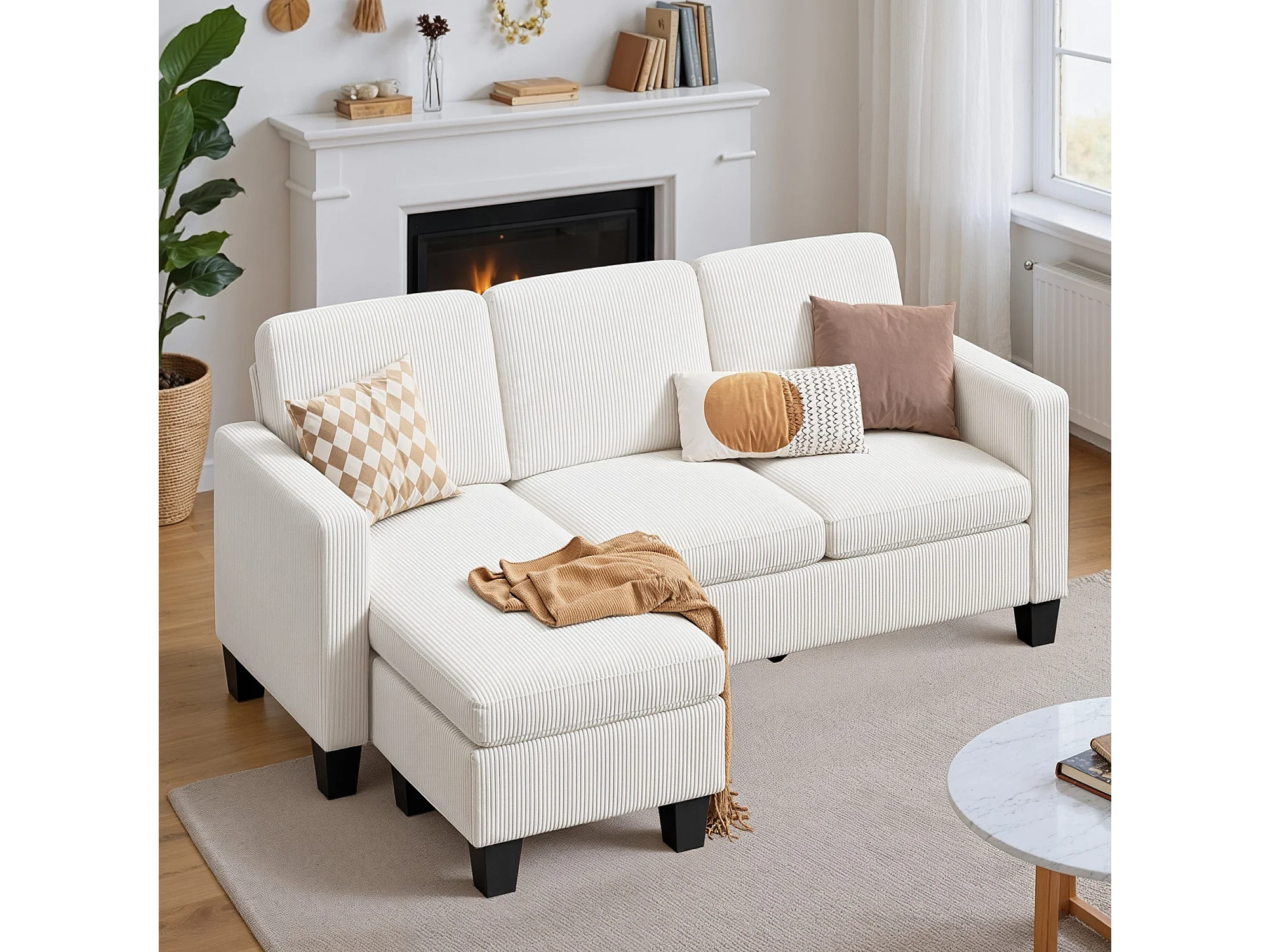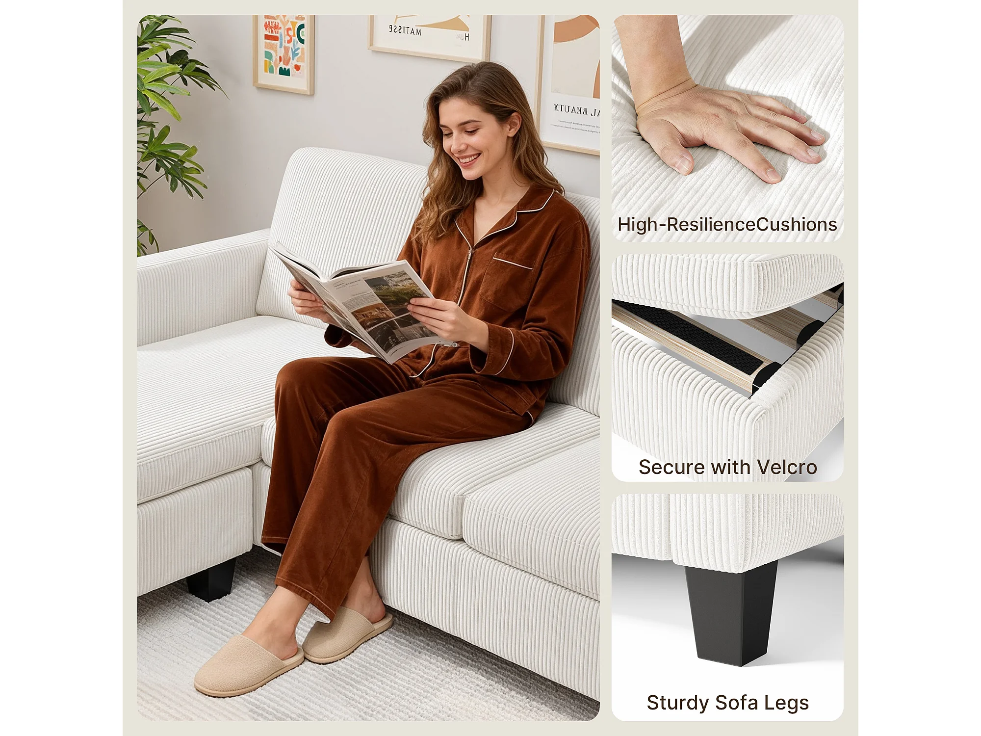 Canapé D’angle 3 Places Canapé modulable Velours Côtelé Beige