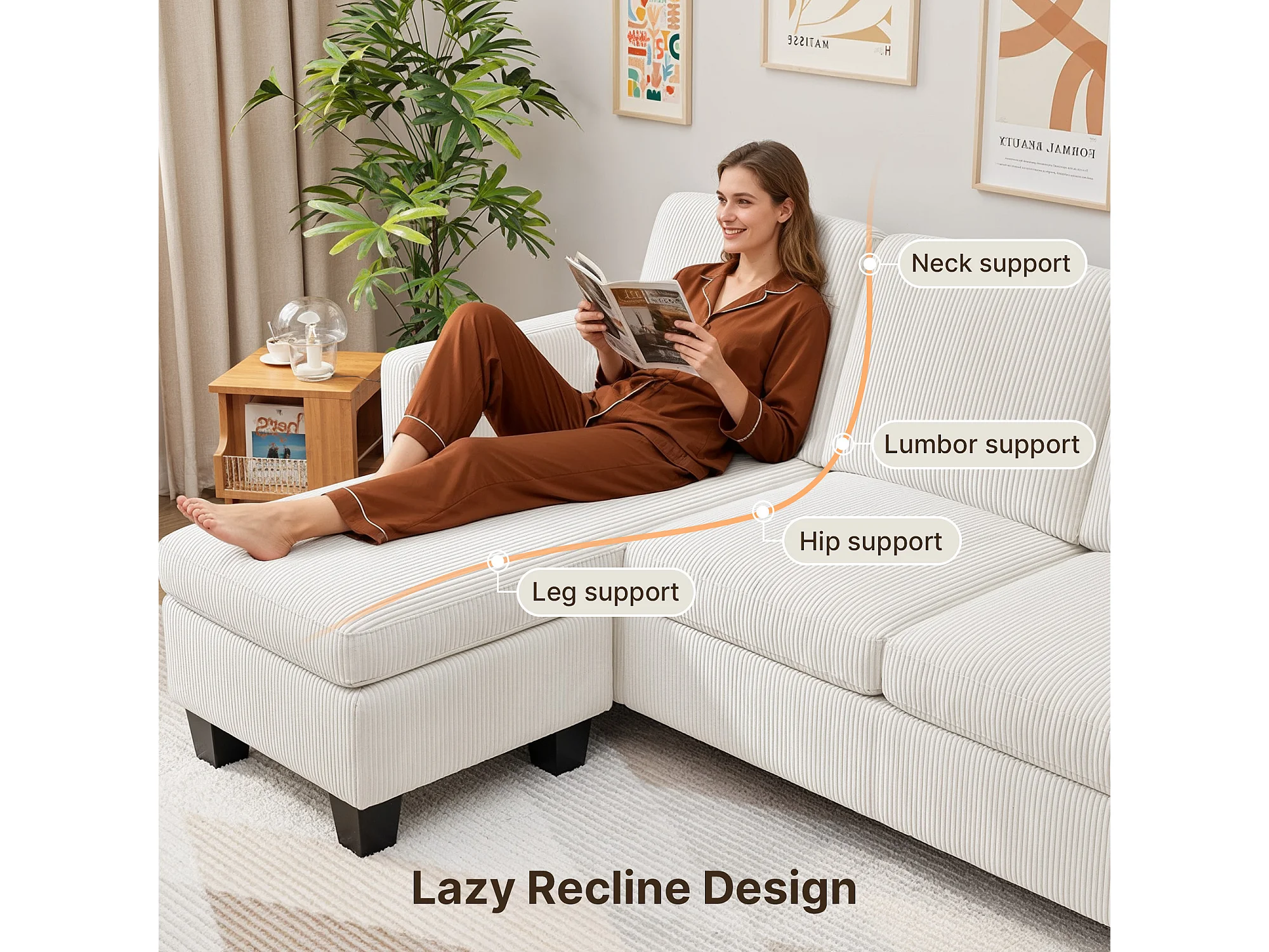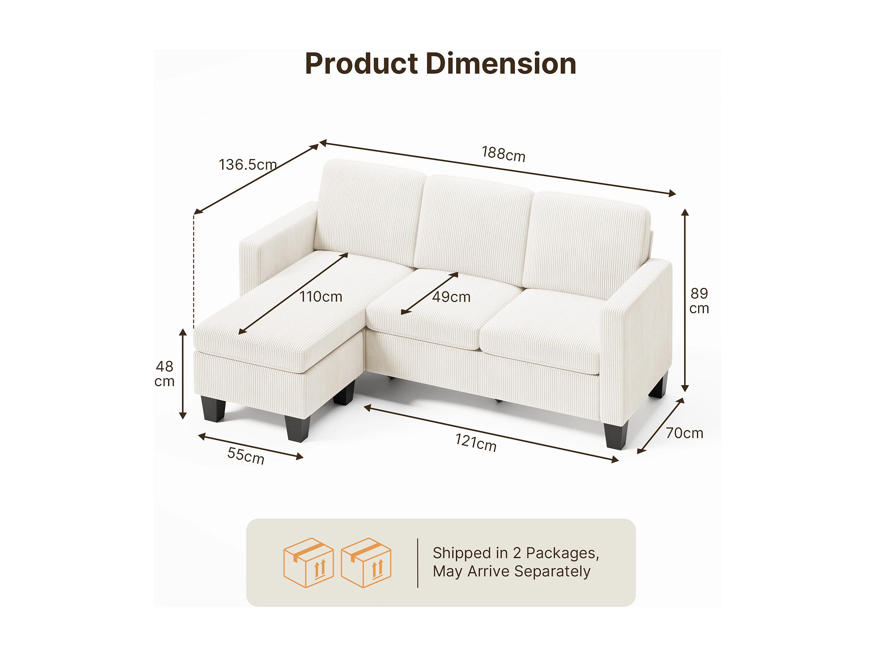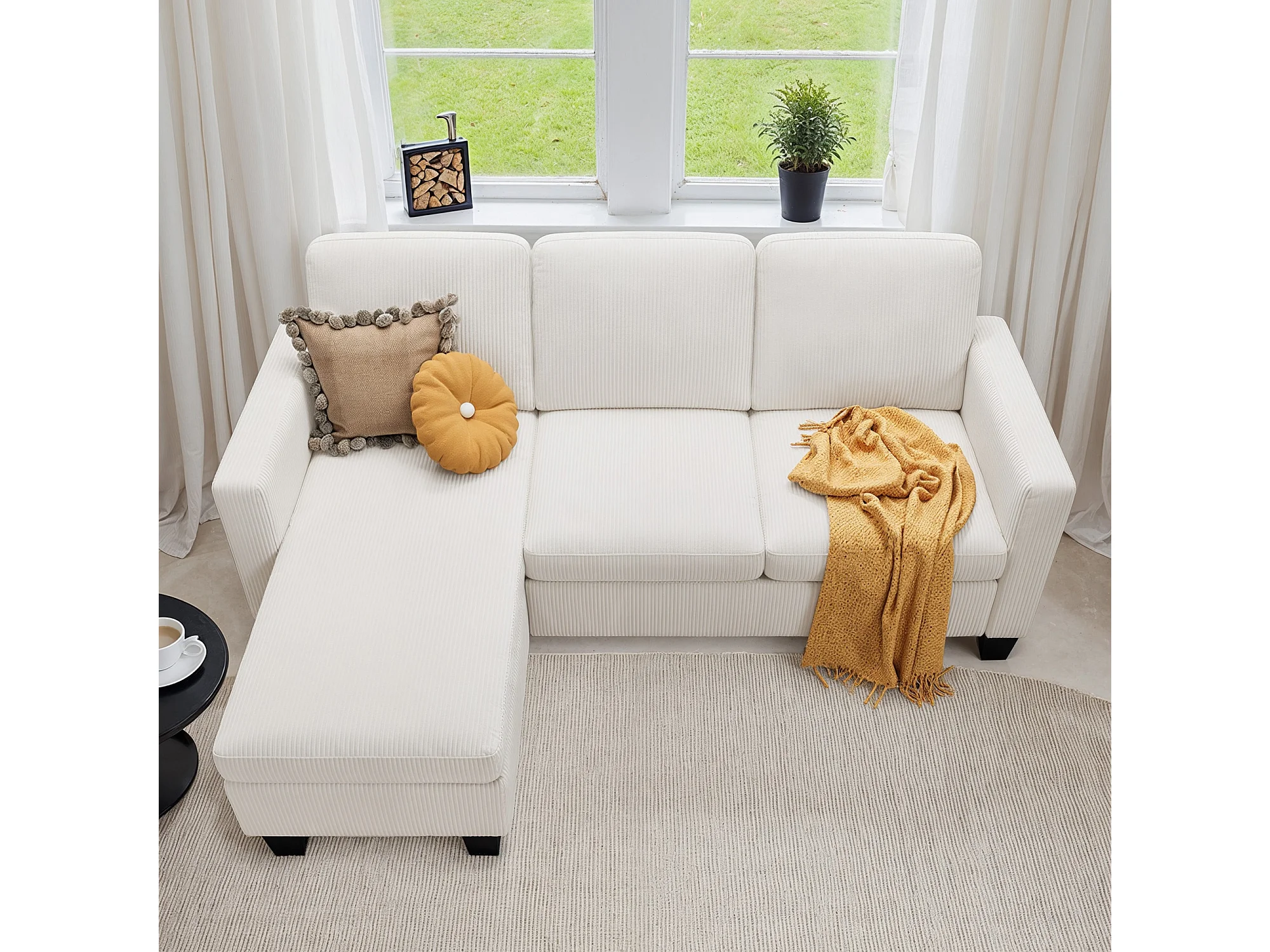 Canapé D’angle 3 Places Canapé modulable Velours Côtelé Beige