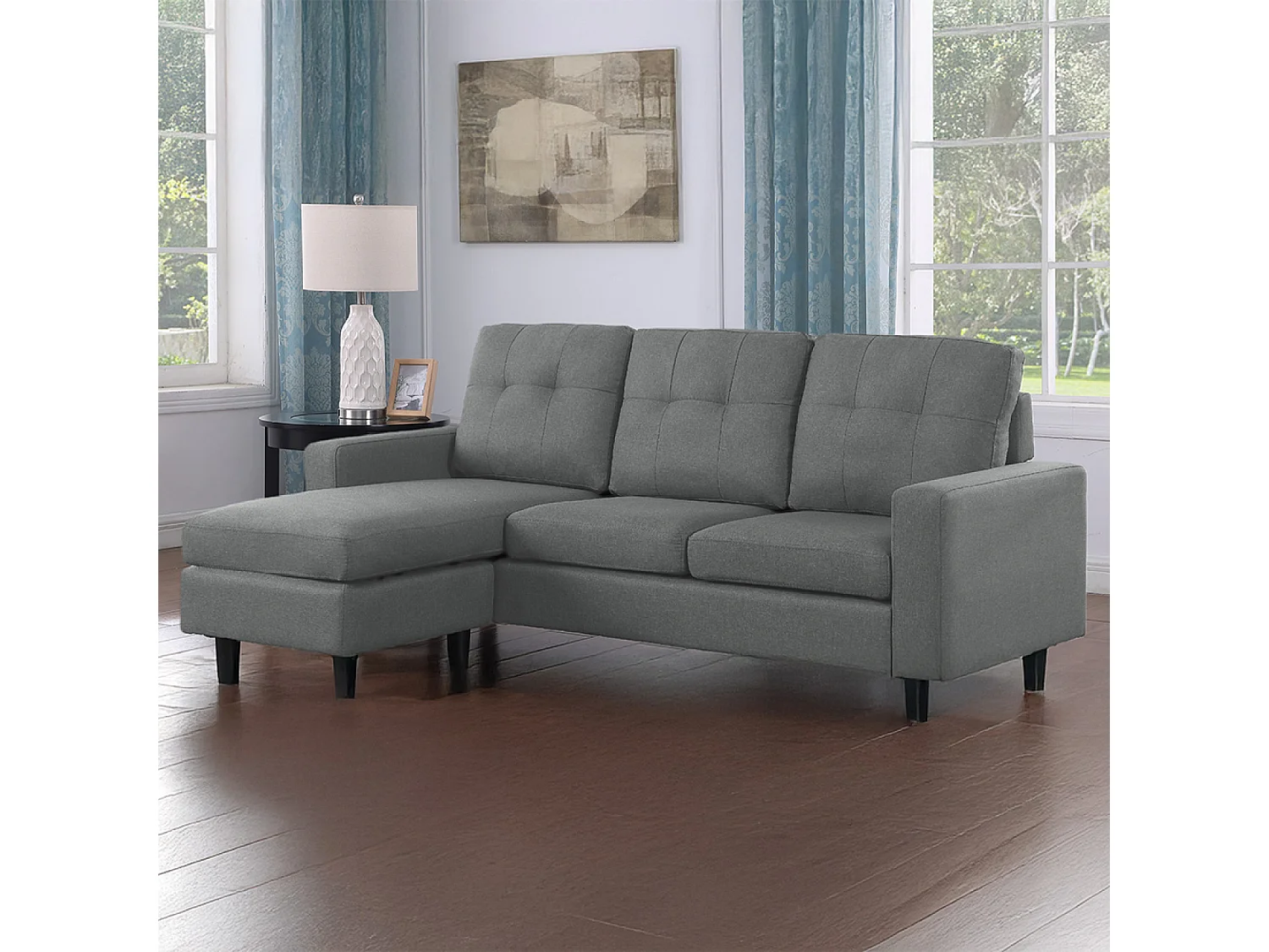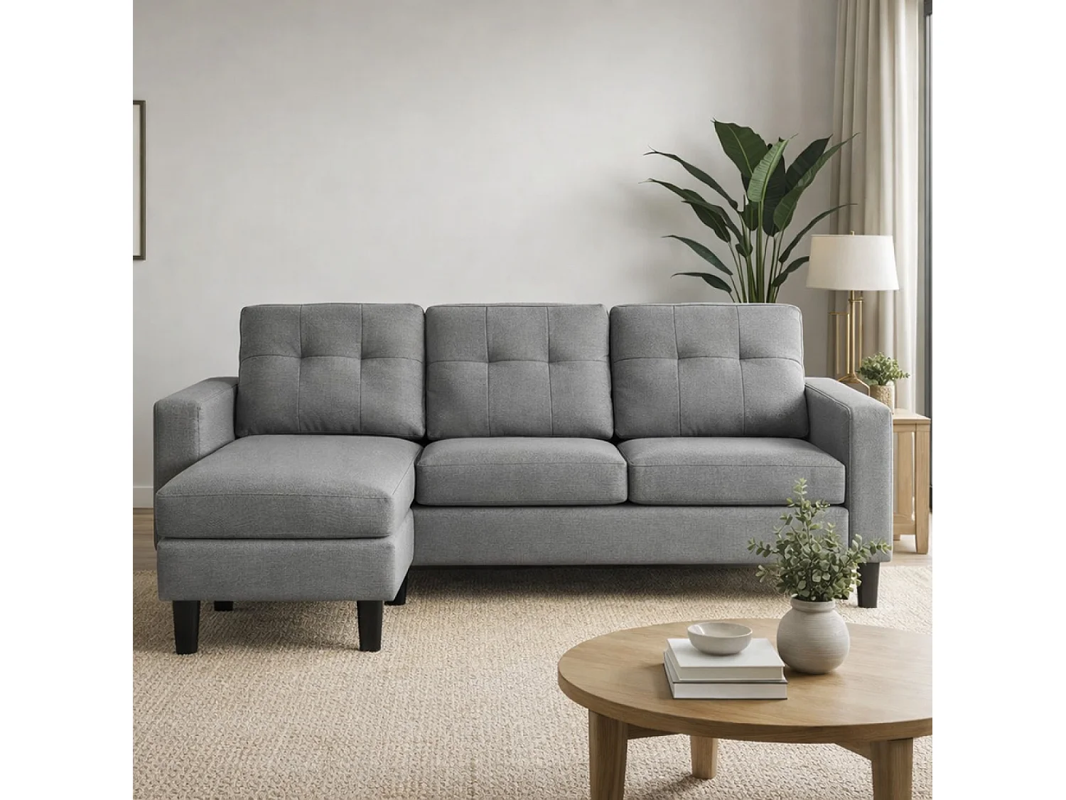 Canapé d'angle 3 places en tissu gris foncé BELFAST