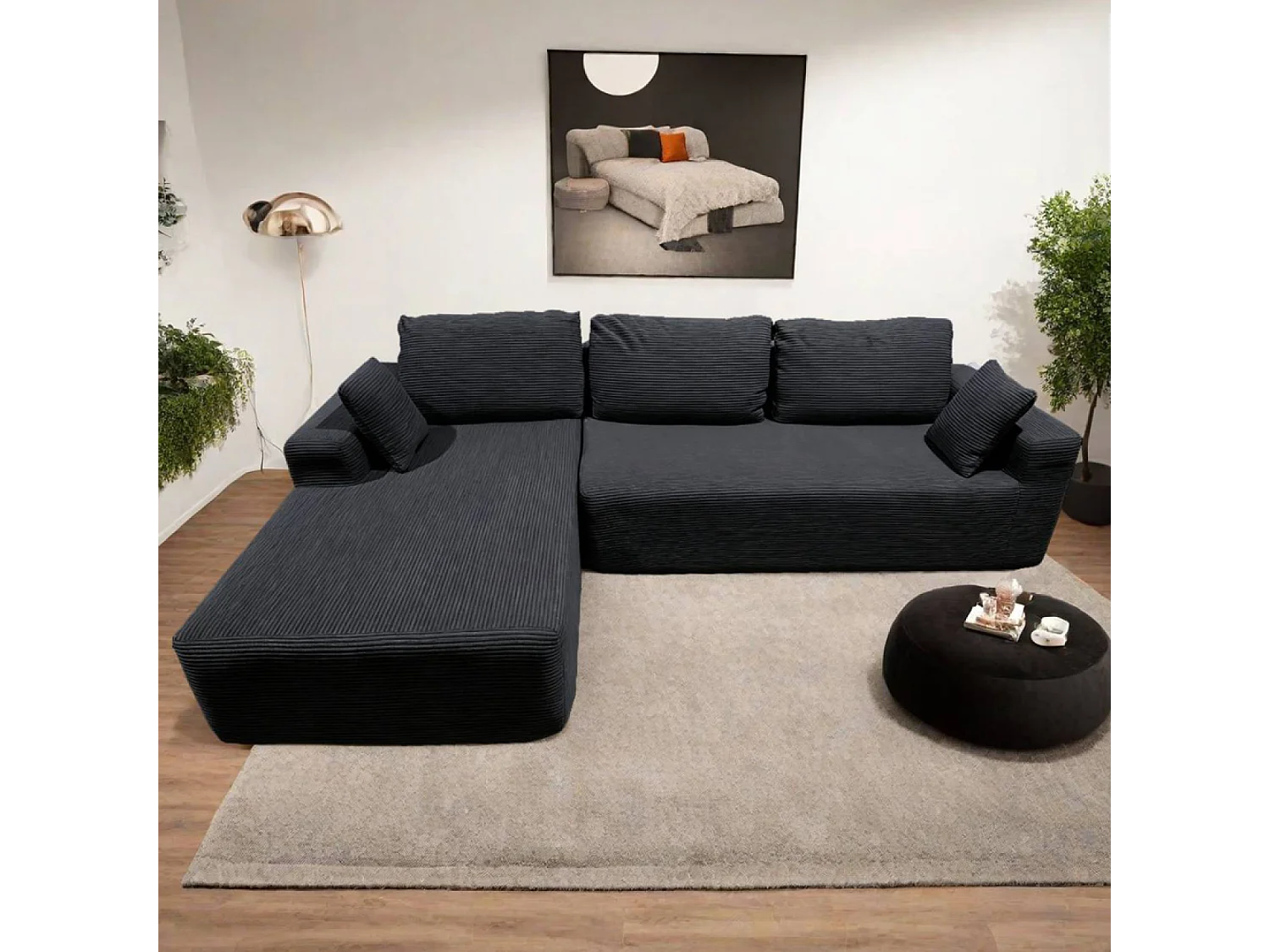 Canapé d'angle 3 places en velours côtelé gris anthracite HOVE