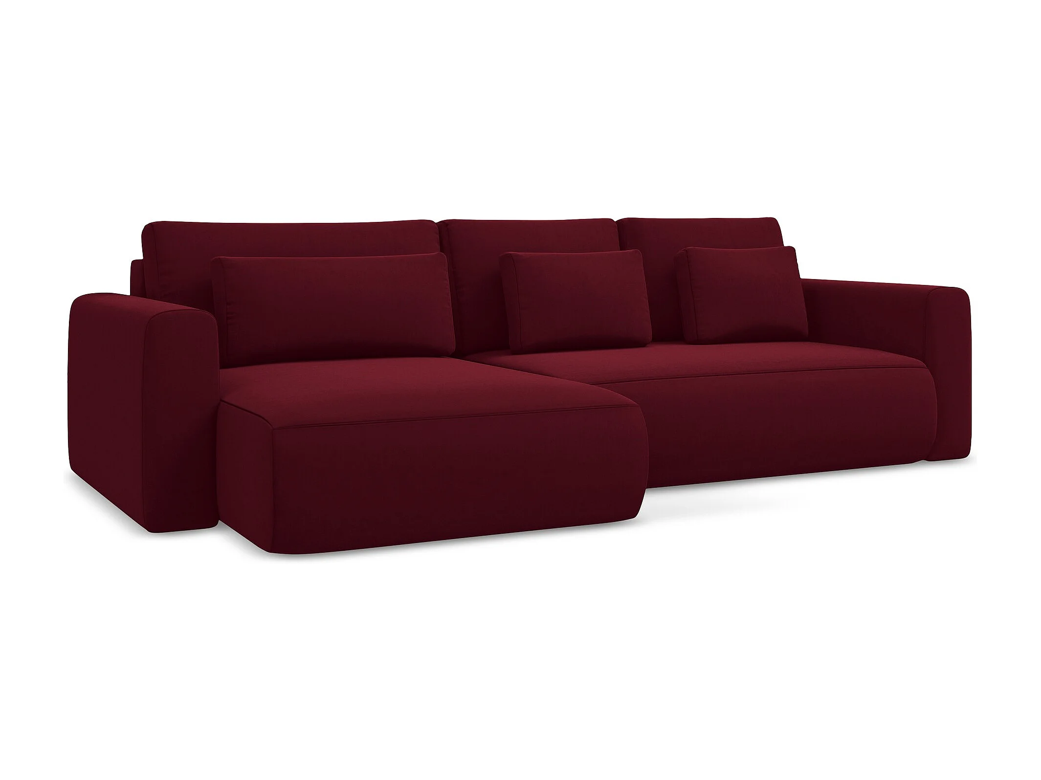 Canapé d’angle 3 places gauche convertible en velours - bourgogne - KAPUA