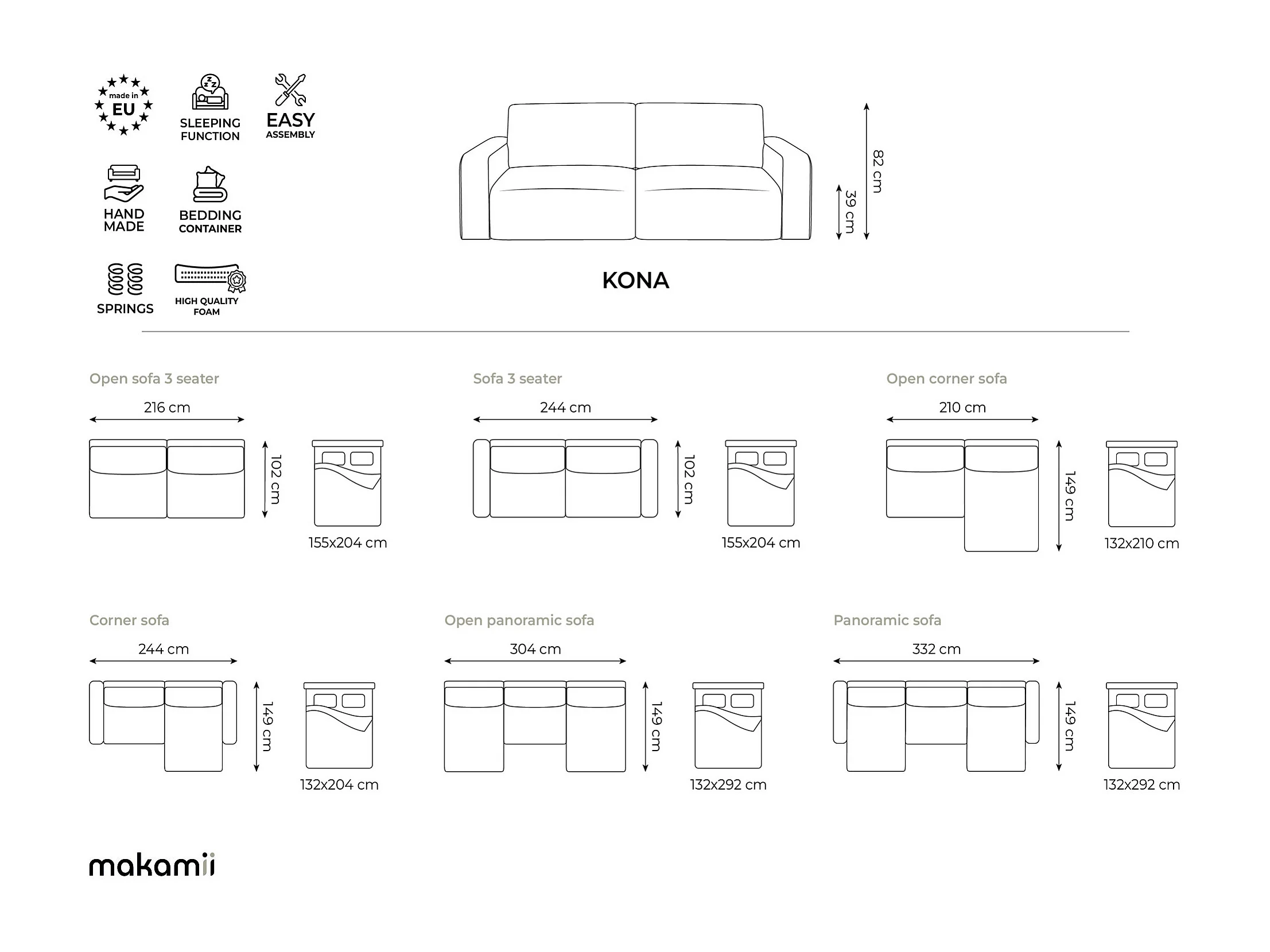Canapé d’angle 3 places gauche sans accoudoir convertible en Chenille - beige clair - KONA