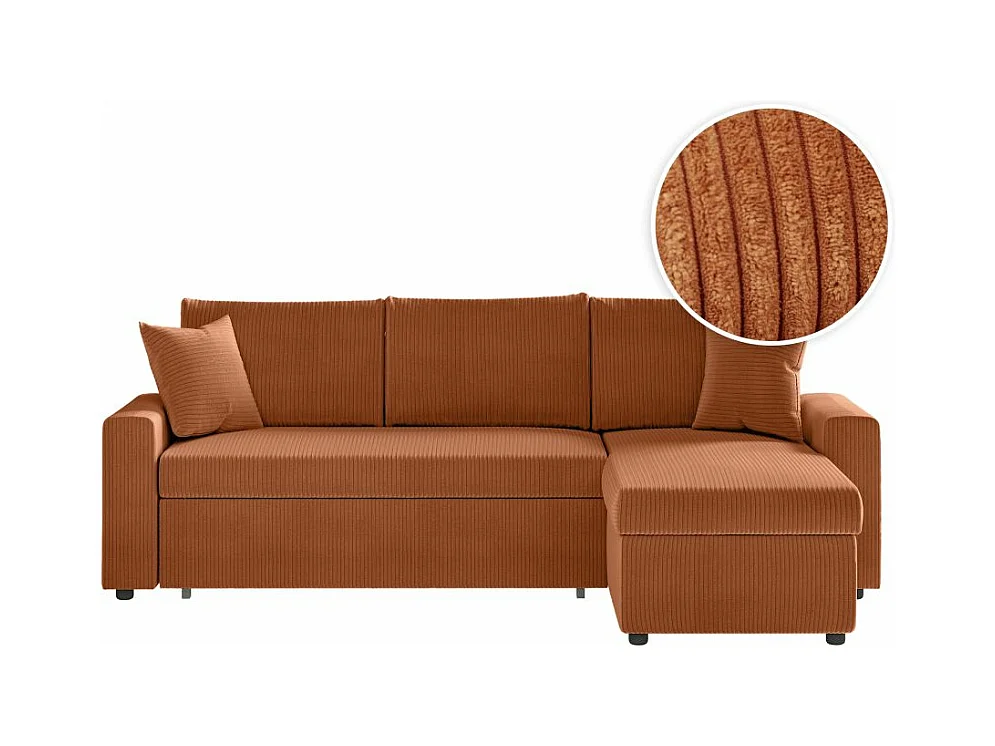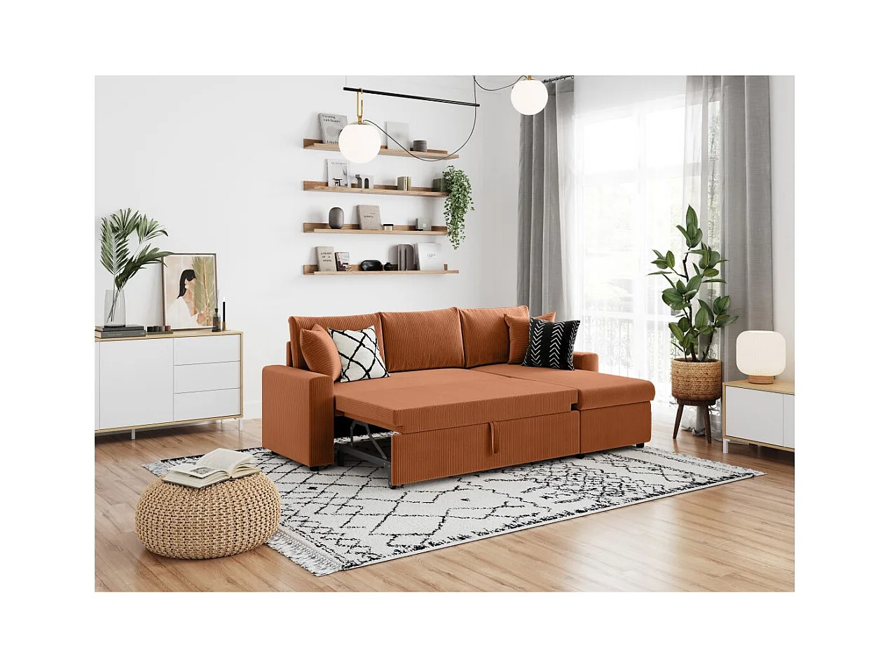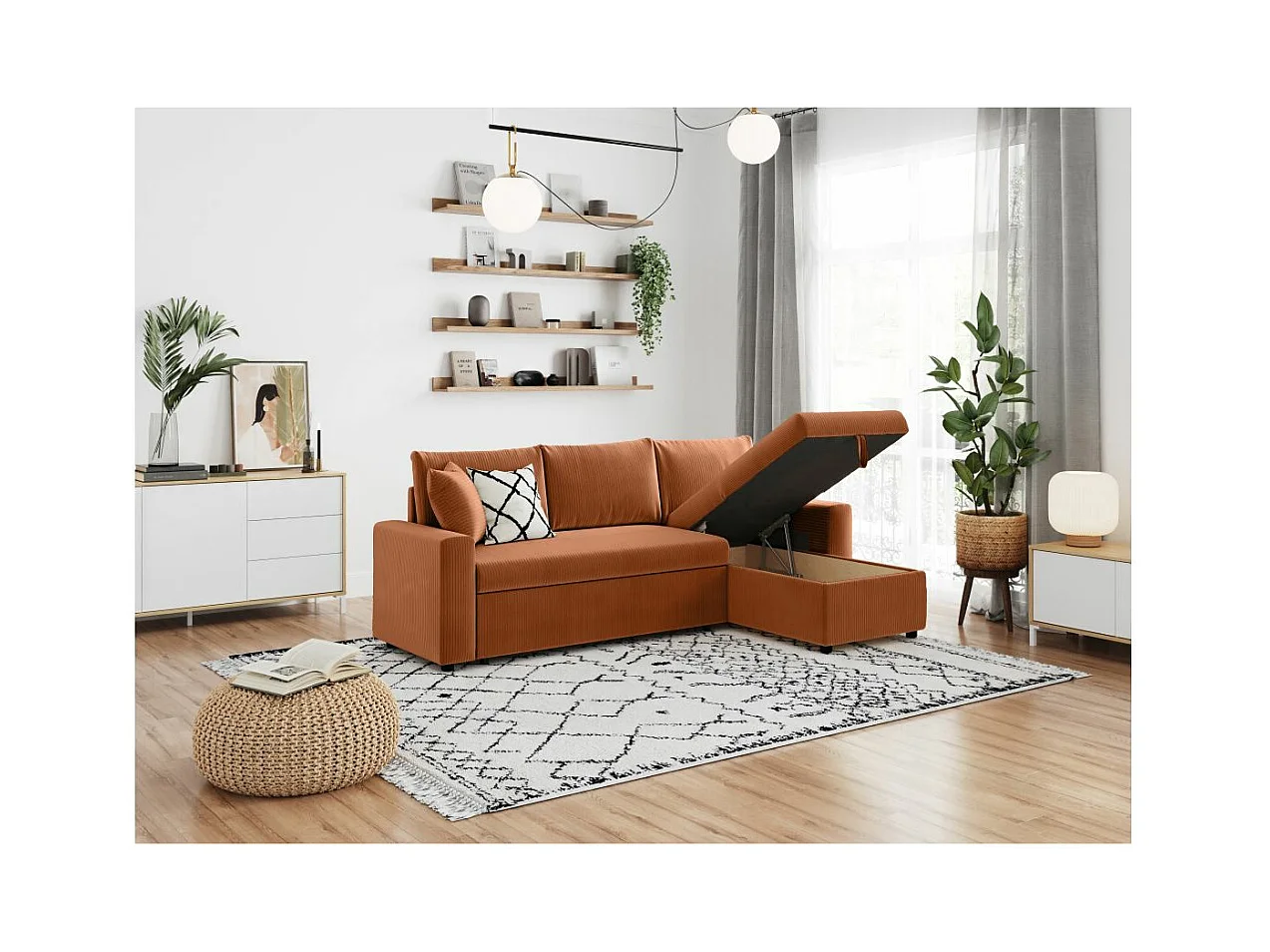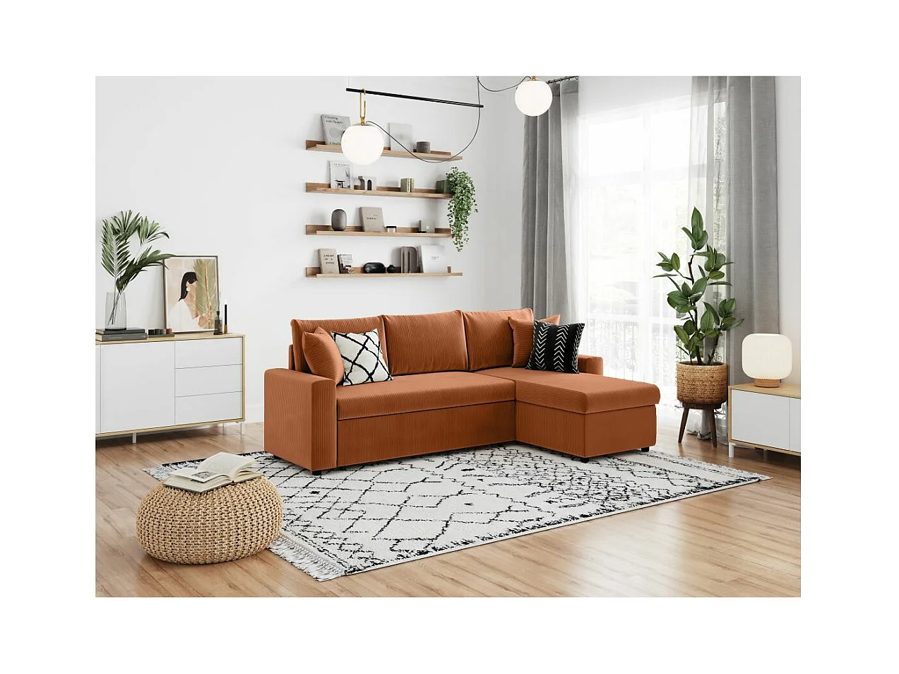Canapé d'angle 3 places Maria réversible, convertible avec coffre en velours côtelé - Terracotta - L227 x P146 x H81cm - Loungitude