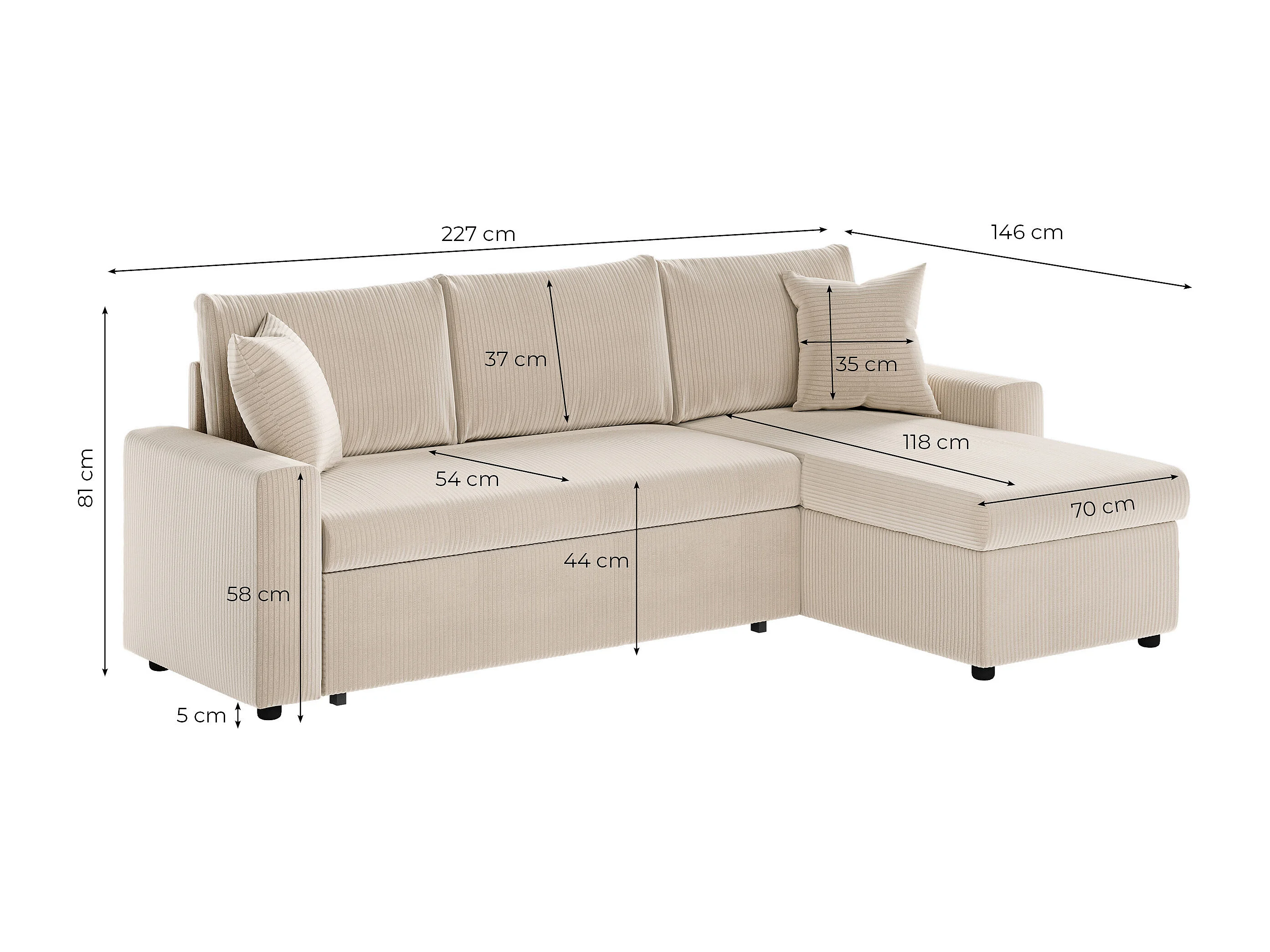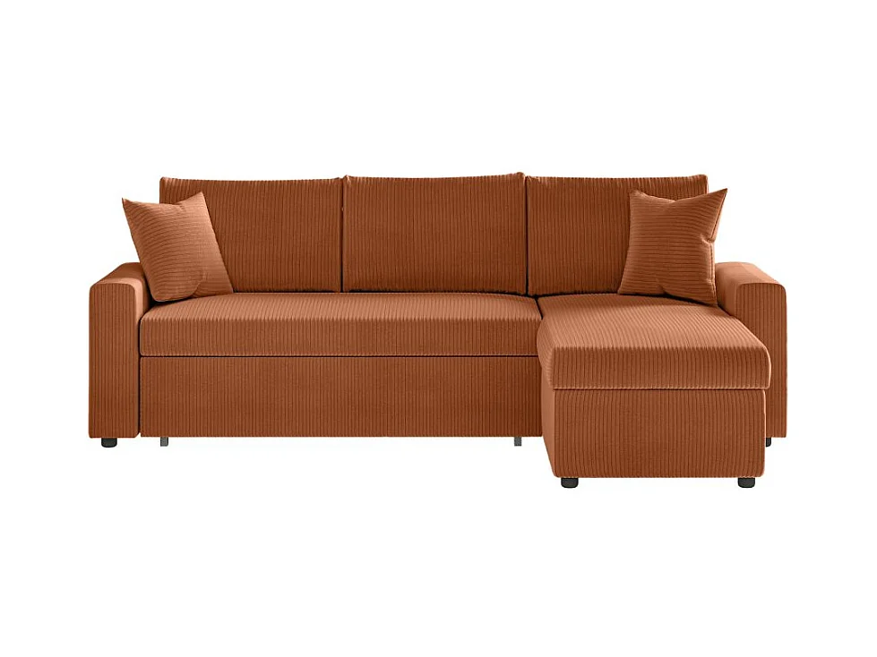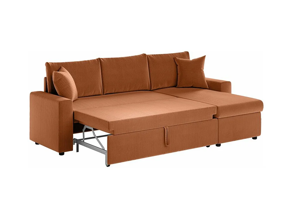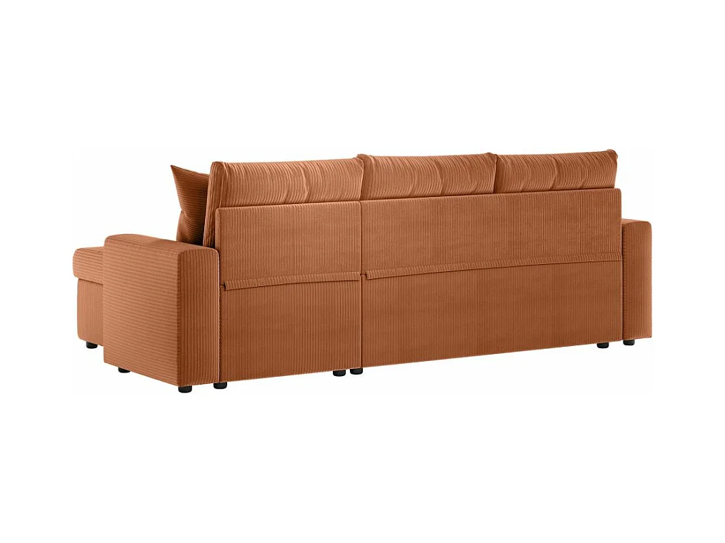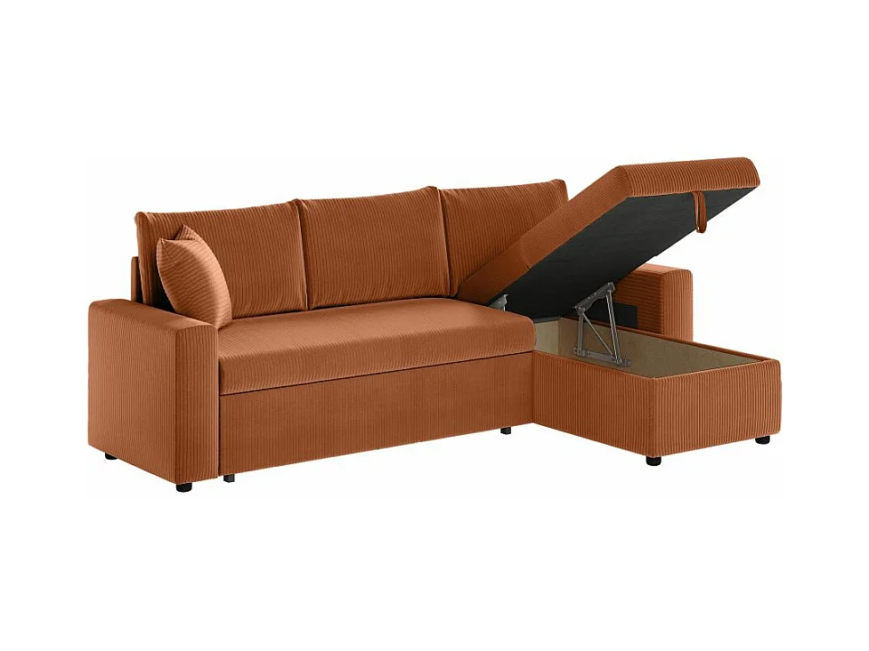 Canapé d'angle 3 places Maria réversible, convertible avec coffre en velours côtelé - Terracotta - L227 x P146 x H81cm - Loungitude