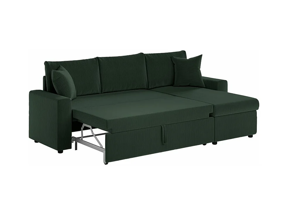 Canapé d'angle 3 places Maria réversible, convertible avec coffre en velours côtelé - Vert foncé - L227 x P146 x H81cm - Loungitude