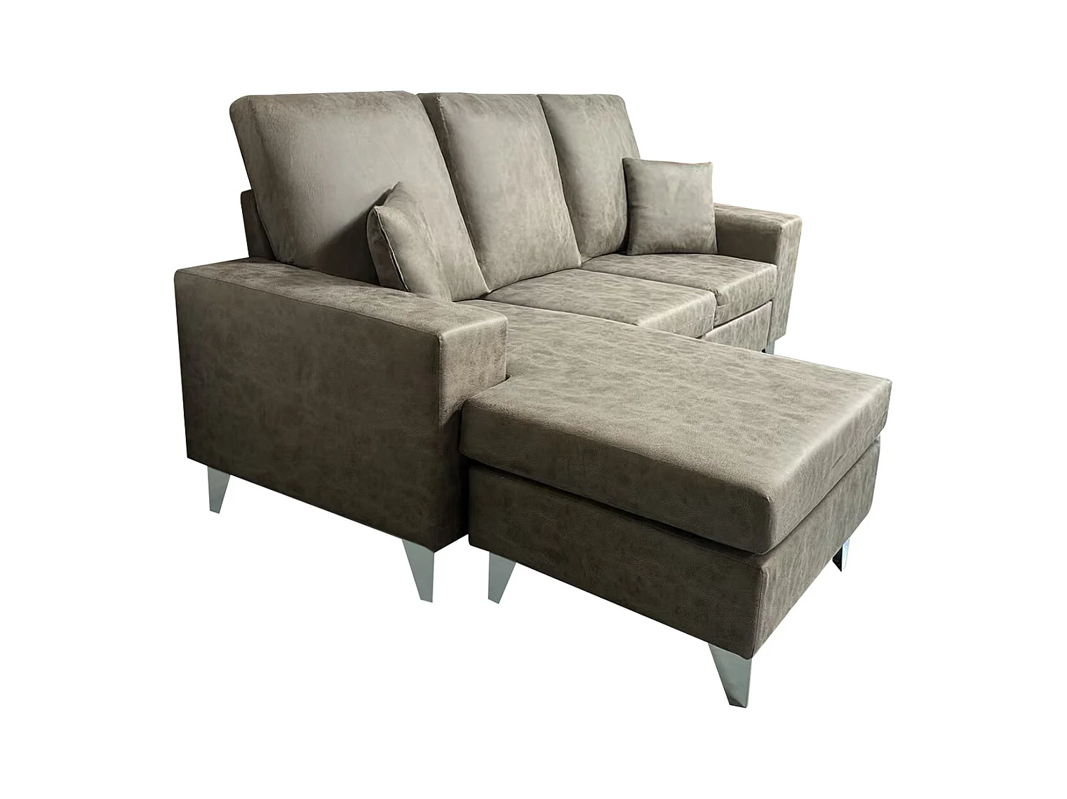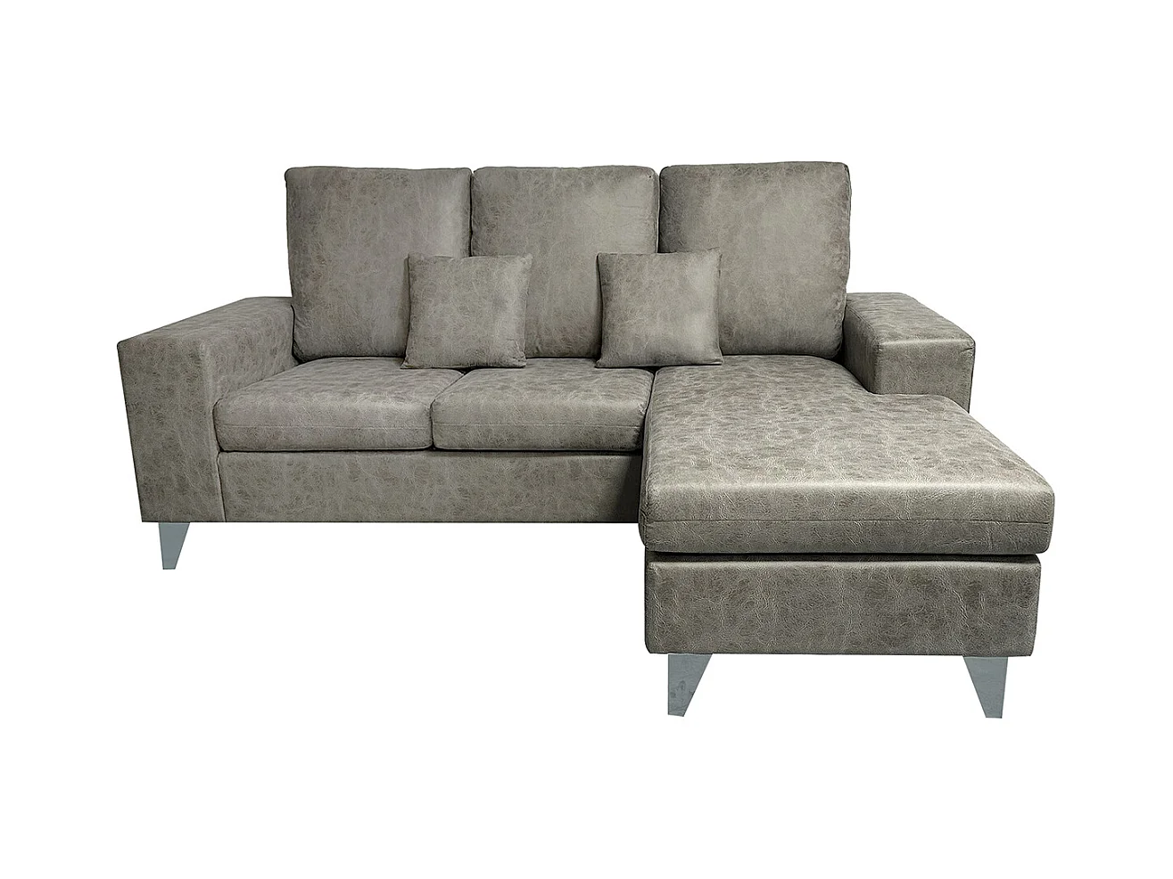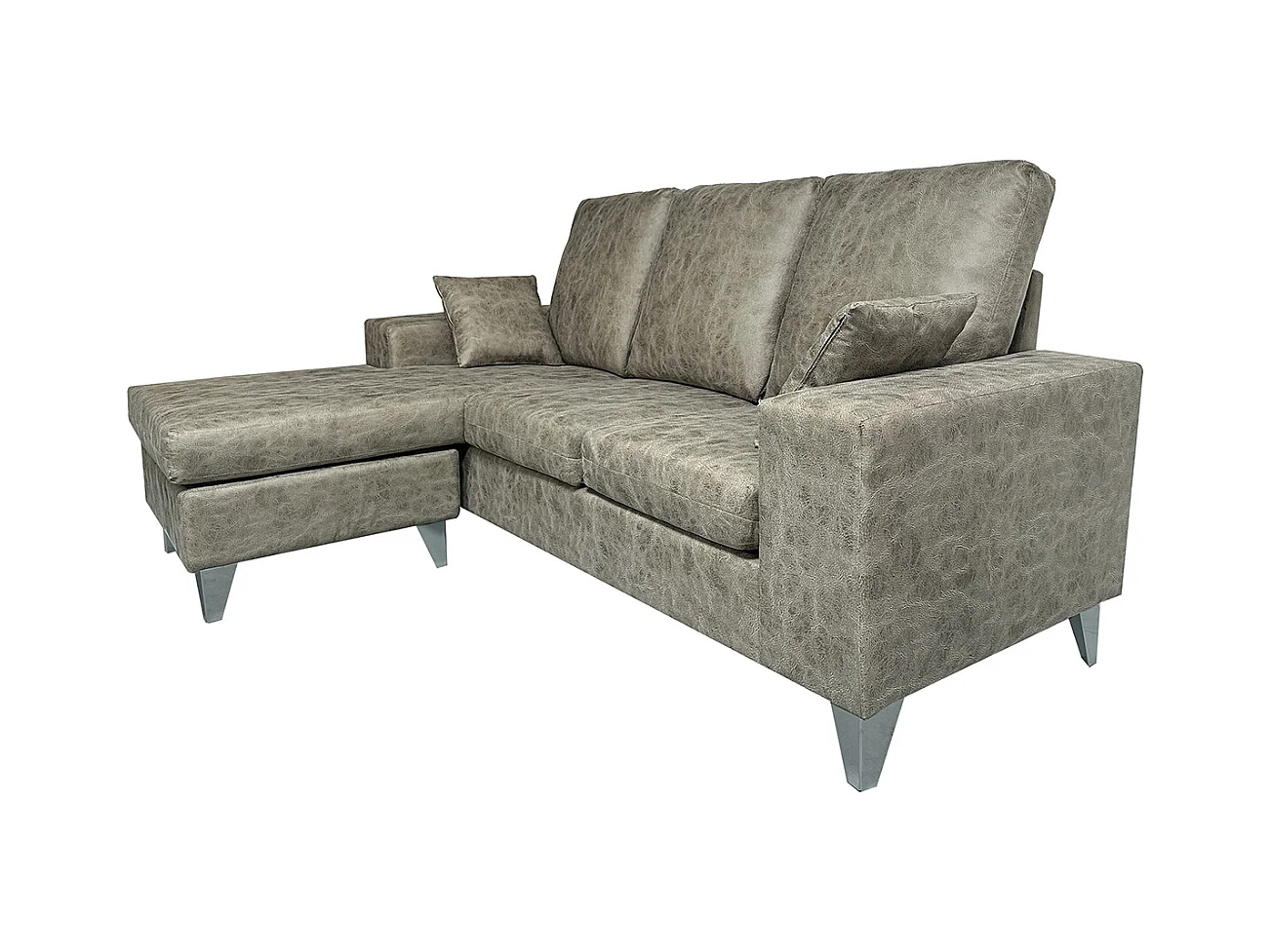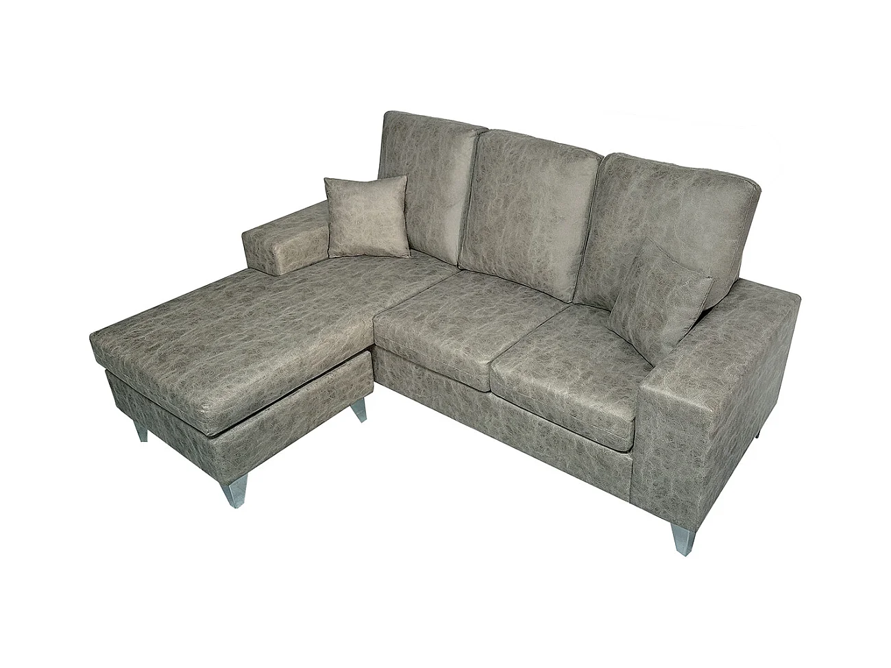 Canapé d'angle 3 places réversible en simili-cuir coloris gris - Longueur 200 x profondeur 144 x hauteur 99 cm