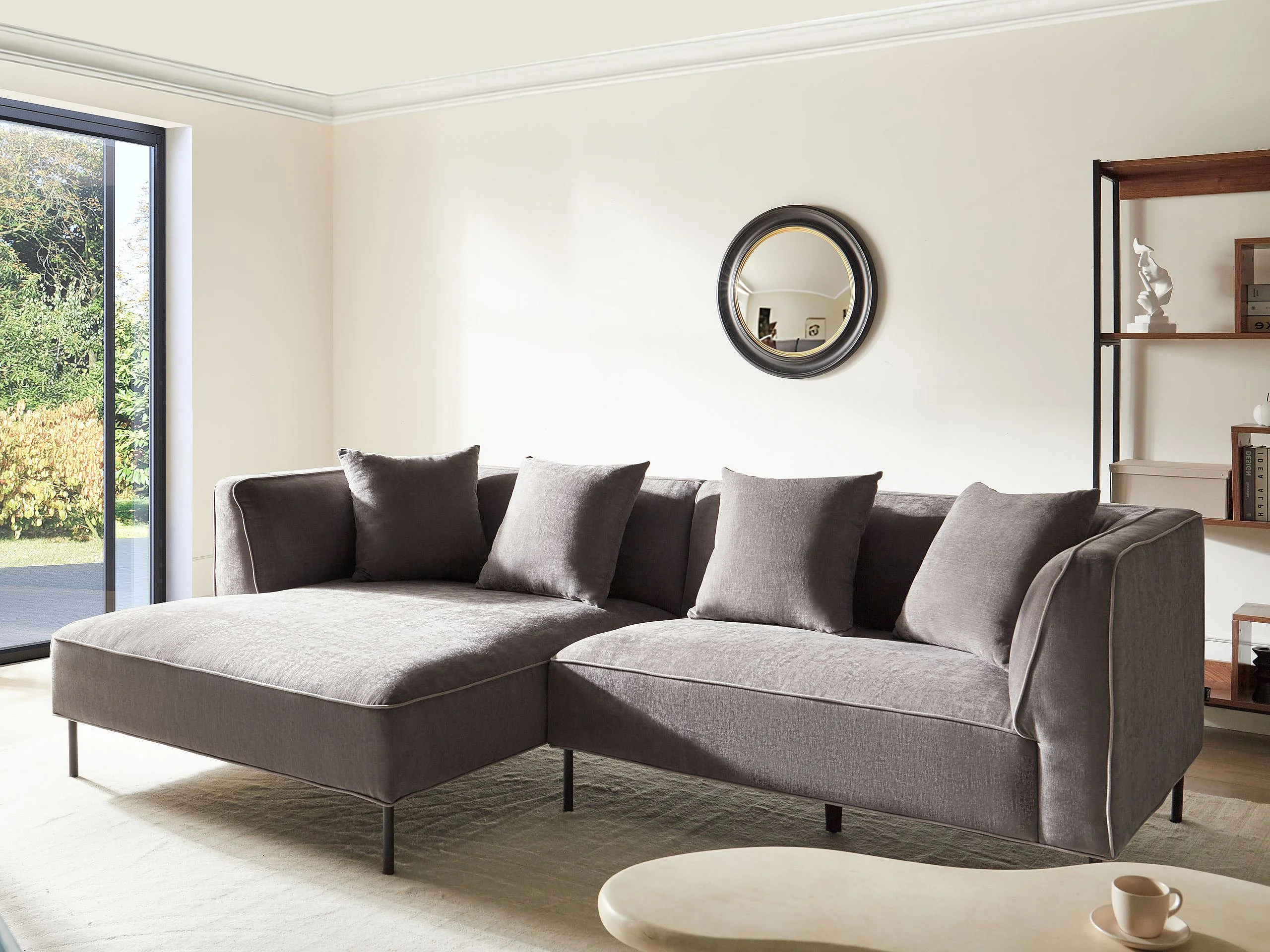 Canapé d'angle 3 places SATER Tissu chenille Taupe Côté droit