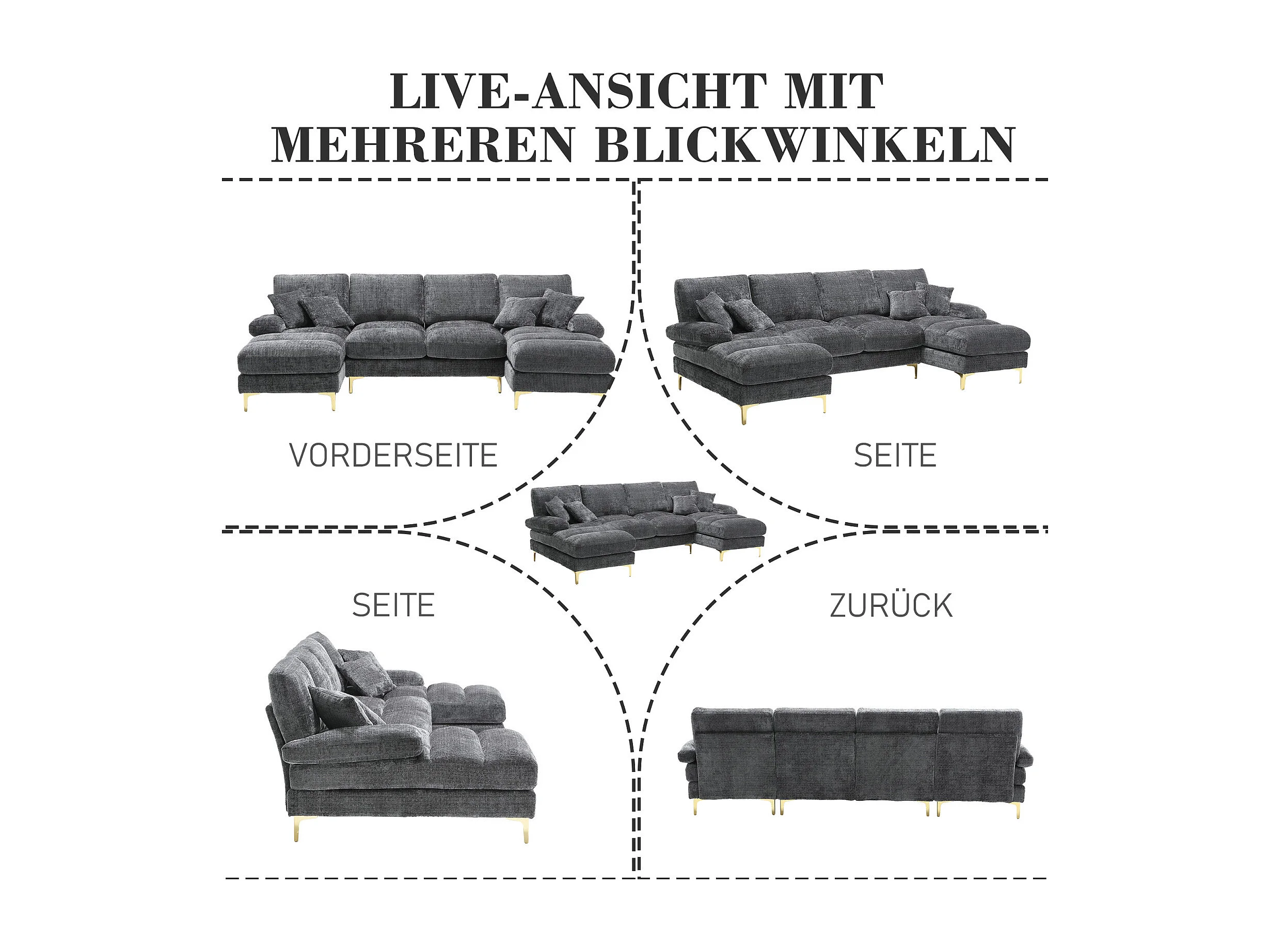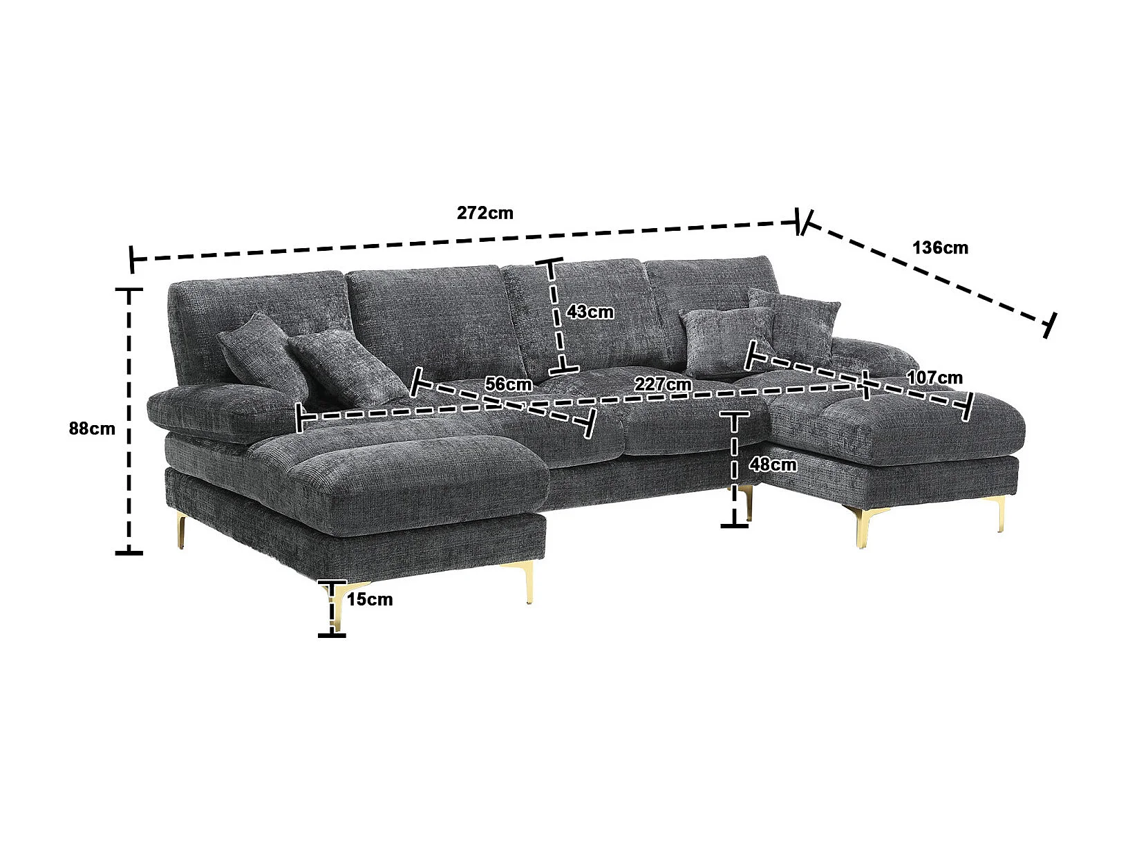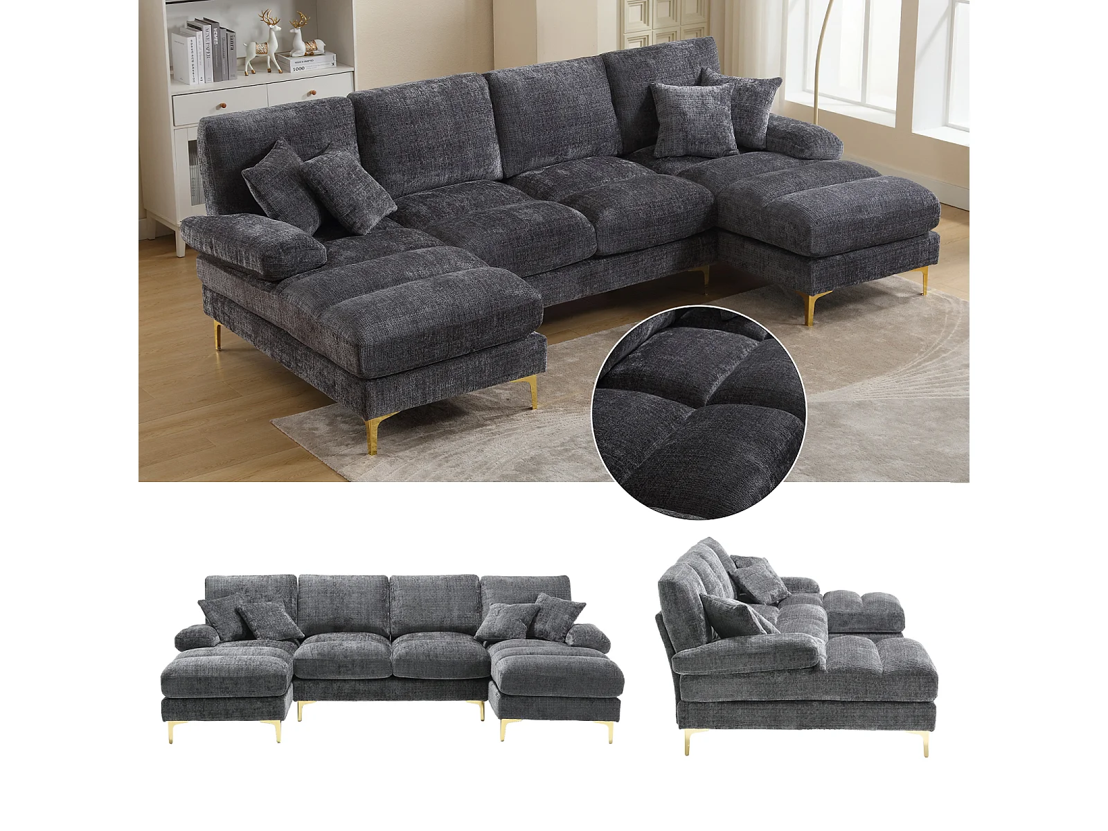 Canapé d'angle 4 places, 272x136x88cm,Grand canapé en forme de U, moderne, en tissu chenille, gris