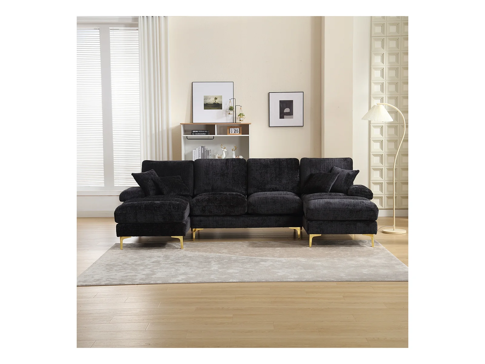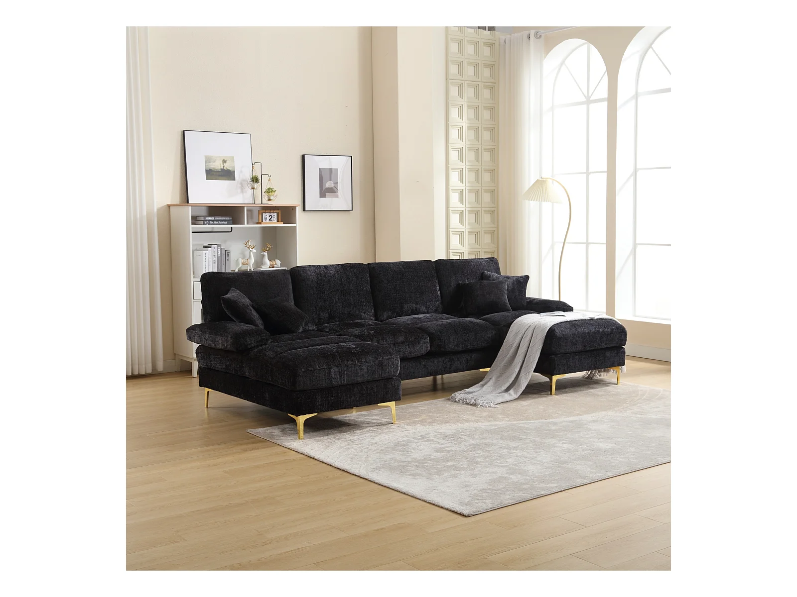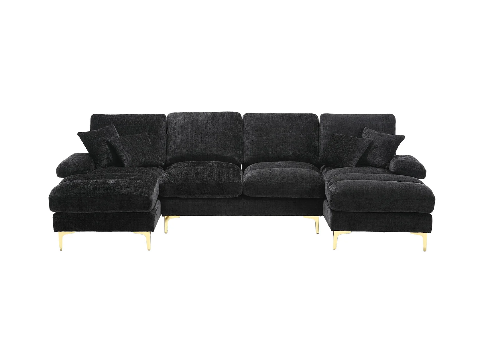 Canapé d'angle 4 places, 272x136x88cm,Grand canapé en forme de U, moderne, en tissu chenille, noir