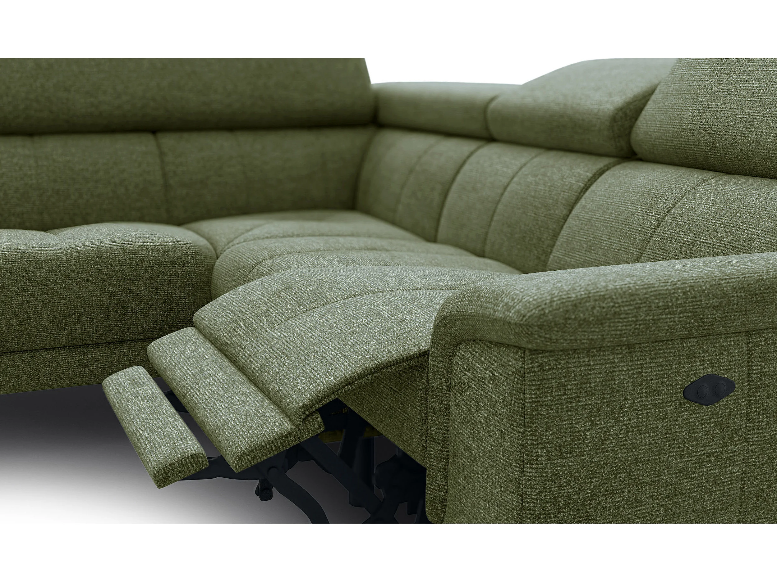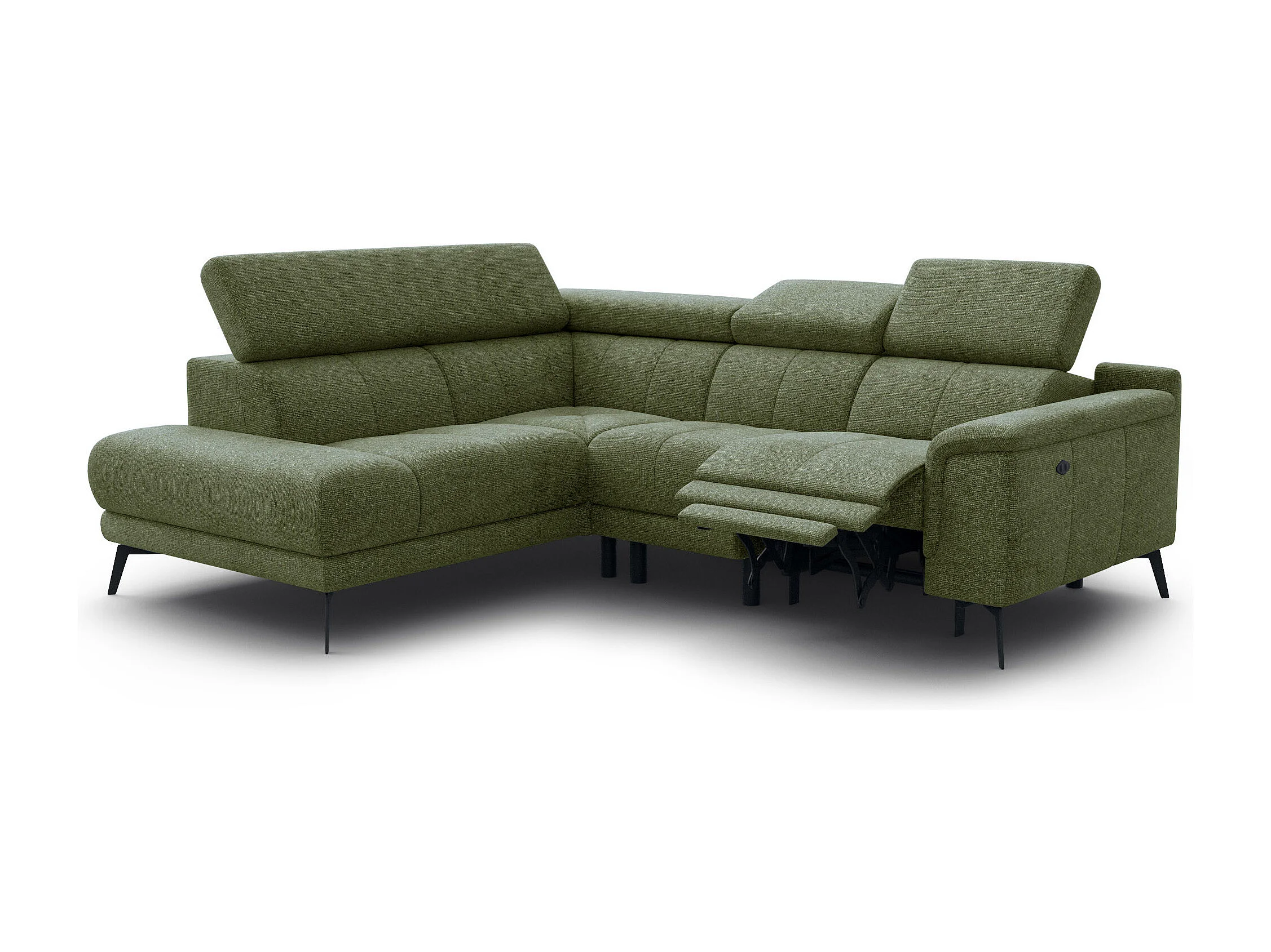 Canapé d'angle 4 places avec 1 relax électrique tissu olive - FIERO