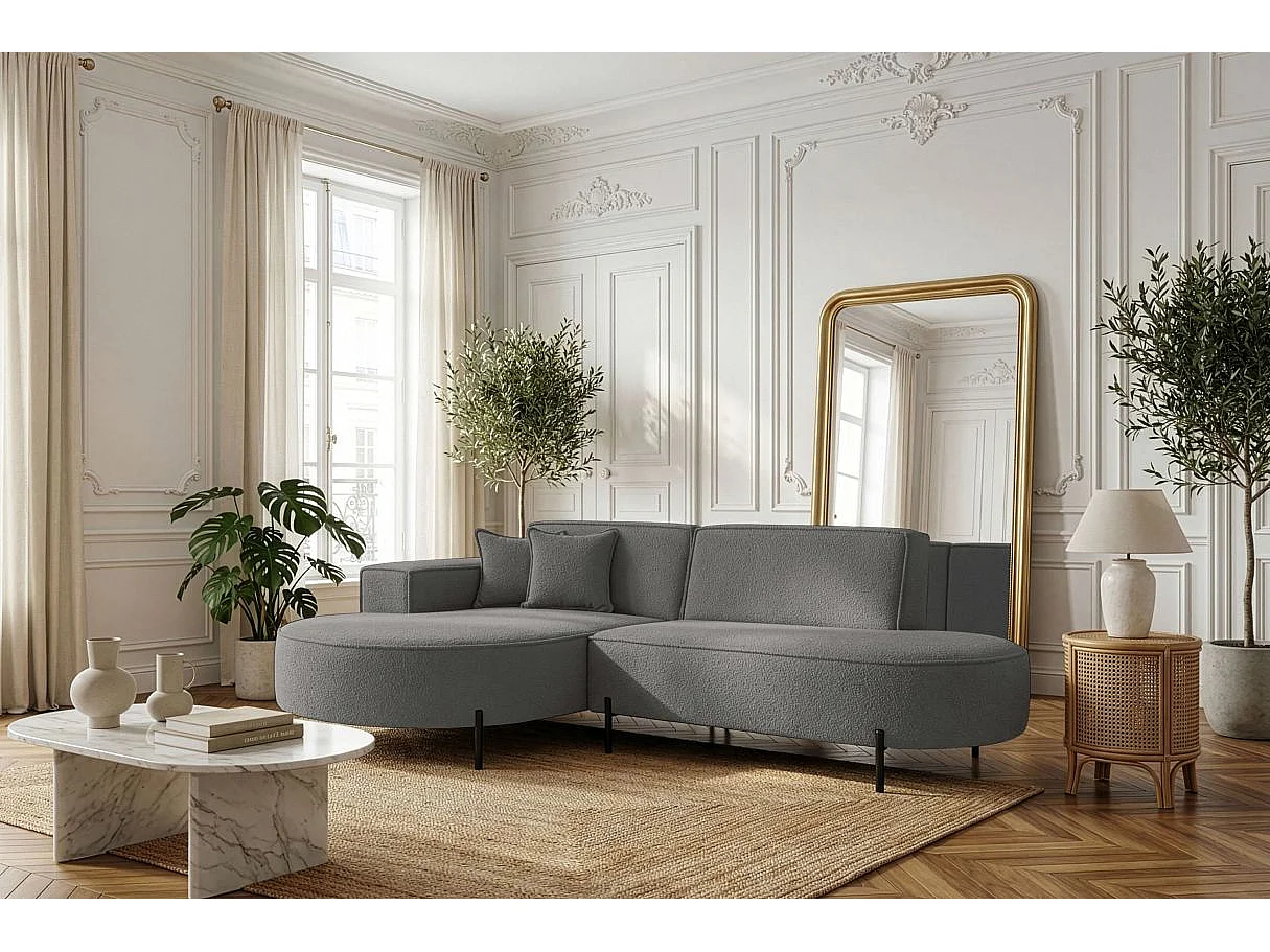 Canapé d'angle gauche 4 places MARLON en tissu bouclette - Gris anthracite