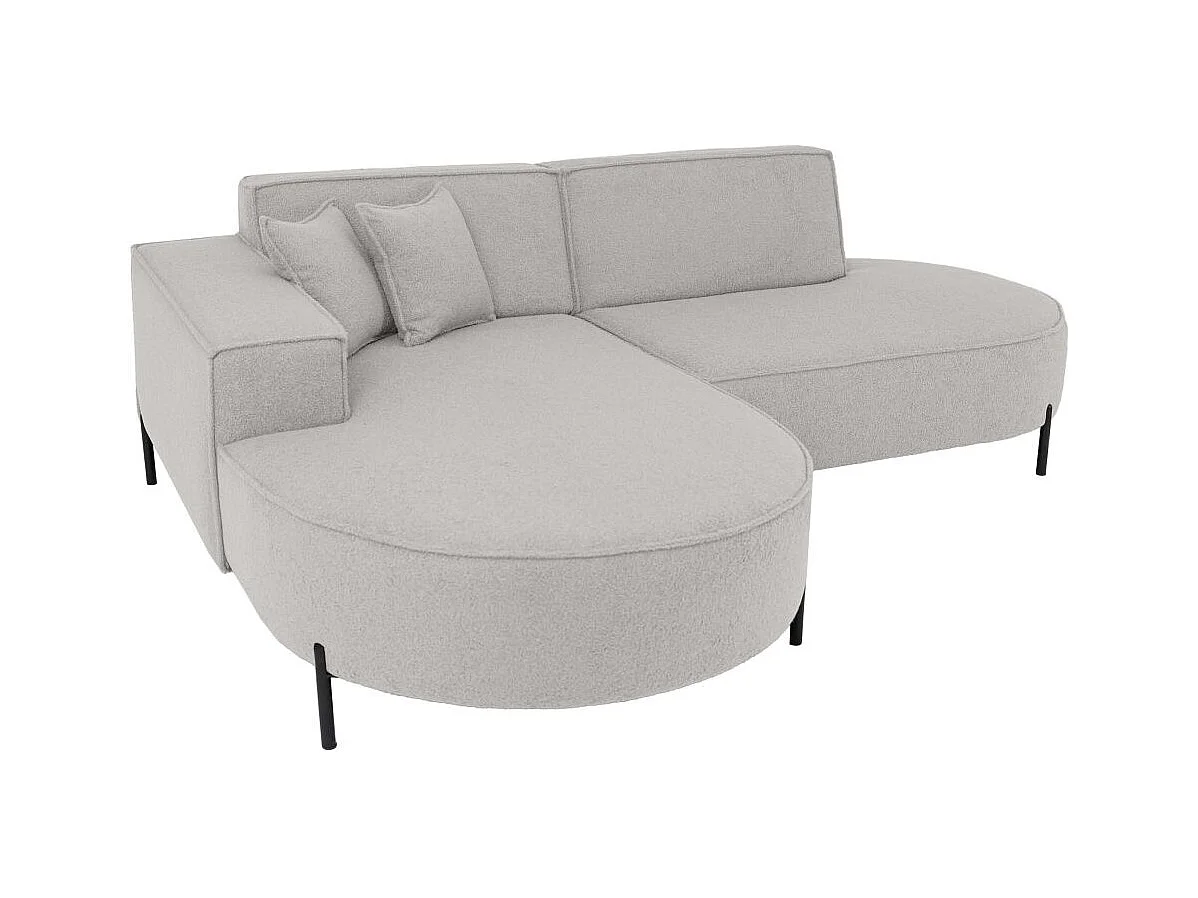 Canapé d'angle 4 places MARLON en tissu bouclette - Gris clair