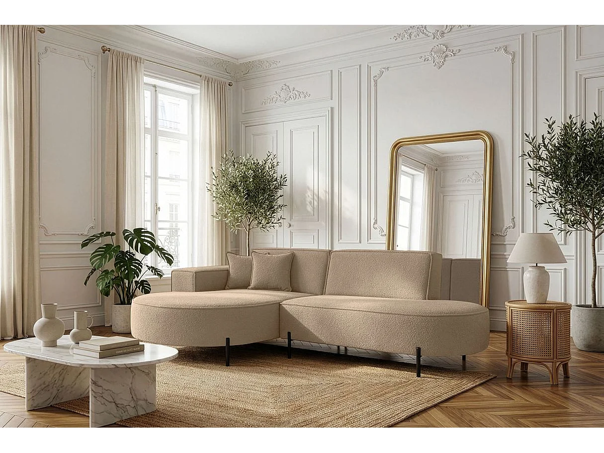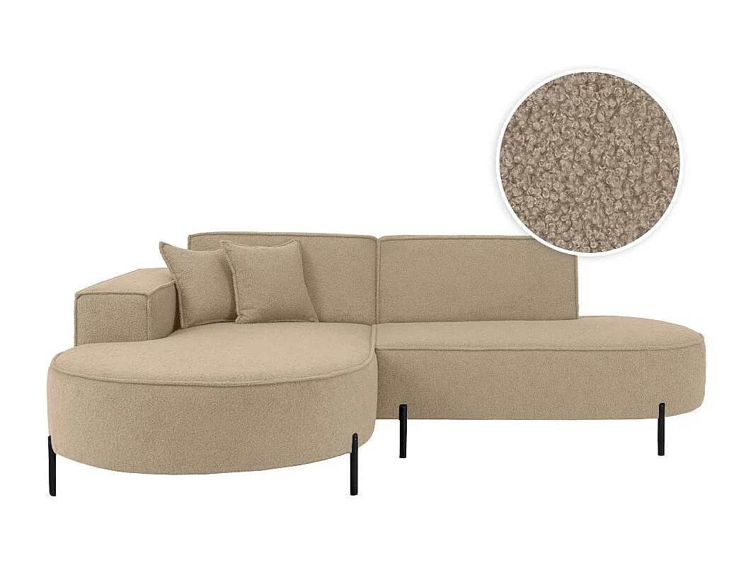 Canapé d'angle gauche 4 places MARLON en tissu bouclette - Taupe