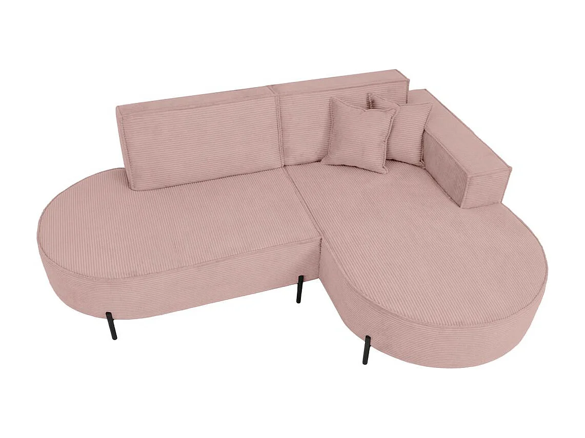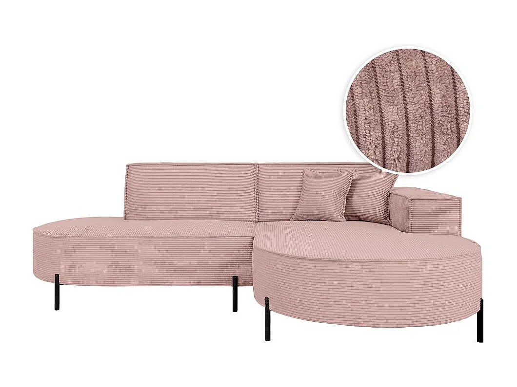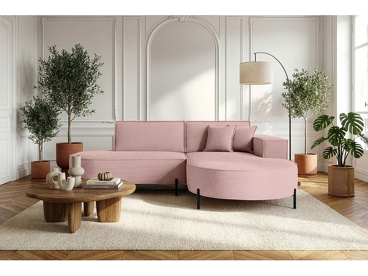 Canapé d'angle droit 4 places MARLON en velours côtelé - Rose