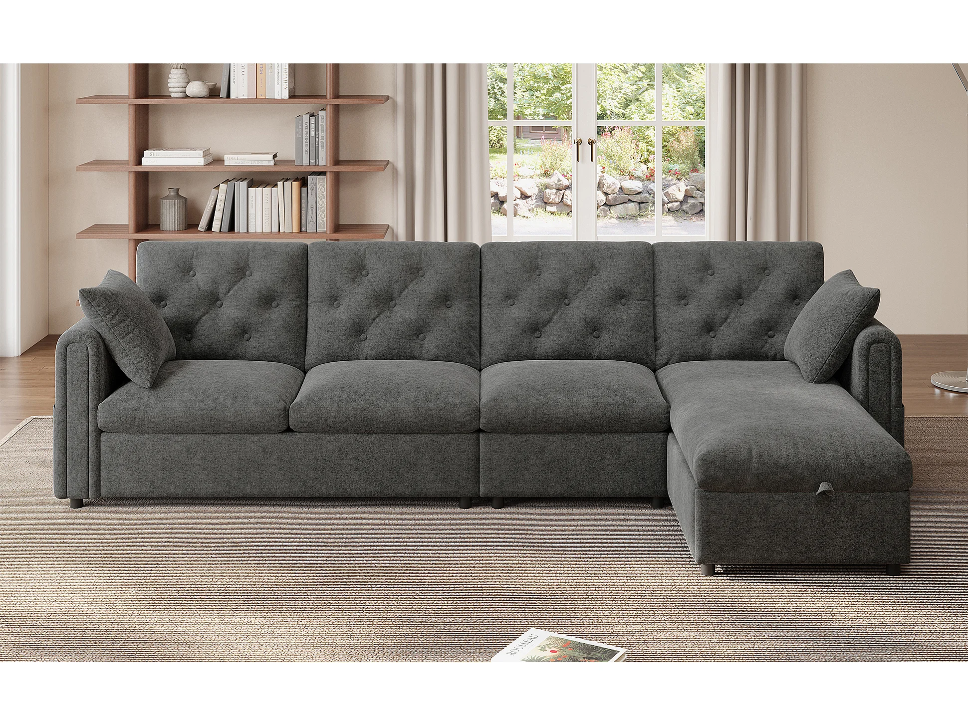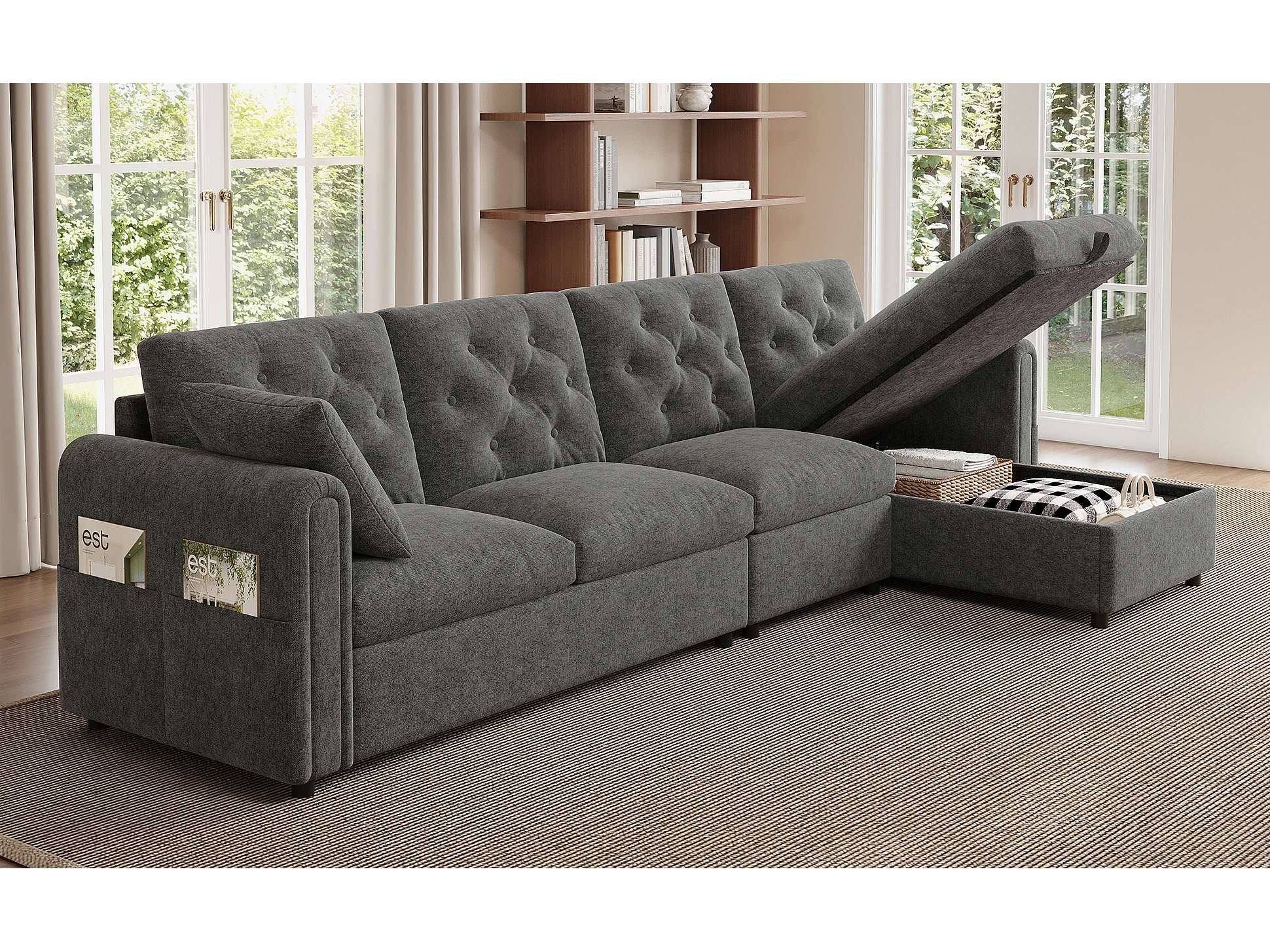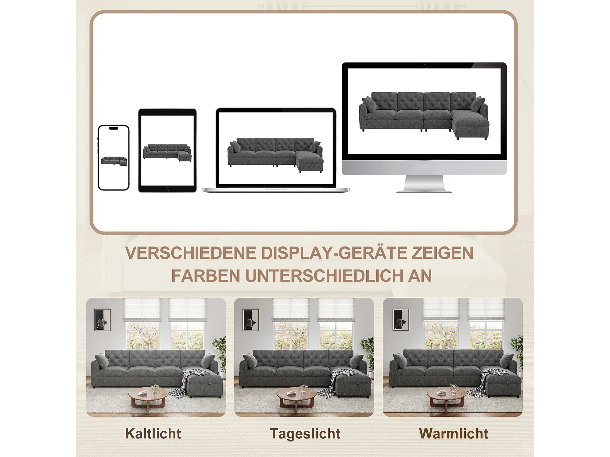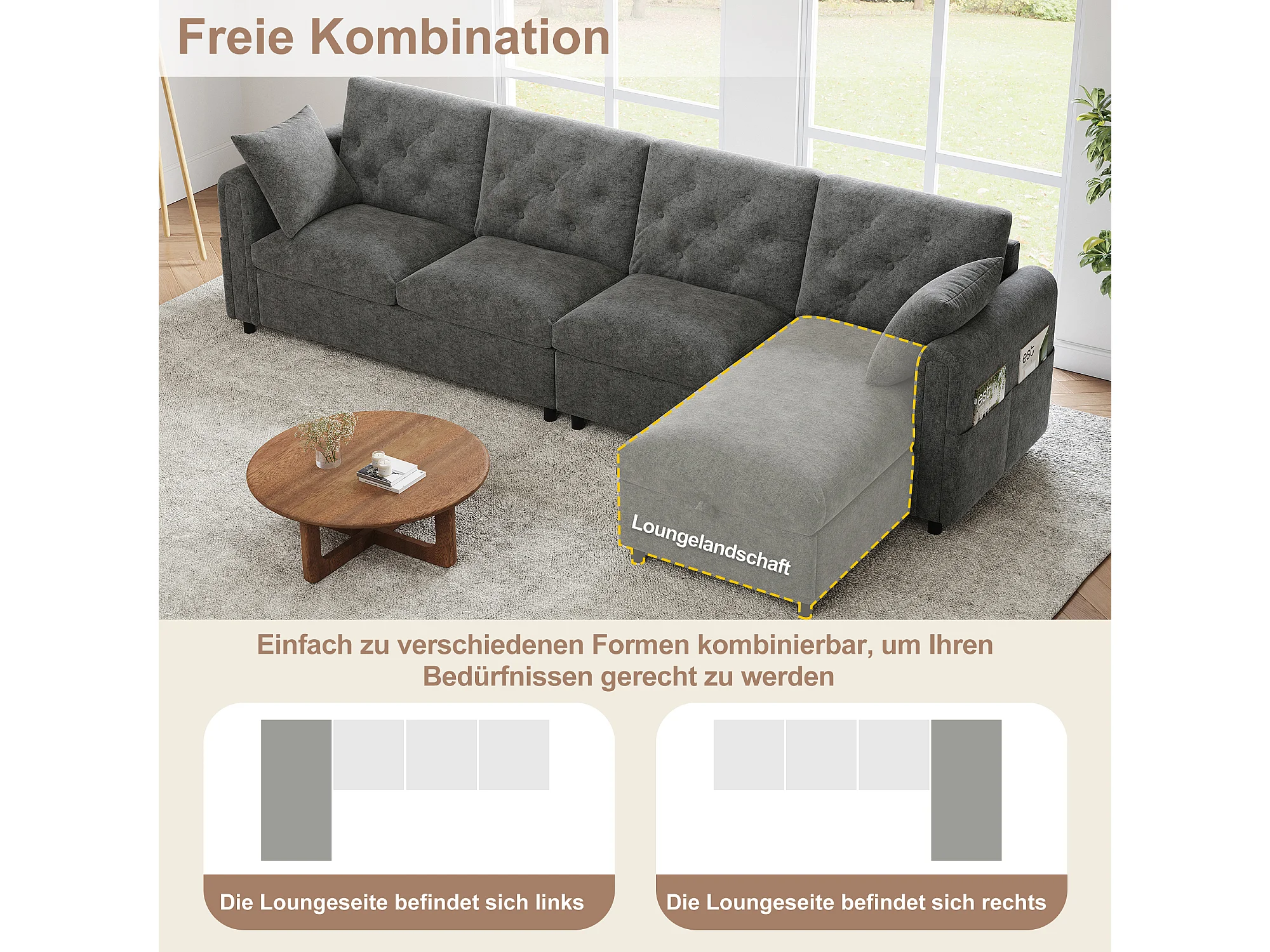 Canapé d'angle 4 places moderne avec rangement - accoudoirs latéraux avec poches 281 x 132 x 86 cm - velours - gris